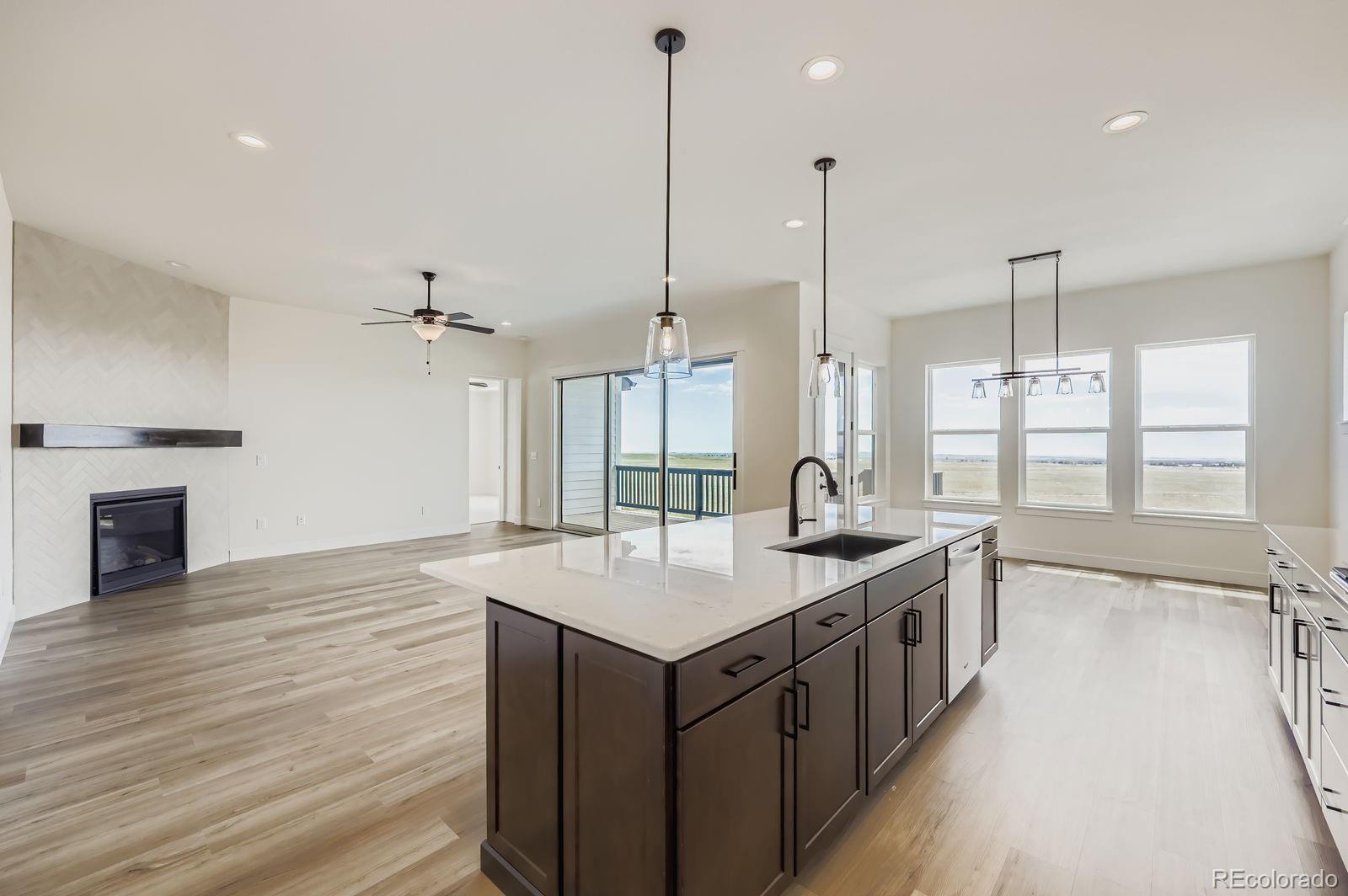 This luxurious Walk Out ranch-style home, set on a spacious 12,600 SF lot with beautiful mountain views, features 4 bedrooms, 3 full baths, a powder bath, and a 3-car garage. The open-concept design includes a gourmet kitchen with upgraded cabinets, a large island, and a seamless flow into the dining and family room, ideal for entertaining. Sliding doors open to a private backyard, enhancing the home's sense of space and privacy. The family room boasts a cozy floor-to-ceiling fireplace and 10-foot ceilings. The main level also includes a main bedroom suite with dual vanities, designer tile accents, and a large walk-in closet, along with a second bedroom and full bath. Conveniently located near the 3-car garage entrance, the laundry room is adjacent to a mudroom. The finished walk-out basement offers a spacious rec room with a wet bar, two additional bedrooms, and a full bath. Throughout the home, you'll find upgraded countertops and fixtures, custom closets with shoe racks, a tankless hot water heater, and a 96% efficient furnace. This home blends style, comfort, and functionality with stunning mountain views in an ideal location. Front landscape included!!