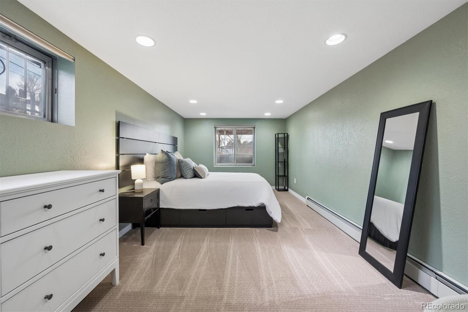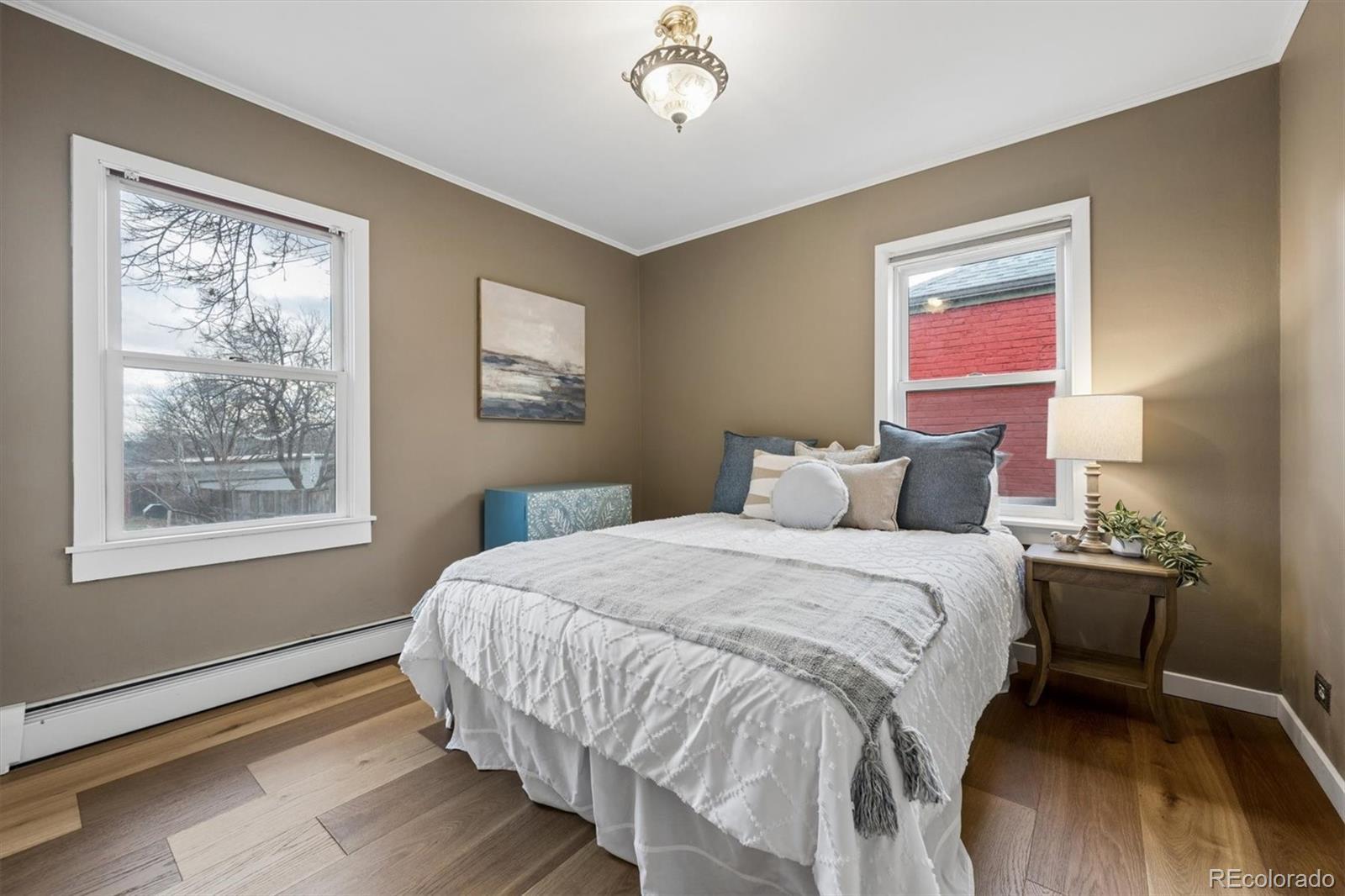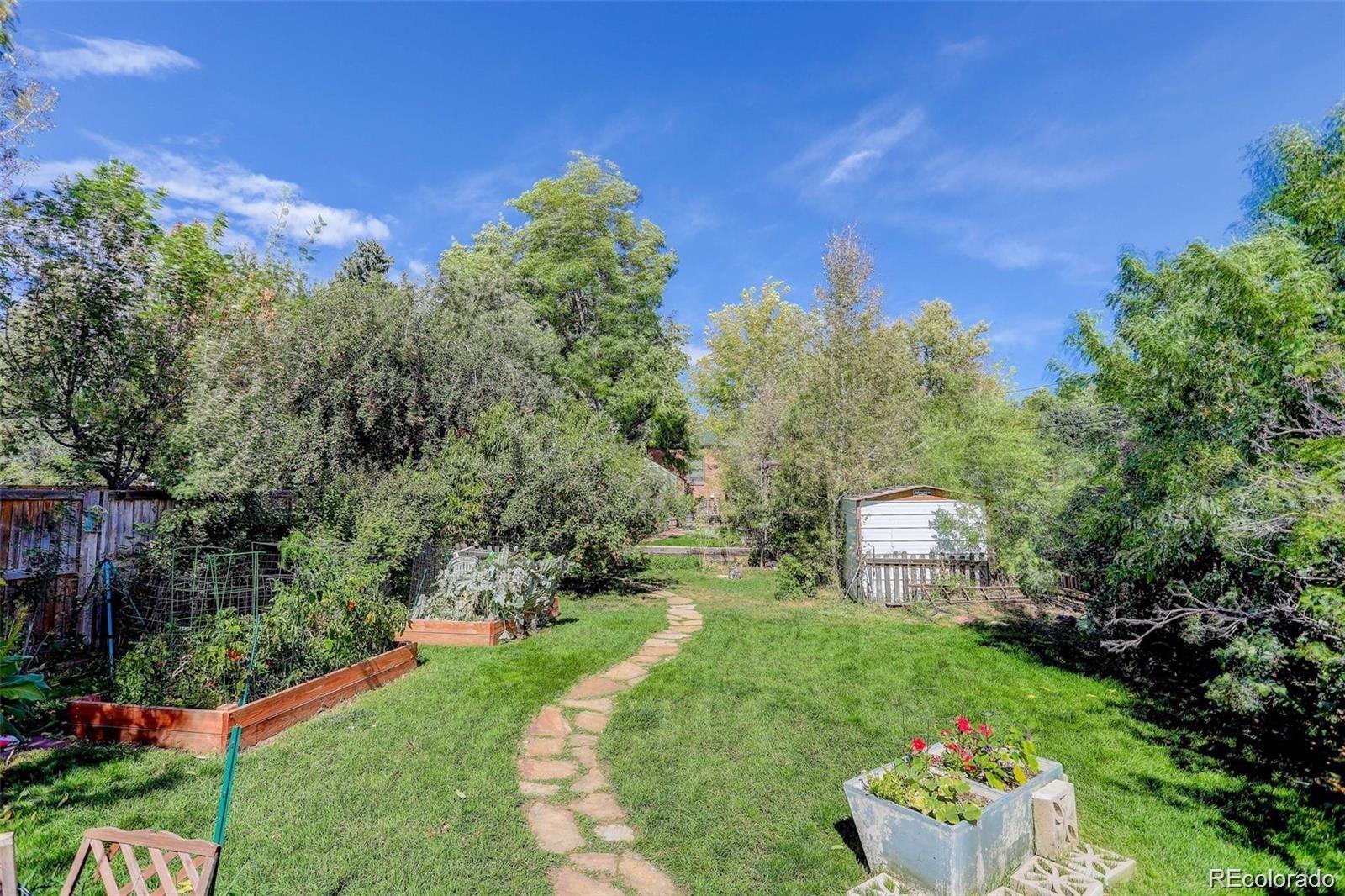 Welcome to this charming 3-bedroom, 2-bath home just one block from Sloan’s Lake, offering timeless character, thoughtful updates, and a rare opportunity to own over a 1/3 acre in one of Denver’s most sought-after neighborhoods. Situated on a quiet street with professionally landscaped perennial gardens, this property blends privacy, space, and walkability. Inside, the main level features new hardwood flooring throughout. A cozy living room flows seamlessly into the spacious, updated kitchen—complete with stainless steel appliances, quartzite countertops, soft-close cabinetry, a custom walk-in pantry, farmhouse sink, and crisp white backsplash. The kitchen opens to the dining room, which connects to a bright sunroom offering abundant natural light and easy access to the expansive backyard. A main-floor bedroom with mountain views and a full hall bath complete the main level. Downstairs, the finished basement provides an expansive family room ideal for movie nights, play space, or hosting guests. Two nicely sized bedrooms with new carpet, a large walk-in closet, and a newly renovated 3/4 bathroom with a new washer and dryer add comfort and functionality. Step outside to the beautifully maintained backyard featuring mature peach and apple trees, lush landscaping, and exceptional space rarely found in Denver, perfect for entertaining, gardening, pets, or future expansion. The detached oversized heated 2-car garage offers ample room for a gym, gear storage, workshop space, overhead storage, and already has an EV plug. Pre-zoned for an ADU (buyer to verify), the property offers outstanding income or multigenerational living potential. A new roof (2023) adds additional peace of mind. With significant land, ADU potential, and an unbeatable location just steps from Sloan’s Lake, this property offers a rare blend of character, space, and long- term value in the heart of Denver.
