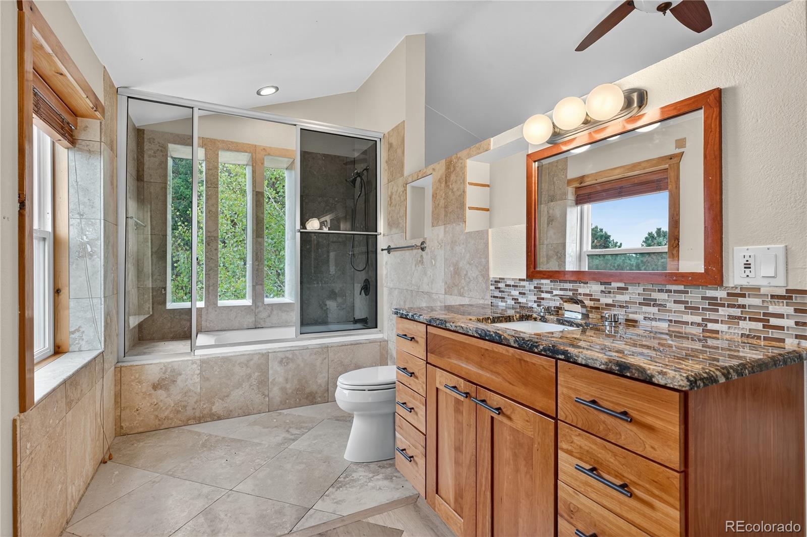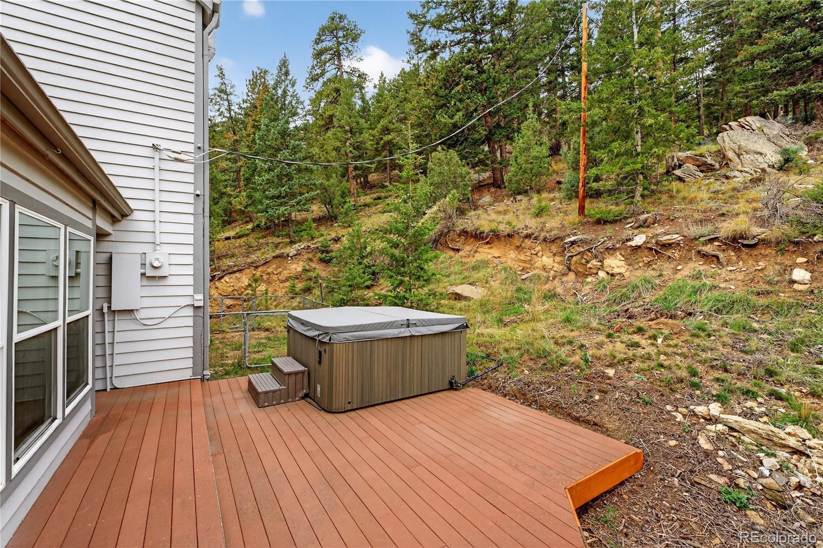 Welcome to your stunning mountain retreat in the highly sought-after Saddleback Ridge Estates community of Evergreen! Set on over 2 acres of serene Colorado beauty, this exceptional home offers sweeping valley and mountain views from the expansive front deck—perfect for enjoying your morning coffee while watching the sunrise over the peaks. Step inside to discover an inviting open floor plan filled with mountain charm and elegance. Soaring vaulted ceilings, wood beams, and a cozy wood-burning stove with stone surround create a warm and welcoming atmosphere. The spacious living room flows seamlessly into the large dining area, complete with a sliding glass door and deck access for easy indoor-outdoor entertaining. The chef’s kitchen impresses with granite countertops, stainless steel appliances, abundant cabinetry, and vaulted ceilings that enhance the light and airy feel. The main floor bedroom offers a private en-suite full bath. A half bath and laundry room complete this level. Upstairs, the second floor hosts two generous bedrooms and a full bath, while the third floor is dedicated entirely to the primary suite—a true private sanctuary with vaulted ceilings, panoramic views, and a spa-like bath featuring a jet-action soaking tub. The walk-out basement expands your living space with a large family room, half bath, and walk-out access to a covered patio and yard—complete with a playground area. The home also features radiant heat in the kitchen floor, stamped concrete ready for a heat system, and an attached 2-car garage plus RV parking and ample driveway space. Adjacent 3-acre parcel also available for sale by the same seller for expansion potential (MLS #6161122). Surrounded by privacy, wildlife, and breathtaking views, this home offers easy access to I-70, making trips to Denver and mountain adventures a breeze. With its blend of natural beauty, thoughtful design, and mountain luxury, this Evergreen gem delivers the perfect Colorado lifestyle!
