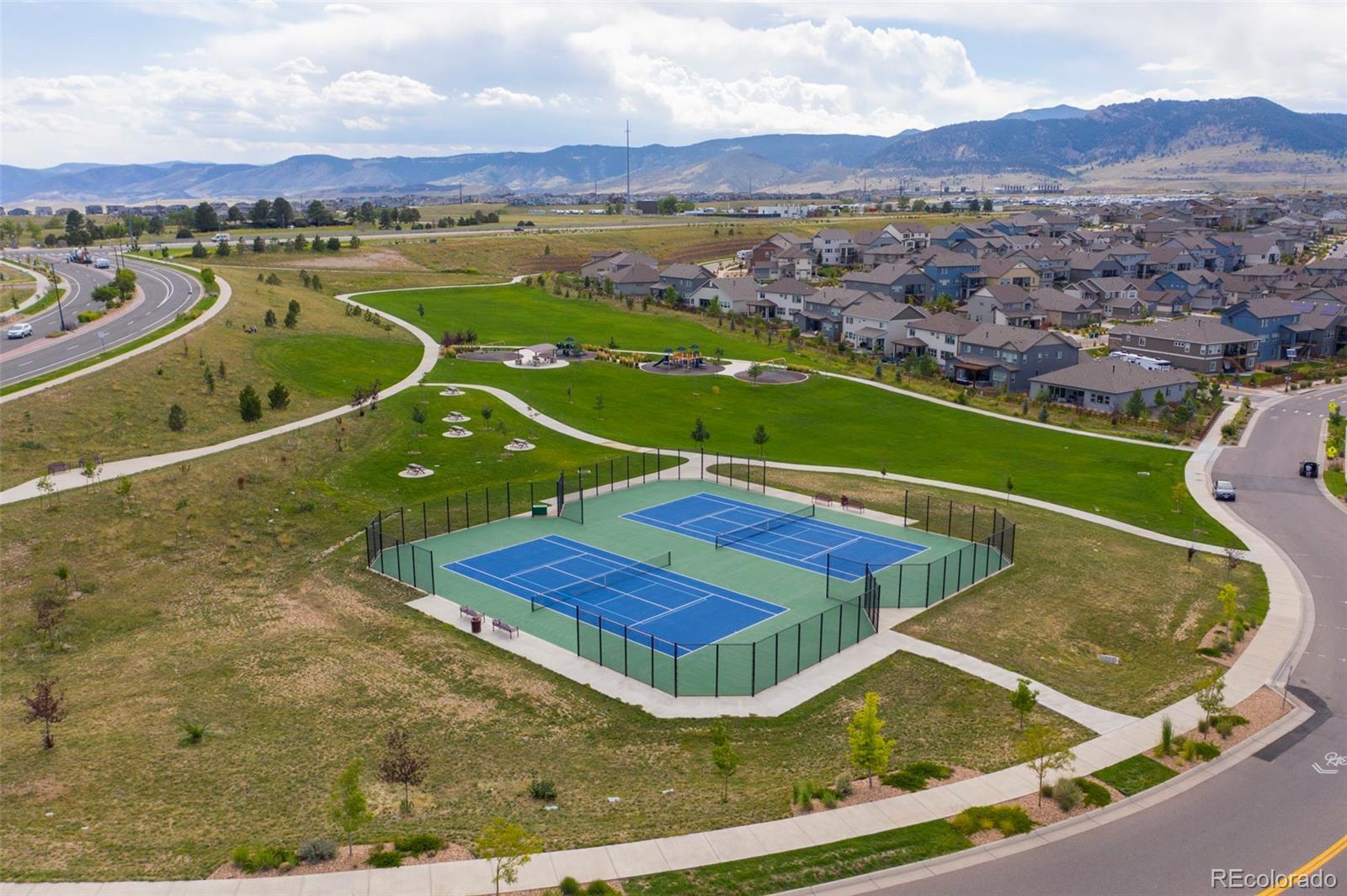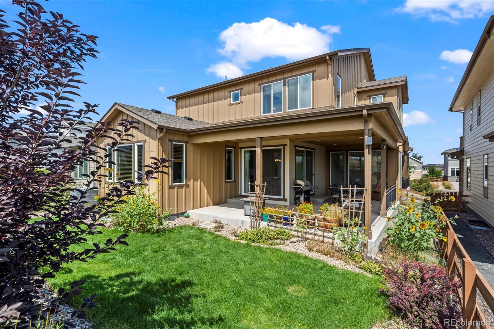Beautiful two story with mountain views, a 3-car garage, and in the sought after Candelas neighborhood. Step inside this beautifully designed home featuring a great room with a gas log fireplace and access to the covered patio. The eat-in kitchen boasts granite counters, a large center island, SS appliances, and a spacious pantry—perfect for cooking and entertaining. A main floor office/flex room provides versatile living options. A main floor bedroom with private bath completes the main level and offers an ideal setup for guests or multi-generational living. Upstairs you'll find a large loft, a primary suite, two additional bedrooms that include a Jack-and-Jill setup, and a conveniently located laundry room. Outside the backyard backs to a walking path, is fully fenced, landscaped, provides a grass area, garden beds, and a covered patio perfect for outdoor living. Enjoy community amenities including a park, trails, pool, clubhouse, and fitness center for year-round recreation and convenience. Near Standley Lake, Pattridge Open Space, parks, and trails, offering endless opportunities for outdoor adventure. Near Hwy 93 and Hwy 72 makes commuting to Boulder, Golden, mountain getaways, DIA, or Denver easy. You don't want to miss this beautiful home with a 3-car garage in the perfect location!