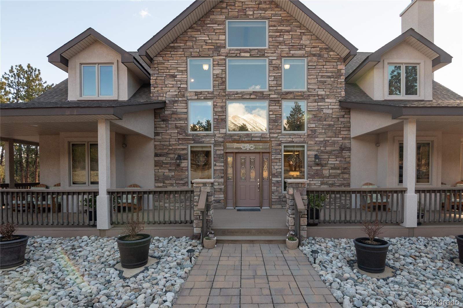 This custom home sets on 10 beautifully manicured acres, offering stunning views of Mt. Princeton and a rare sense of peaceful seclusion. Mature trees frame the property, creating a park like setting with fully usable acreage to enjoy in every season. The exterior offers vaulted rooflines, expansive west facing windows, and rock accents paired with stucco for much desired exterior low maintenance. A covered wrap-around composite deck invites you to relax and take in beautiful sunsets. Inside, the open floor plan is both welcoming and functional. The spacious family room is accented with a large rock, wood-burning fireplace, while the windows capture those amazing views. The dining room is open to both the kitchen and family room, making it ideal for gatherings. The kitchen features quartz countertops, Italian wood tile flooring, a generous walk-in pantry, and a comfortable bar seating area for additional seating. The primary suite and an ensuite bath is complete with a clawfoot soaking tub and oversized walk-in shower. Just off the kitchen, a large utility room offers added convenience with a second refrigerator and microwave. A unique enclosed breezeway connects the home to the impressive 1,298 sq. ft. attached garage, featuring 3 front garage spaces and 1 additional side garage door. Upstairs, a spacious loft provides flexible space for a media room, office, or cozy reading area, along with two additional bedrooms, a full bath, and abundant hidden storage. Outdoor living continues with a private east-side patio, a storage shed ideal for ATVs, a RV carport, and a protected west side hot tub area designed for your enjoyment. The property offers two separate driveway entrances and an automatic 11,000 kW generator for added peace of mind. Ideally located just 10 minutes to Mt. Princeton Hot Springs and 15 minutes to downtown Buena Vista. The Latchaw Mine Rd. is public access to National Forest. Once you enter the National Forest, it's No mortarized vehicles.