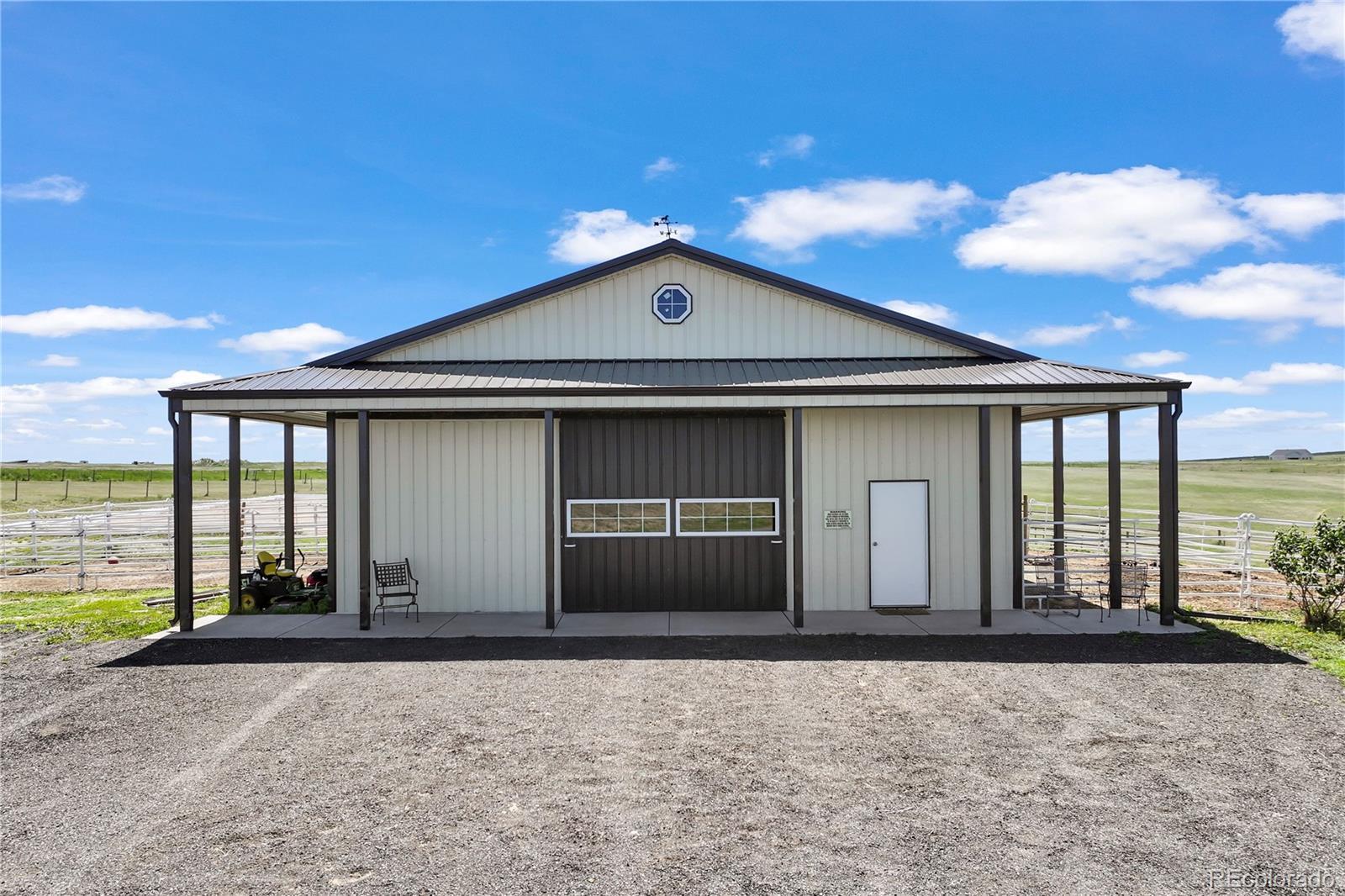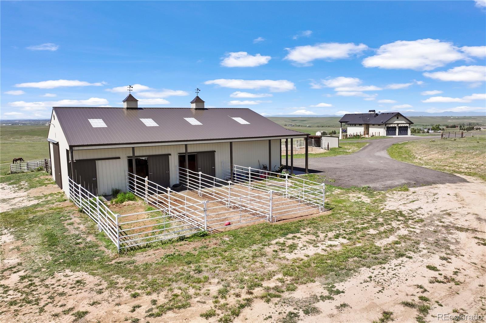 HORSE PROPERTY with Income potential! Paved roads bring you home to a circle drive that access home & horse barn.Empty nester floor living with fantastic views from every window .Newly renovated spaces create bright, open and airy feel surrounded by unobstructed views of Pikes Peak to the Flat Irons.Open concept efficient design creates an intimate place to gather at the fireplace or balcony with family and friends, overlooking horse pasture and mountain views.The walk out basement apartment has a separate kitchen, laundry ,2 beds,,jack and Jill bath and private patio, designed for split living with guests, elder parents, older children or an income producing renter.The fields are fantastic soil that drains and melts easily, allowing your horses to have turnout YEAR ROUND.The arena drains well so you can ride even after a heavy snow.The turnout shelters and overhangs allow for carefree turnout no matter the weather.The trail system gives you versatility so your riding is not limited to the arena ,you can adventure through the neighborhood bridle trails. AG water well allows you to legally keep your animals at home. High ceilings create natural light and fresh air. There are 6 stalls with 8 possible, all with overhangs and runs, Nelson heated waterers plus 3 turnout paddocks with shelters that can be opened to large fenced pasture. A perfectly appointed tack room next to hot and cold water wash rack ,large aisle and a lovely porch create a great place to relax, tack up and ride.Make your farrier happy as well with paved access to the barn. Rent the barn, or the apartment or bothThe entire operation could easily be converted to dog kennels for boarding, breeding, training or grooming business. No mud on your tires here.All of this is just 12 miles to Southlands Mall 30 minutes to the airport, close to Parker, the Colorado Horse Park with LOW ELBERT COUNTY TAXES..Desirable Elizabeth schools bus stops at your corner. NO more showings until 2026