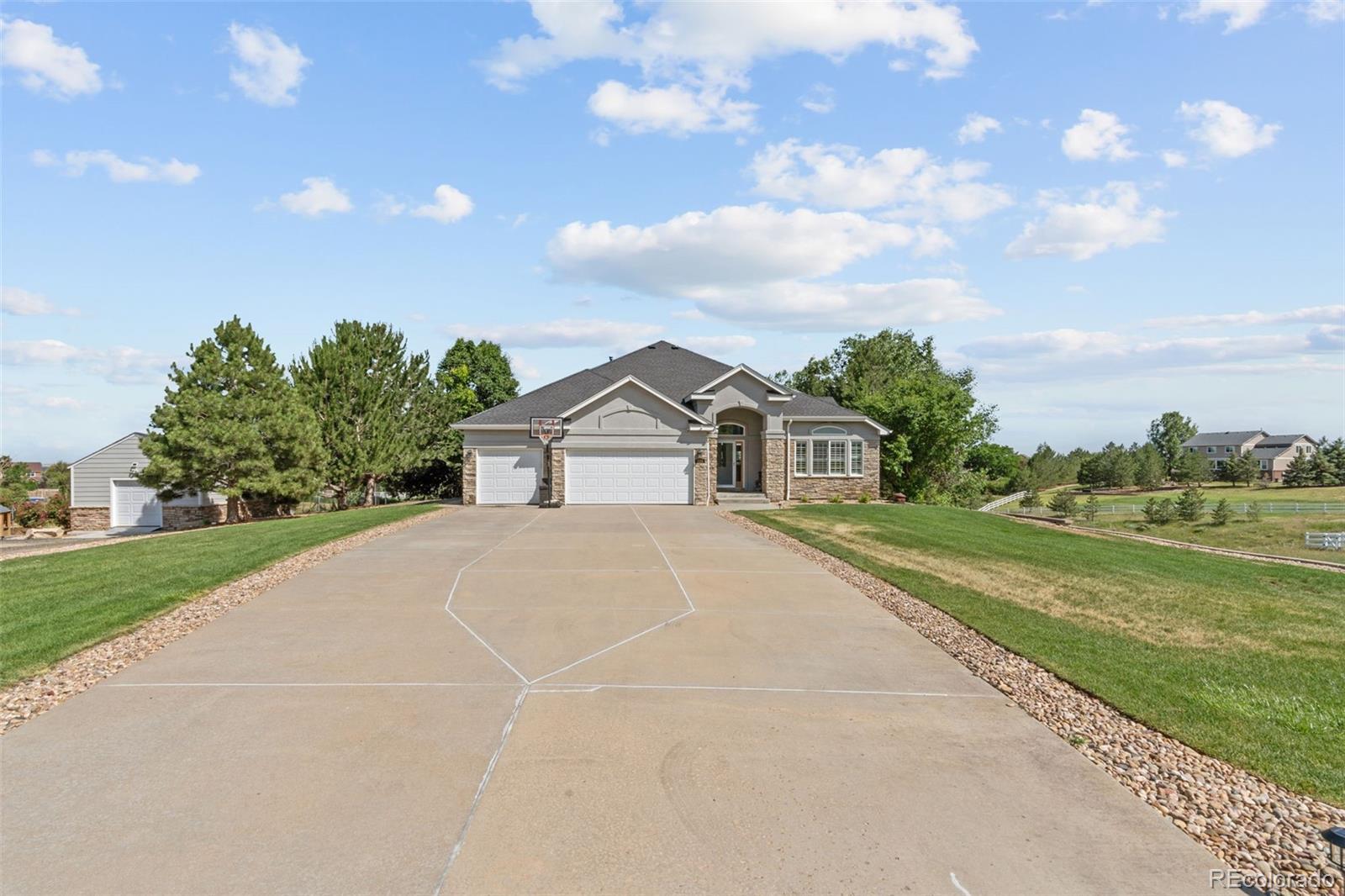 Sprawling Ranch Retreat in Gated Todd Creek Estates! Welcome to 9576 E 147th Place—an exceptional ranch-style residence nestled in the prestigious gated community of Todd Creek Estates. Situated on an expansive 1.88-acre lot with an electric fence, this beautifully updated home offers the perfect blend of luxury, comfort, and functionality across 5,304 total square feet. Boasting 4 spacious bedrooms and 5 bathrooms, this thoughtfully designed home features a bright and open layout with plantation shutters throughout the main level. A dual-sided fireplace creates a warm and inviting ambiance, connecting the cozy family room and formal living room. Entertain in style in the formal dining room, perfect for hosting holiday gatherings or elegant dinners. The remodeled kitchen offers modern finishes, ample storage, and flows effortlessly into the heart of the home. Downstairs, the finished basement is built for enjoyment—complete with an entertainment zone, full bar, workout room, and guest quarters, ideal for hosting or multi-generational living. Step outside to your private backyard oasis with a hot tub, scenic views, and plenty of space to roam. A three-car garage offers generous storage for all your needs. Located in the sought-after Todd Creek Estates gated community, you'll enjoy the serenity of country living with easy access to shopping, dining, Denver, and DIA.