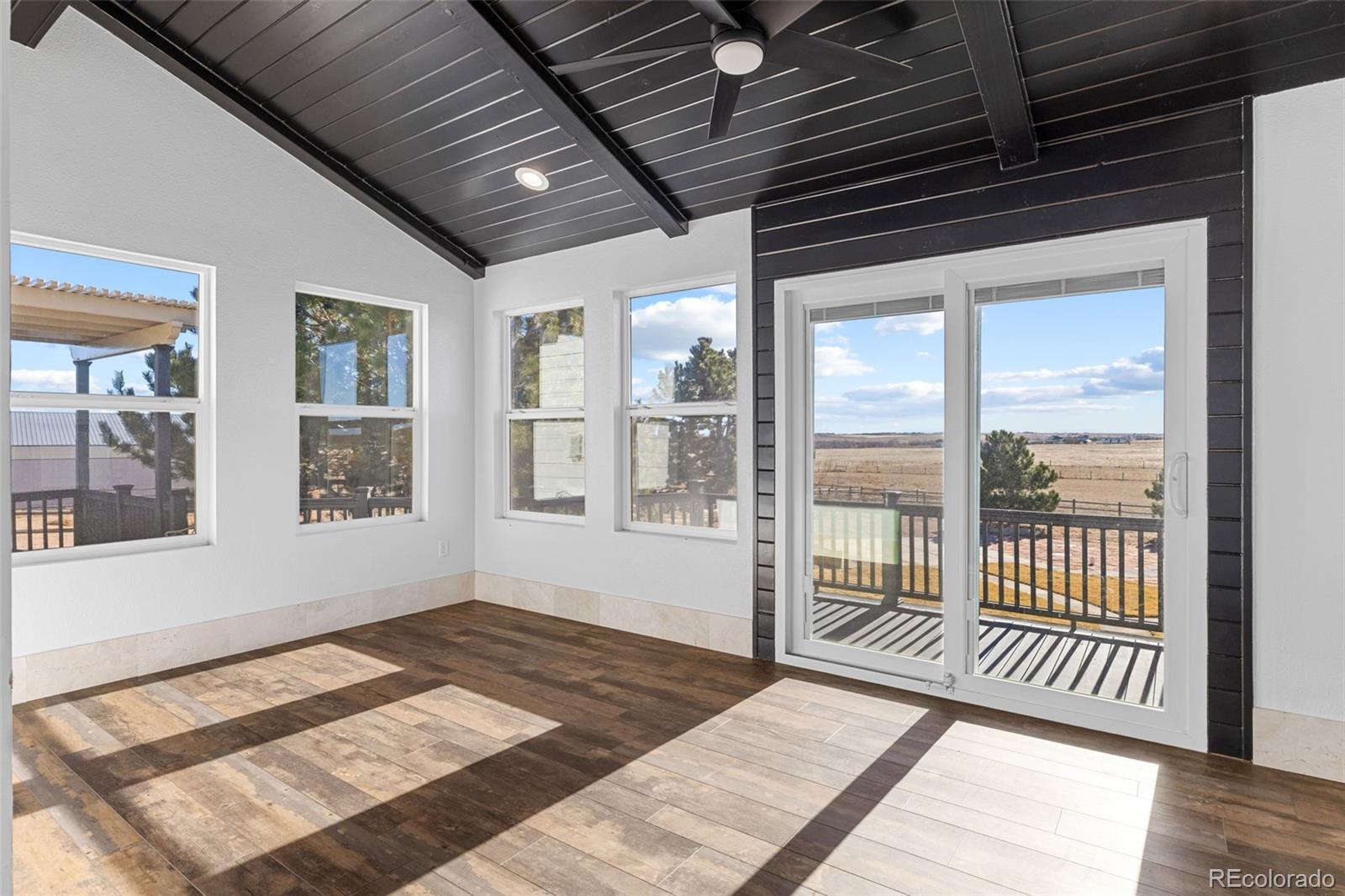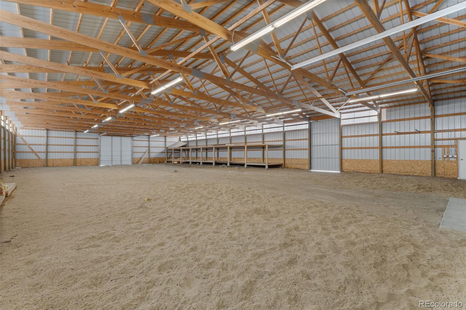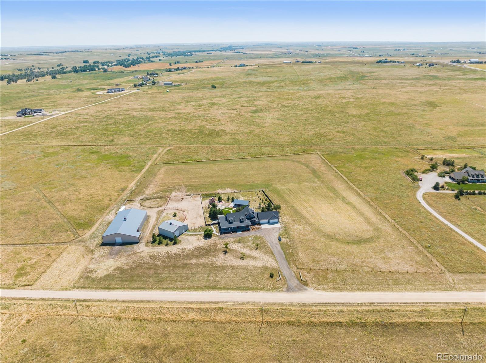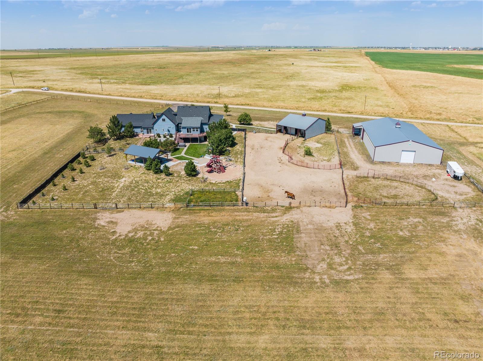 Welcome to Valhalla Ranch Estates, where luxury meets serenity! This stunning property offers a private, gated 35-acre oasis with an additional 300+ acres of shared open space, perfect for outdoor enthusiasts. Direct access to Kiowa Creek is right in your backyard, perfect for riding horses, ATVs, hunting, nature walks, and so much more! The main house has been beautifully remodeled, featuring an impressive kitchen/great room with new flooring, stainless appliances, and granite counters. The kitchen features a walk-in pantry with cabinetry and plenty of room for a coffee bar and/or wine refrigerator. The main floor master suite boasts a soaking tub, dual vanity, a walk-in shower, plus direct access to the back deck for those morning coffee delights. The large sunroom floods the kitchen and living room with natural light. The custom built-ins cabinets provide ample storage on the main floor with a beautiful aesthetic. A remarkable Additional Dwelling Unit (ADU) was custom built with an oversized 4-car garage, complete with radiant heated floors, stainless appliances, stamped concrete flooring, and a private entry. Multigenerational living with ease. Use as a separate rental property or your own private retreat! The professionally painted exterior complements the backyard's covered pavilion, mature landscape, beautiful trees with new drip lines, fully fenced, and a relaxing hot tub. The property is highlighted by its impressive indoor riding arena (6,000 square feet) plus an outdoor riding arena, barn, walking trails, and maintained acreage. Located in unincorporated Arapahoe County with agricultural zoning for low taxes, this property also features fiber-optic high-speed internet, newer AC unit, newer furnace, newer water heater, new interior and exterior paint, new carpet upstairs, new light fixtures throughout the home, wrap around Trex porch, and updated Renewal by Anderson windows. Located in the Valhalla Ranch Estates with unparalleled luxury and tranquility.