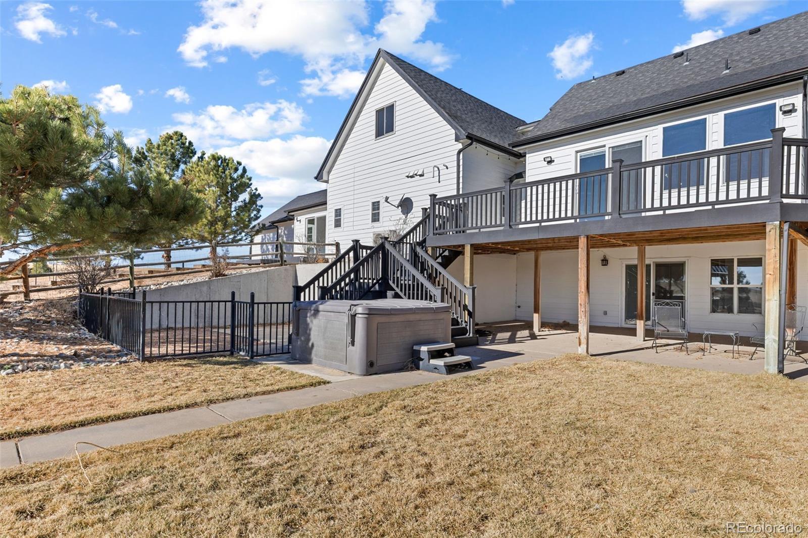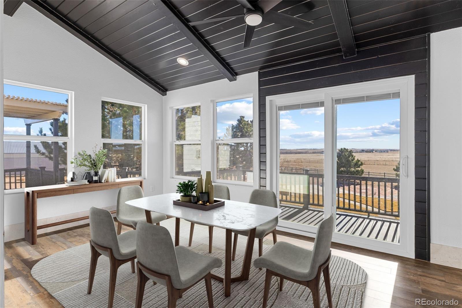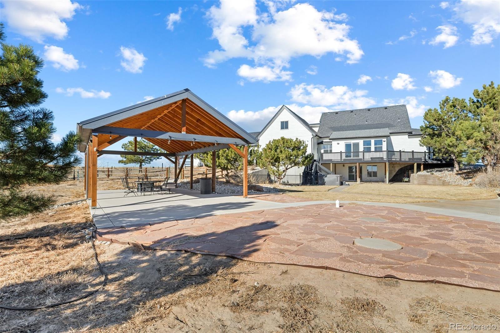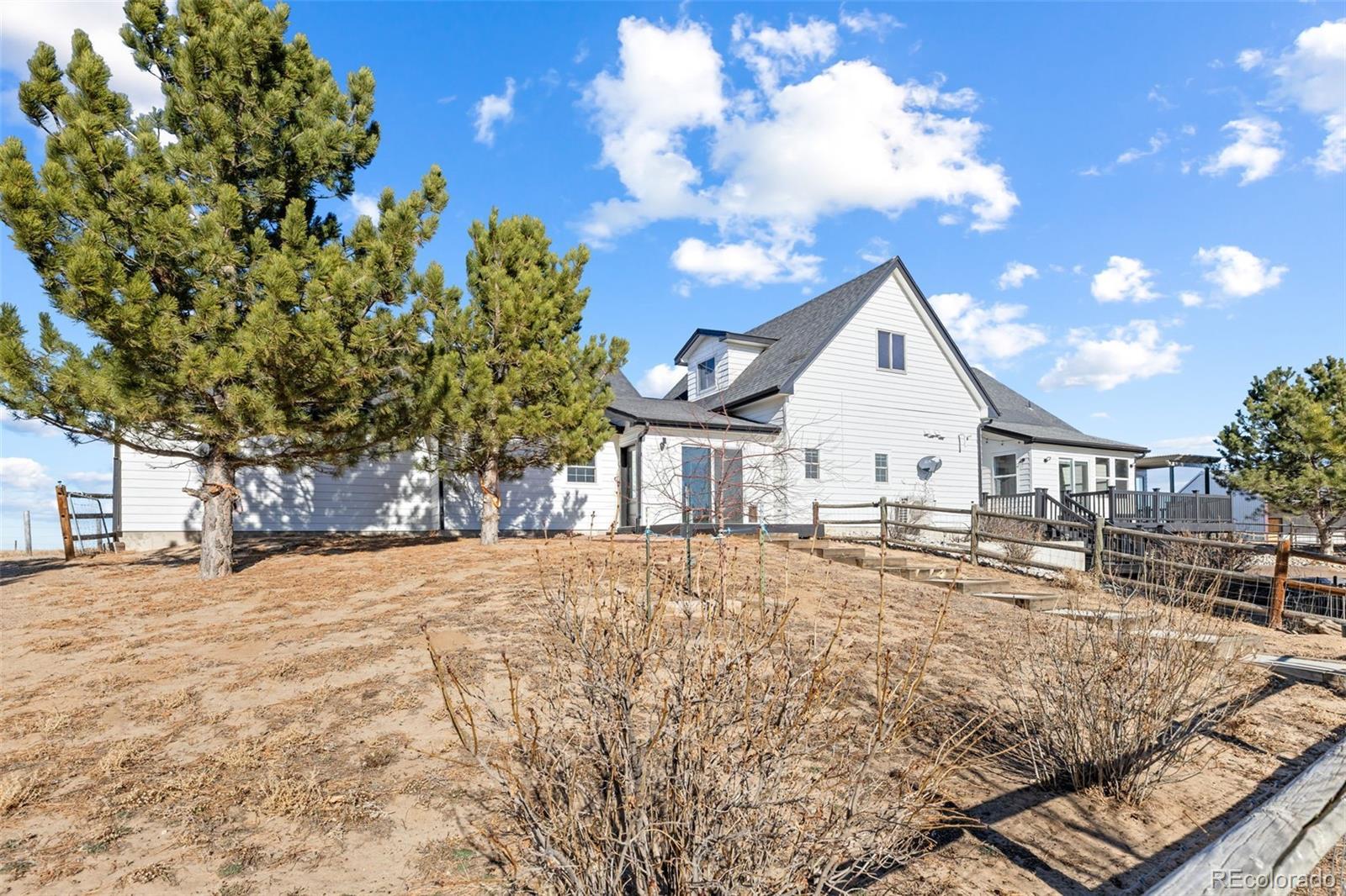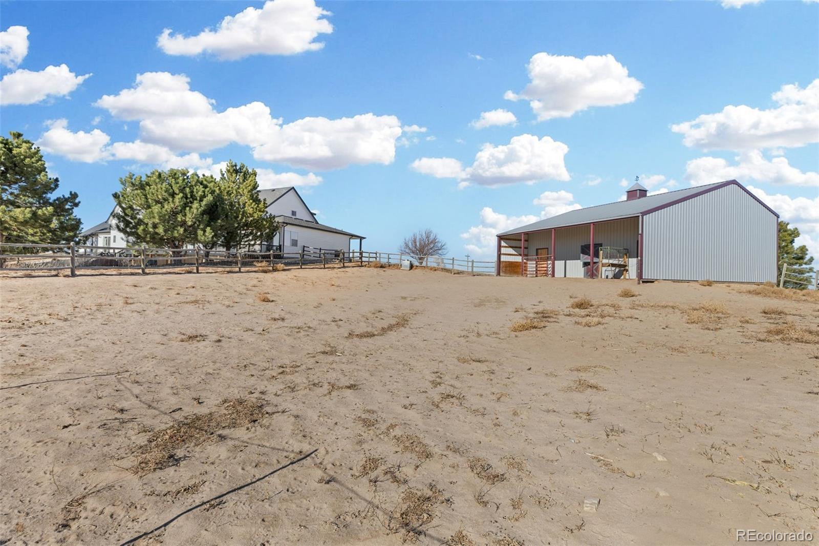 Welcome to Valhalla Ranch Estates, where luxury meets serenity! This stunning property offers a private, gated 35-acre oasis with an additional 300+ acres of shared open space, perfect for outdoor enthusiasts. Direct access to Kiowa Creek is right in your backyard, perfect for riding horses, ATVs, hunting, nature walks, and so much more! The main house has been beautifully remodeled, featuring an impressive kitchen/great room with new flooring, stainless appliances, and granite counters. The kitchen features a walk-in pantry with cabinetry and plenty of room for a coffee bar and/or wine refrigerator. The main floor master suite boasts a soaking tub, dual vanity, a walk-in shower, plus direct access to the back deck for those morning coffee delights. The large sunroom floods the kitchen and living room with natural light. The custom built-ins cabinets provide ample storage on the main floor with a beautiful aesthetic. A remarkable Additional Dwelling Unit (ADU) was custom built with an oversized 4-car garage, complete with radiant heated floors, stainless appliances, stamped concrete flooring, and a private entry. Multigenerational living with ease. Use as a separate rental property or your own private retreat! The professionally painted exterior complements the backyard's covered pavilion, mature landscape, beautiful trees with new drip lines, fully fenced, and a relaxing hot tub. The property is highlighted by its impressive indoor riding arena (6,000 square feet) plus an outdoor riding arena, barn, walking trails, and maintained acreage. Located in unincorporated Arapahoe County with agricultural zoning for low taxes, this property also features fiber-optic high-speed internet, newer AC unit, newer furnace, newer water heater, new interior and exterior paint, new carpet upstairs, new light fixtures throughout the home, wrap around Trex porch, and updated Renewal by Anderson windows. Located in the Valhalla Ranch Estates with unparalleled luxury and tranquility.