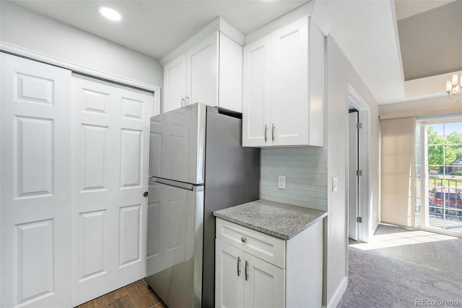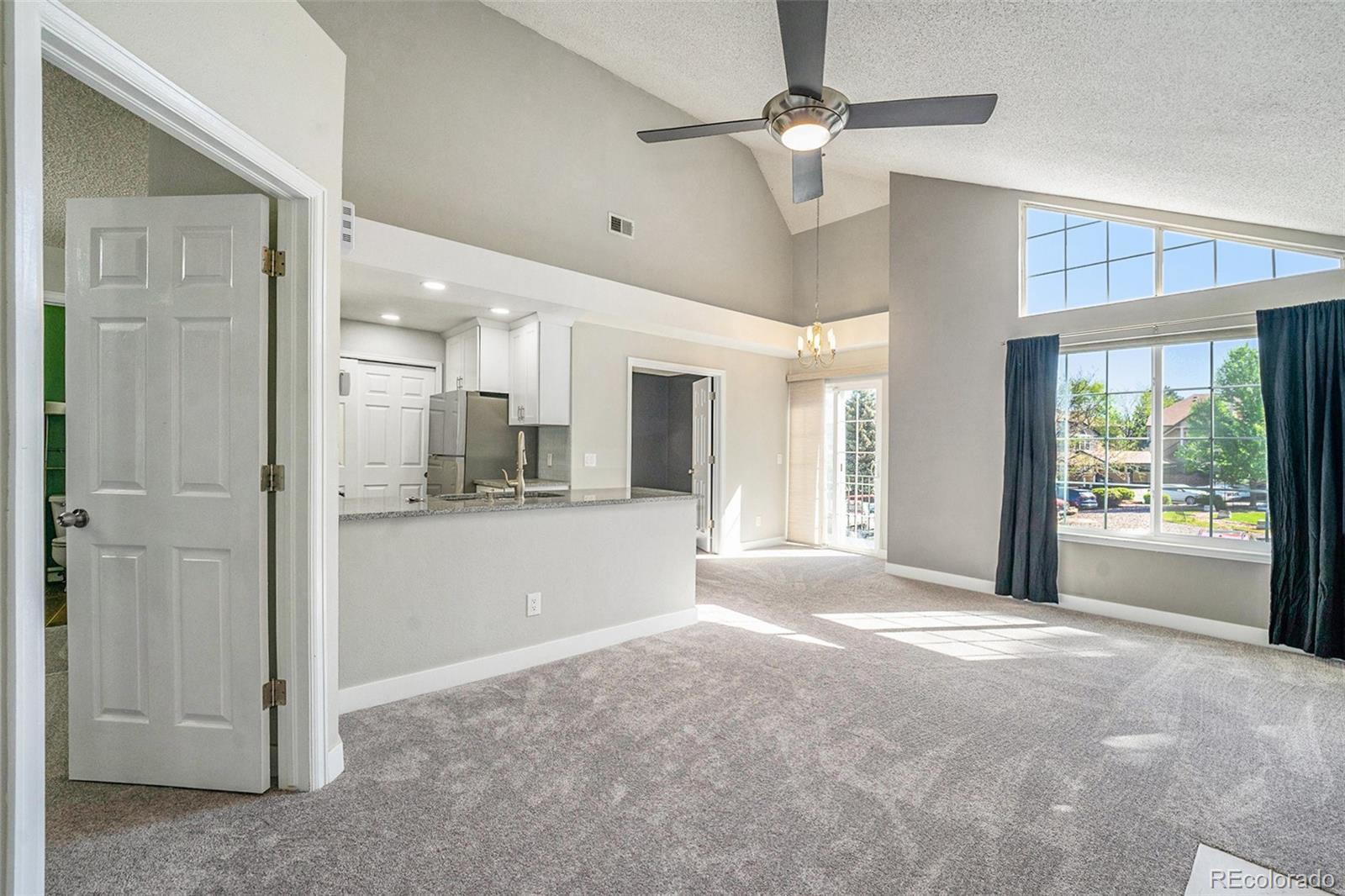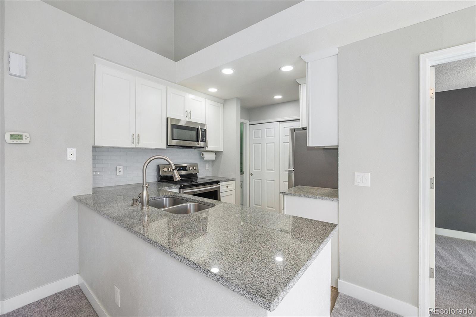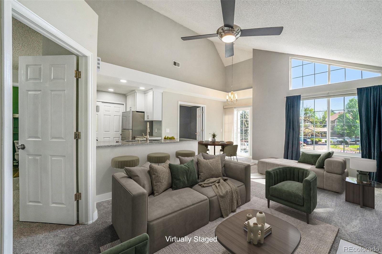 This light-filled 2-bedroom, 1-bath home offers an efficient 686 sq ft layout with soaring ceilings and expansive windows that flood the space with natural light. Enjoy brand-new carpet underfoot, a beautifully updated kitchen with granite countertops, stainless steel appliances, and fresh white cabinetry. The open-concept living area includes a cozy fireplace, vaulted ceilings, and a private balcony perfect for morning coffee. The spacious bathroom features modern tilework and sleek finishes. Additional perks include a newly installed dishwasher, upgraded lighting in the office, and an outdoor storage closet for added convenience. Located in a well-maintained community with a pool and lush green spaces, and just minutes from Cherry Creek State Park, I-225, and Light Rail. Ideal for first-time buyers, investors, or those seeking a low-maintenance lifestyle in a central location!