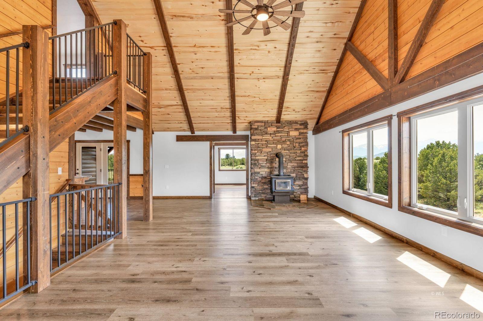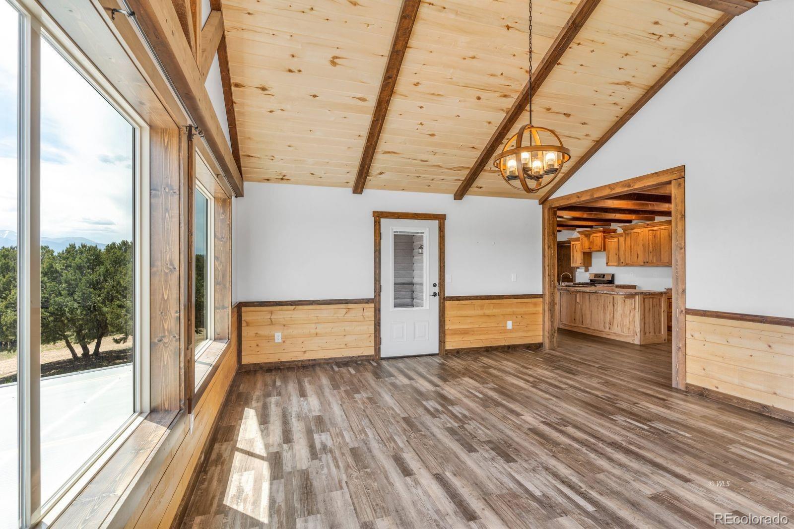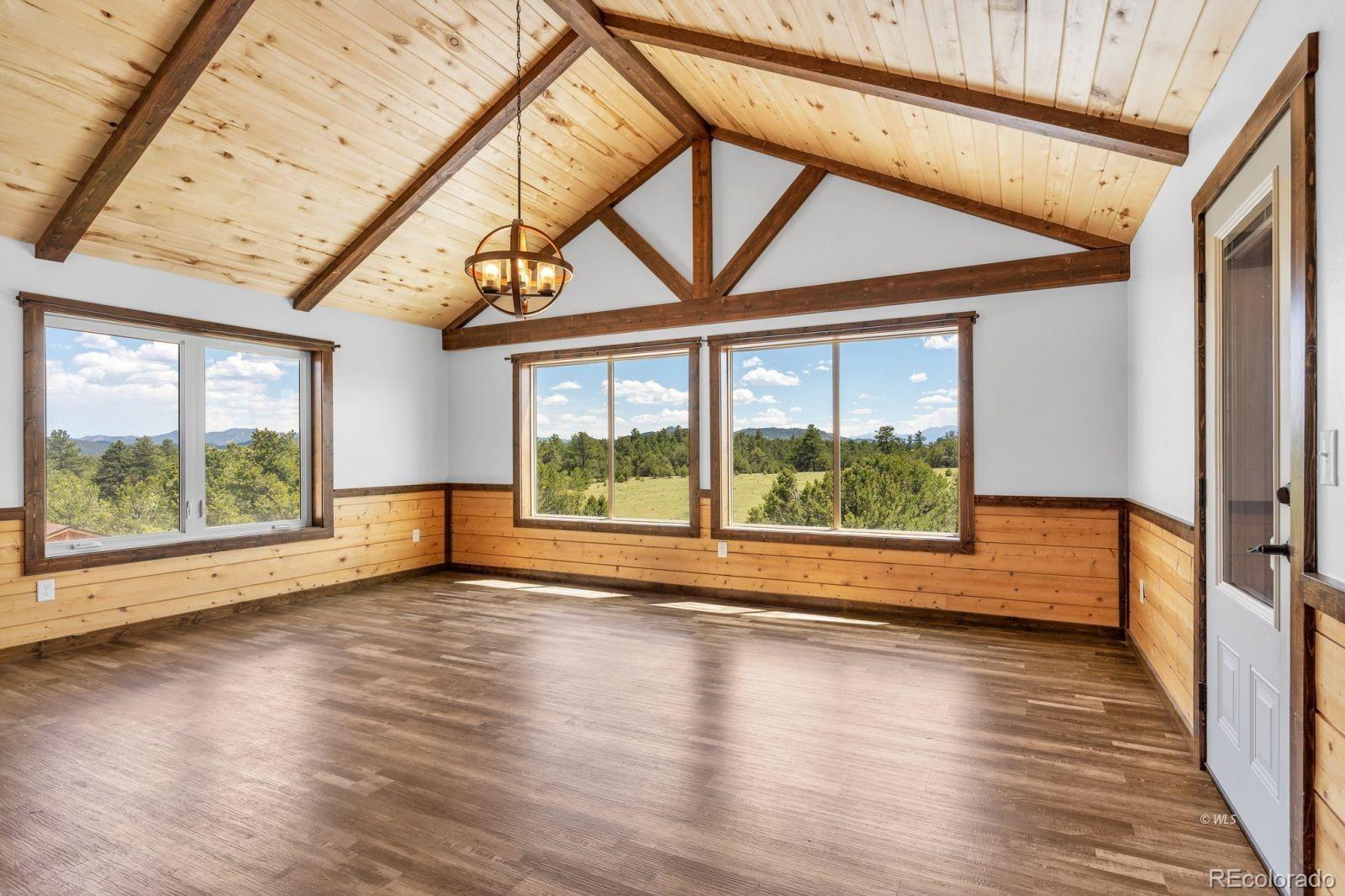 VERSATILE 35-ACRE RETREAT -- VIEWS, OUTBUILDINGS AND GREENHOUSE: Nestled between the Wet Mountains and the Sangre de Cristos, this beautifully crafted Amish home offers comfort, space, and unbeatable views! With four bedrooms and 3.5 baths, the home features wood floors, a study, and a main-level primary suite with an ensuite bath. Enjoy entertaining on the large, covered upper deck or the lower walk-out deck-perfect for gatherings with stunning mountain backdrops. The spacious kitchen opens to a generous mudroom and laundry area with an oversized pantry. A full, unfinished basement with a separate kitchen adds flexibility for guests or events. Stay cozy year-round with two woodburning stoves and a vented propane wall heater. The property includes a 420 sq. ft. attached greenhouse, a 4,280 sq. ft. heated pole barn with a concrete floor and hay sheds, plus five additional outbuildings. Set on 35.2 fenced and treed acres, this home blends rustic charm with modern amenities-ready for your next chapter! Ideal for multi-generational living, hobby farming, or entertaining, this property offers space, comfort, and self-sufficiency in a breathtaking mountain setting.