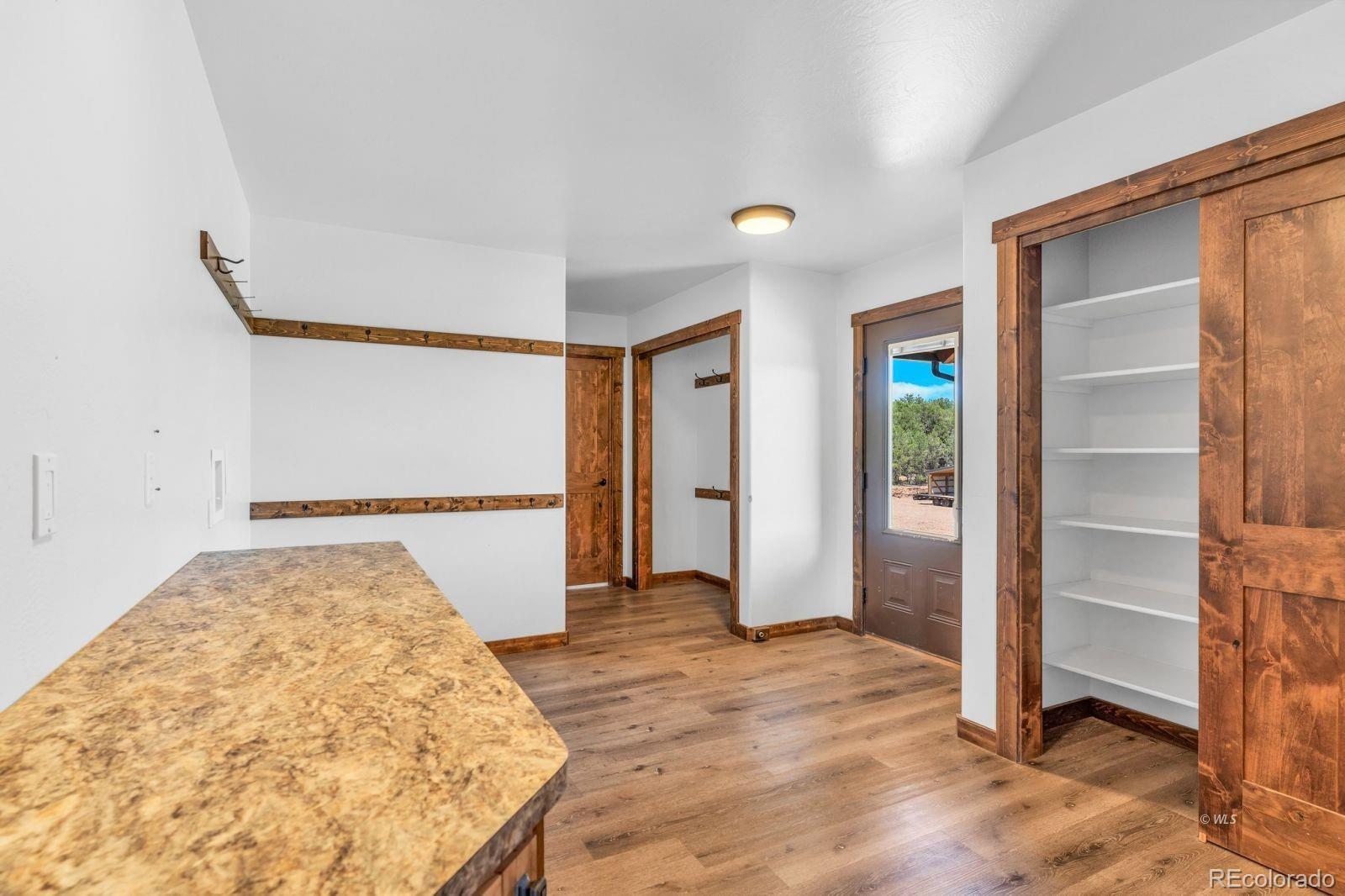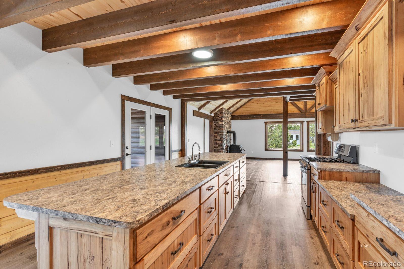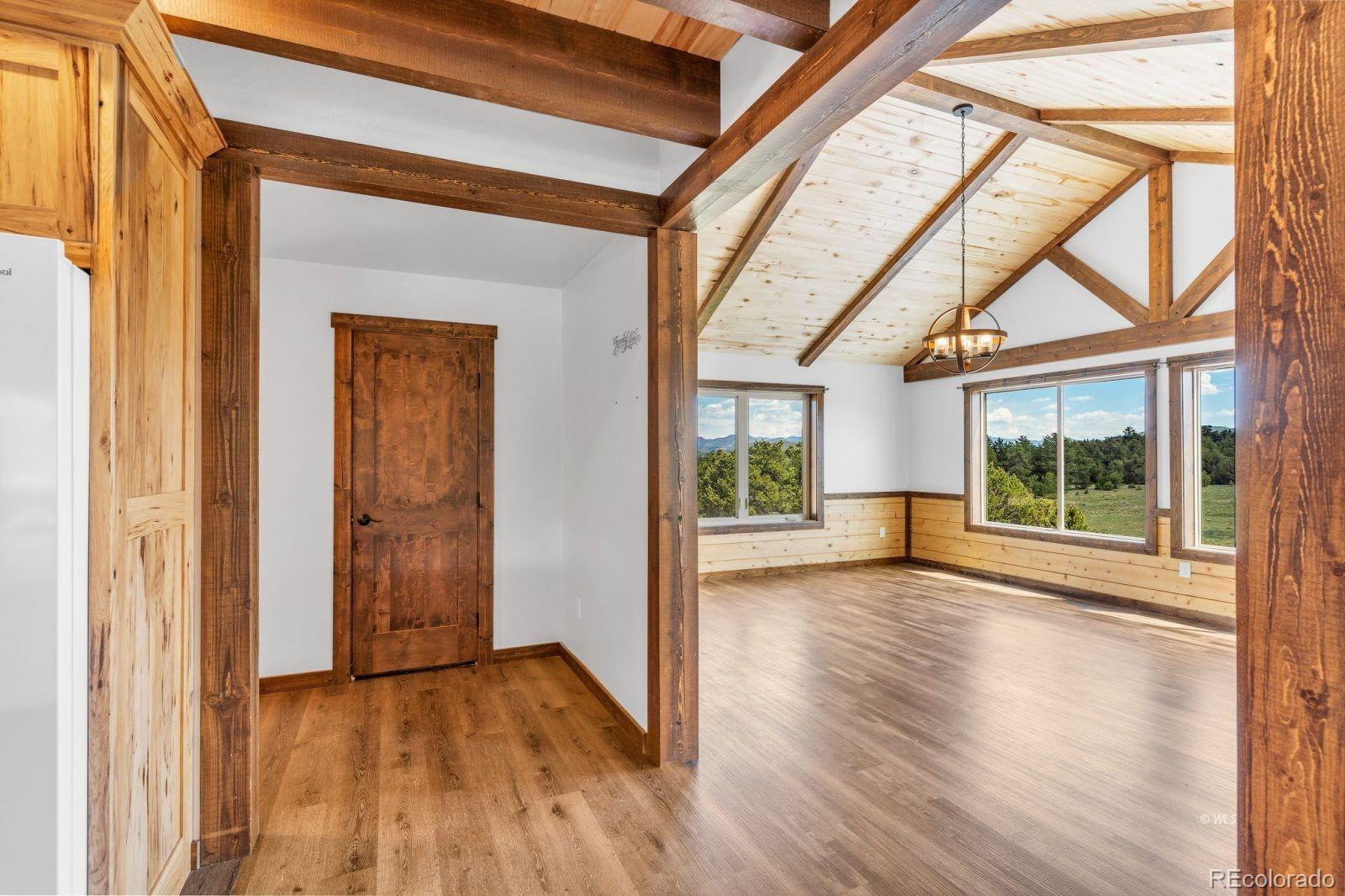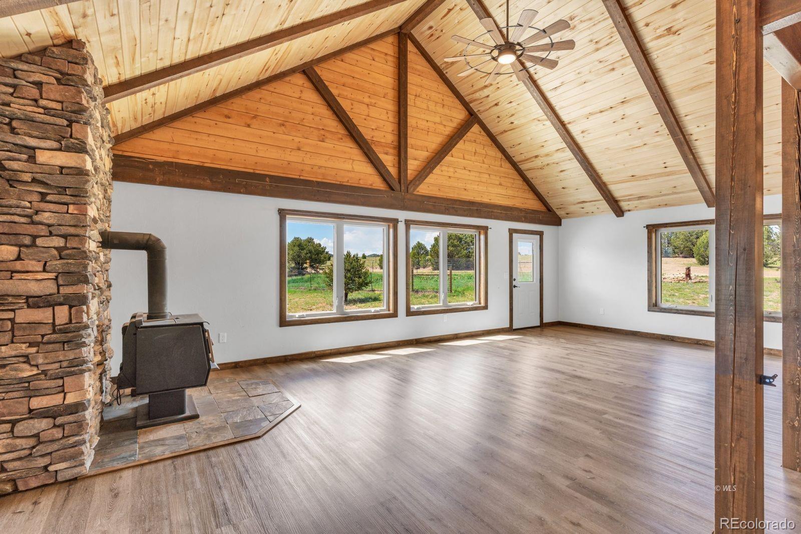 VERSATILE 35-ACRE RETREAT -- VIEWS, OUTBUILDINGS AND GREENHOUSE: Nestled between the Wet Mountains and the Sangre de Cristos, this beautifully crafted Amish home offers comfort, space, and unbeatable views! With four bedrooms and 3.5 baths, the home features wood floors, a study, and a main-level primary suite with an ensuite bath. Enjoy entertaining on the large, covered upper deck or the lower walk-out deck-perfect for gatherings with stunning mountain backdrops. The spacious kitchen opens to a generous mudroom and laundry area with an oversized pantry. A full, unfinished basement with a separate kitchen adds flexibility for guests or events. Stay cozy year-round with two woodburning stoves and a vented propane wall heater. The property includes a 420 sq. ft. attached greenhouse, a 4,280 sq. ft. heated pole barn with a concrete floor and hay sheds, plus five additional outbuildings. Set on 35.2 fenced and treed acres, this home blends rustic charm with modern amenities-ready for your next chapter! Ideal for multi-generational living, hobby farming, or entertaining, this property offers space, comfort, and self-sufficiency in a breathtaking mountain setting.