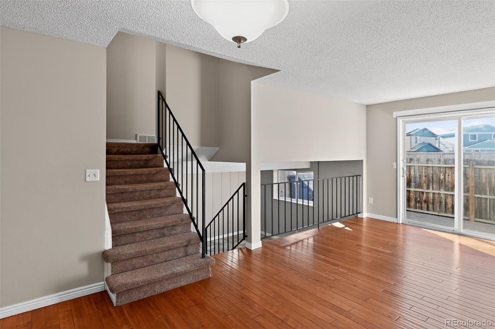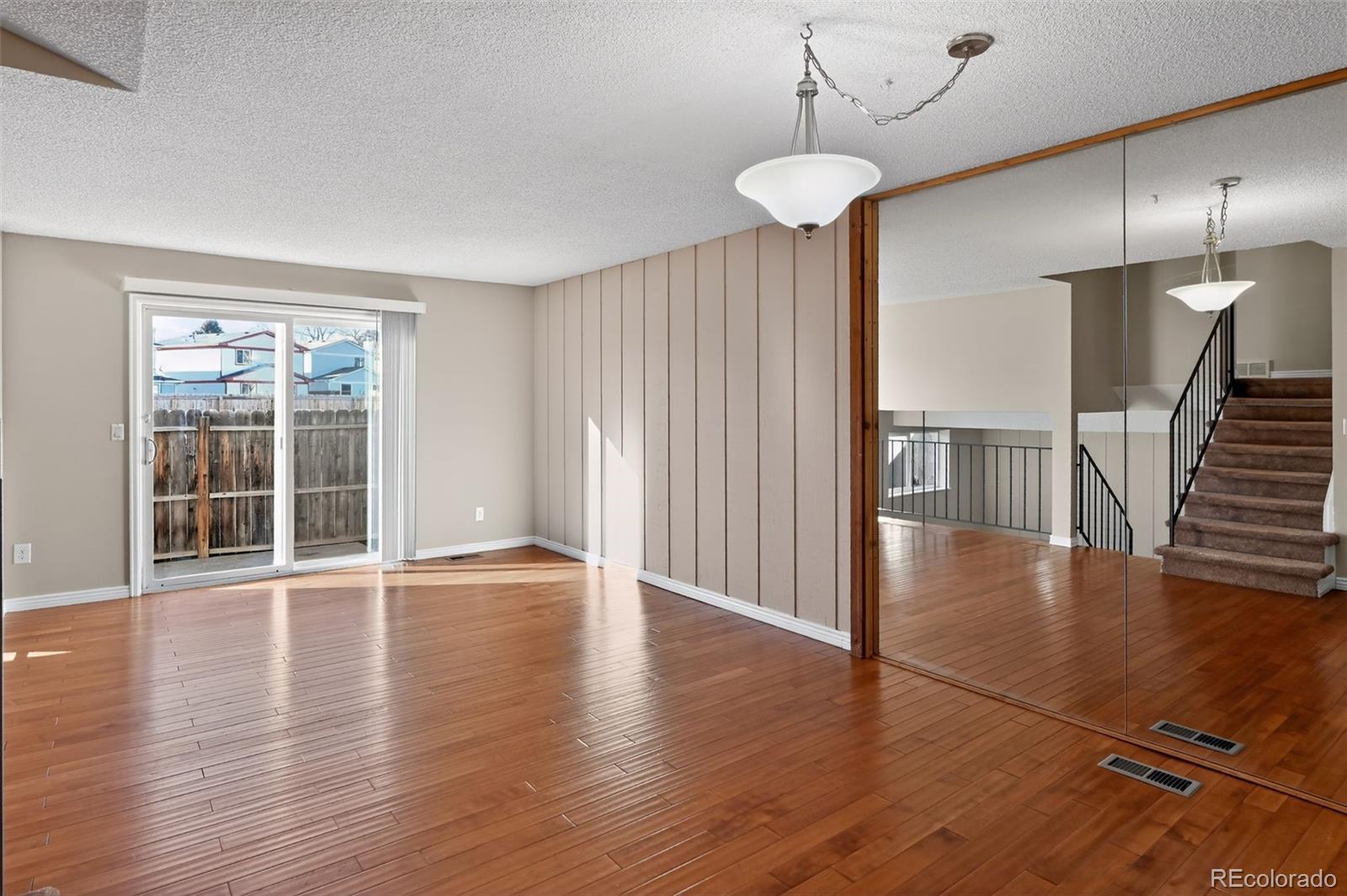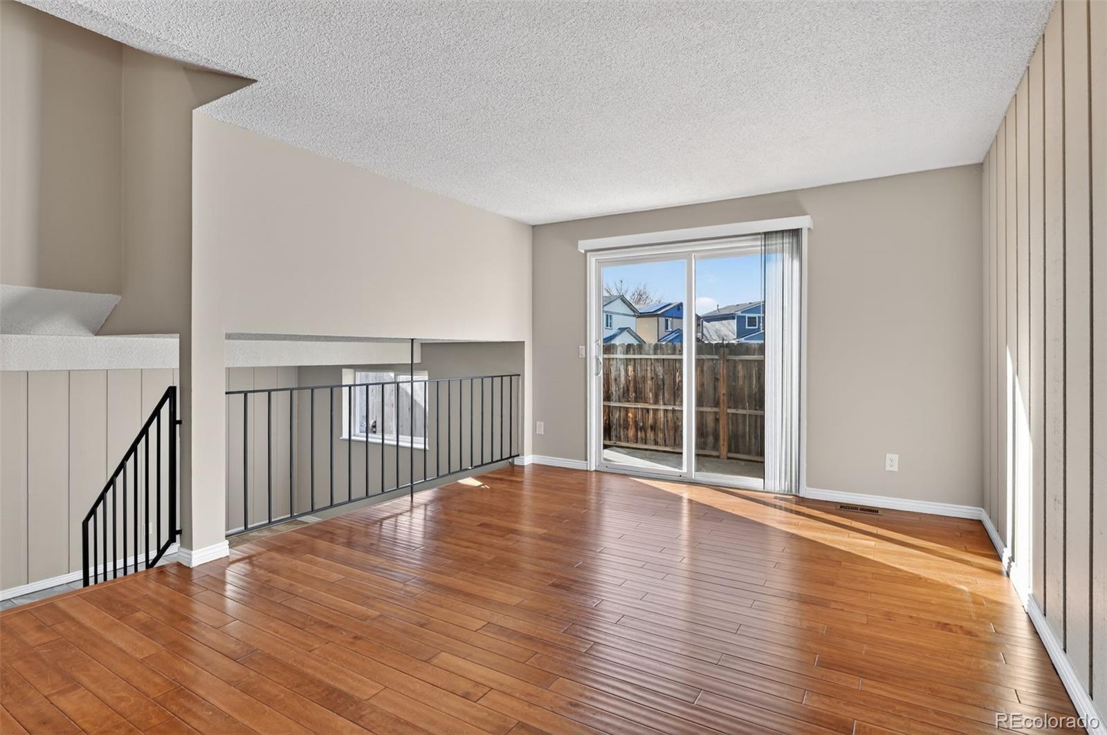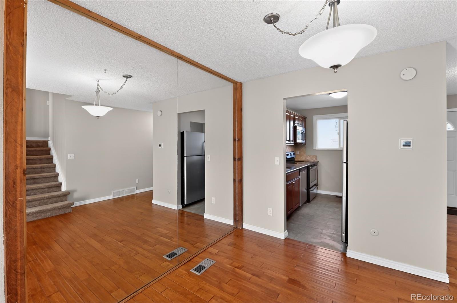 This well-appointed tri-level condo in Madison Hill offers one of the community’s most desirable locations, with the front door opening directly onto a large park and playground. The lush green space is visible through the front glass security door, creating a welcoming first impression. Just steps away, enjoy exceptional walkability to shopping, dining, and entertainment, including the new Westminster City Center across the street, featuring multiple restaurants, a cinema, and a bowling alley. The main level includes the front entry, kitchen, spacious living area, and access to the rear patio through a sliding door. The kitchen is thoughtfully designed with solid maple cabinets featuring crown molding and soft-close hardware, a built-in trash container, granite countertops, a custom travertine backsplash, a composite granite sink, stainless steel appliances, and a custom porcelain tile floor. The living area is finished with engineered maple hardwood flooring, creating a warm and inviting space. Upstairs, you’ll find two bedrooms, a full bathroom, and two additional hall closets providing ample storage. The full bath is finished with custom travertine flooring, a porcelain tile tub/shower surround, granite countertop, and maple cabinetry. The lower level offers a versatile open recreation room ideal for a TV room, playroom, or home office, along with a third bedroom featuring built-in shelving. This level also includes a laundry area with full-size washer and dryer, a ¾ bathroom, and durable large-format tile flooring throughout. Additional highlights include motion-sensor exterior lighting at both the front and rear of the home, enhancing convenience. Private patio for a BBQ and outdoor dining and watching the sun set into the Flatirons.