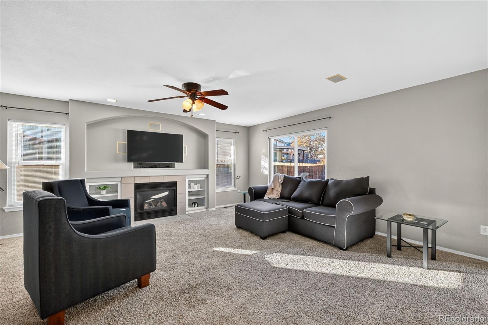 Firestone CO home for sale in the Ridge Crest subdivision. This spacious 4 bedroom 4 bathroom corner-lot property offers over 2400 square feet of finished living space with an additional 1000+ sq ft unfinished basement, ideal for buyers seeking extra room and future expansion. Located near top Firestone schools and major commuter routes, this two-story home blends comfort, convenience, and exceptional Northern Colorado value. Step inside to an open-concept main level featuring a bright kitchen, formal dining area, and a large family room with a cozy fireplace perfect for entertaining or everyday living. The main floor also includes a convenient laundry area and a half bath. Upstairs, the primary suite features vaulted ceilings, a five-piece bathroom and a generous walk-in closet. Three additional bedrooms, and a loft that adds flexibility for remote work, play, or hosting guests. Additional interior highlights include double-pane windows, central air conditioning, and new interior paint through out. The home sits on a fully fenced corner lot with an attached 2-car garage and easy walkability to Prairie Ridge Elementary and Frederick High School. With low quarterly HOA fees and quick access to I-25, shopping, parks, and Firestone conveniences, this home is a standout opportunity for buyers looking for space, comfort, and a prime location.