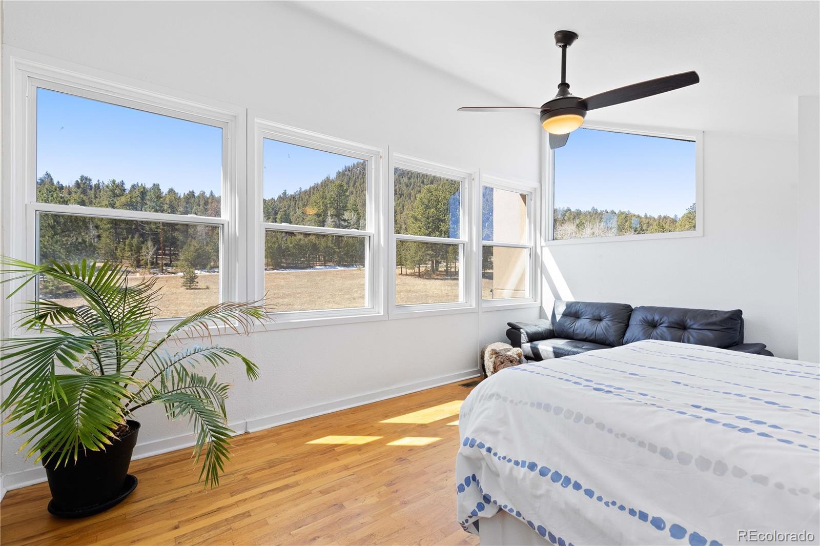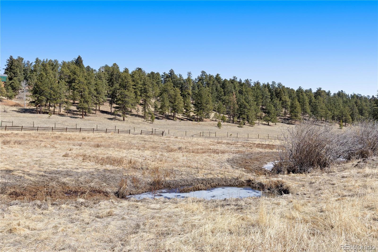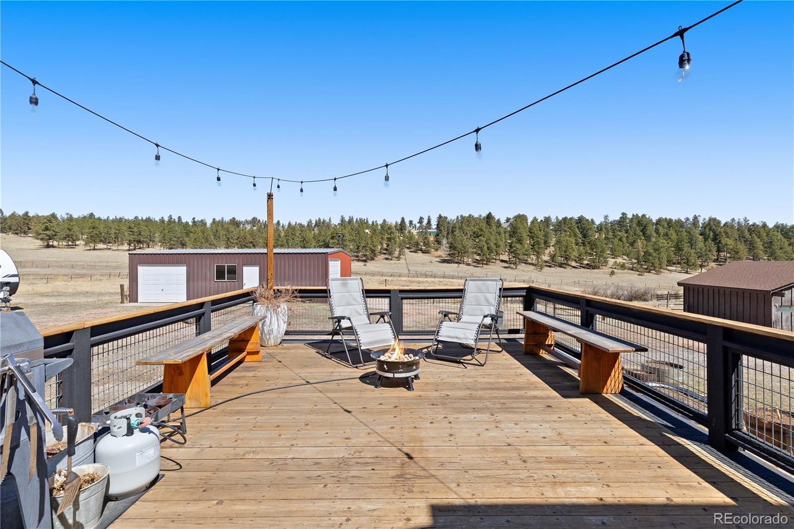 Welcome to your own private sanctuary—an almost 5-acre horse property nestled in the breathtaking foothills just outside of Denver. With sweeping views of Mount Rosalind and direct access to miles of hiking and horseback riding trails, this one-of-a-kind home offers a perfect blend of adventure and tranquility. Step outside your door and into a landscape teeming with wildlife, where golden aspens shimmer in the fall and the scent of pine fills the crisp mountain air. Whether it's a peaceful morning walk or an invigorating ride along the private neighborhood trails, every moment here feels deeply connected to nature. The home itself is a stunning retreat, filled with natural light from oversized, sun-filled windows that frame the incredible mountain views. An open floor plan with vaulted ceilings and hardwood floors creates a warm and welcoming atmosphere. A cozy two-sided fireplace adds charm and comfort to both the living room and the backyard deck. The kitchen brings a rustic mountain vibe, featuring rich wood cabinetry with glass fronts, a gas cooktop, and unique tile countertops. The main level includes a bedroom with a truly one-of-a-kind en-suite bathroom, showcasing exposed copper pipes and matching ceiling tiles. Upstairs, a loft-style bedroom offers expansive views that will leave you in awe. This property has been thoughtfully updated with a new gas furnace, well pump, pressuer tank, front and storm doors, garage door and opener, gutters, ceiling fans, light fixtures, windows, carpet, stucco, paint, and an updated second bath. Just 20 minutes from C-470, this serene escape is close enough to enjoy all the amenities of Denver, yet far enough to feel like another world entirely. This is Colorado living at its finest—wild, beautiful, and truly unforgettable.