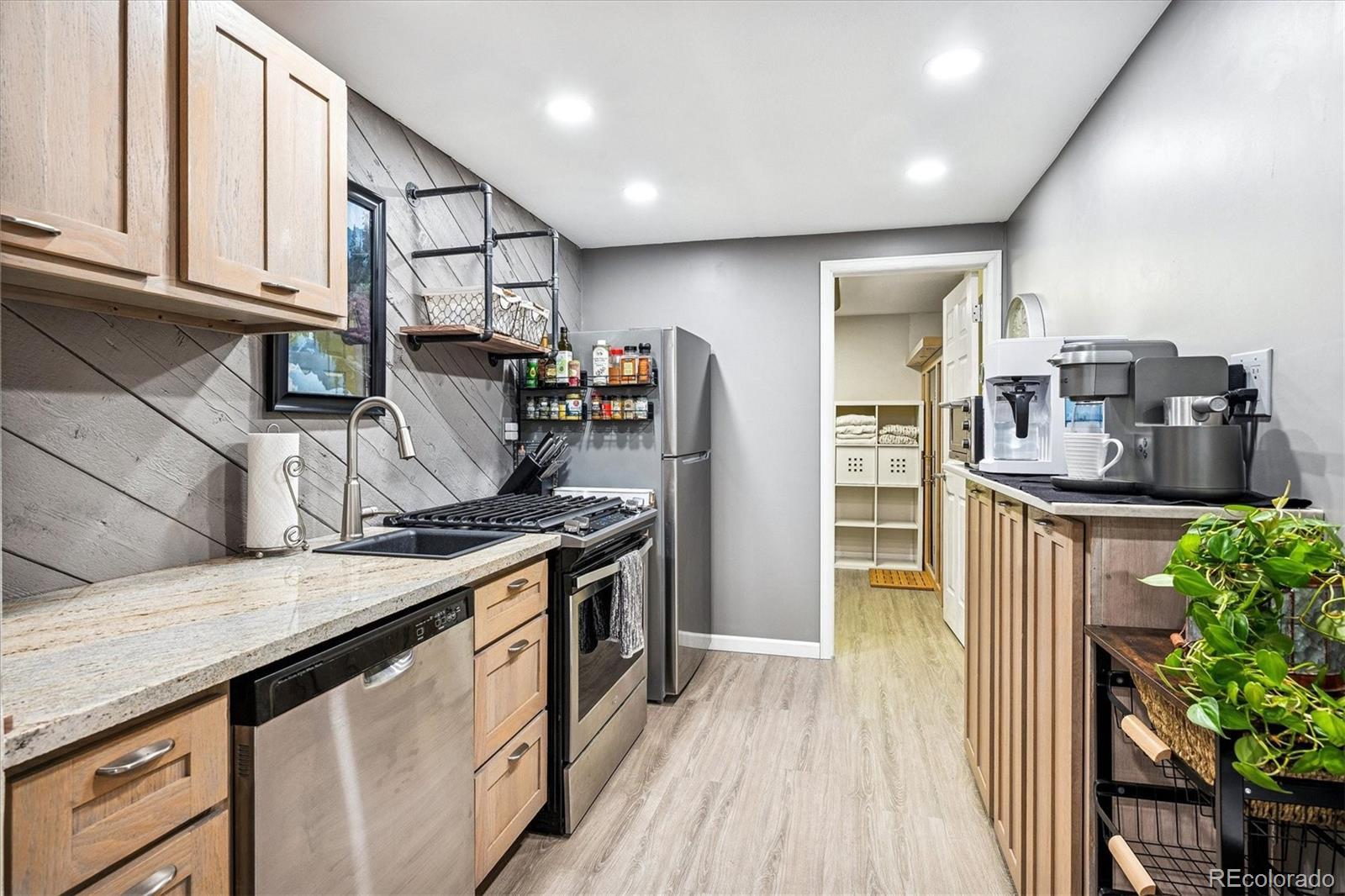 This property presents a compelling opportunity in the mid-$700,000 range, offering flexible living space and income potential rarely found in Pinehurst Estates. Featuring a newly renovated 960 SF basement apartment with private entrance, this 1 bed, 1 bath lower-level unit offers a full kitchen with granite countertops, gas range, dishwasher, refrigerator, and brand-new full-size washer and dryer, making it ideal for multigenerational living, rental income potential, or extended guest space. The well-maintained 4 bed, 4 bath single-family home offers southeast exposure for abundant natural light throughout the day. Mature landscaping provides privacy and shade, while the fenced backyard and upper-level sun deck create inviting outdoor living space. Inside, enjoy an open-concept floor plan with 9-foot ceilings, vaulted ceiling in the primary suite, and a skylight in the five-piece primary bath. The main and upper levels feature professionally painted walls, ceilings, and trim, along with updated switches and outlets. The spacious kitchen includes GE Profile black stainless appliances with gas range and French door counter-depth refrigerator. Granite countertops and butcherblock top island. A dedicated laundry room with Samsung washer and dryer is conveniently located off the kitchen. Three bedrooms and two full baths are located on the upper level, with a half bath on the main floor. Additional updates include newer windows with transferable lifetime warranty and furnace and A/C replaced in November 2022. Located near Pinehurst Park and Bow Mar, with convenient access to Historic Downtown Littleton, the University of Denver, Downtown Denver, Red Rocks, and Denver International Airport. This property combines income potential, flexible living space, and a prime location in one of Denver's established neighborhoods. Buyer and buyer’s agent to verify all information. Owner is a licensed Colorado Real Estate Broker.