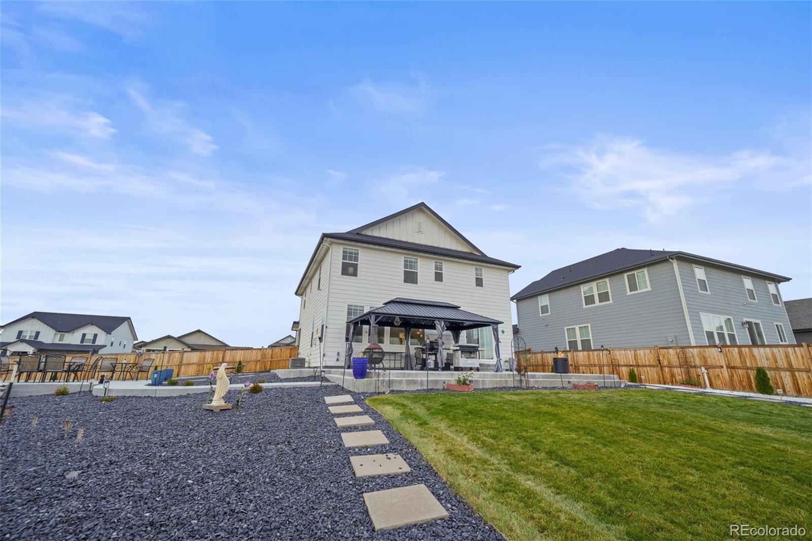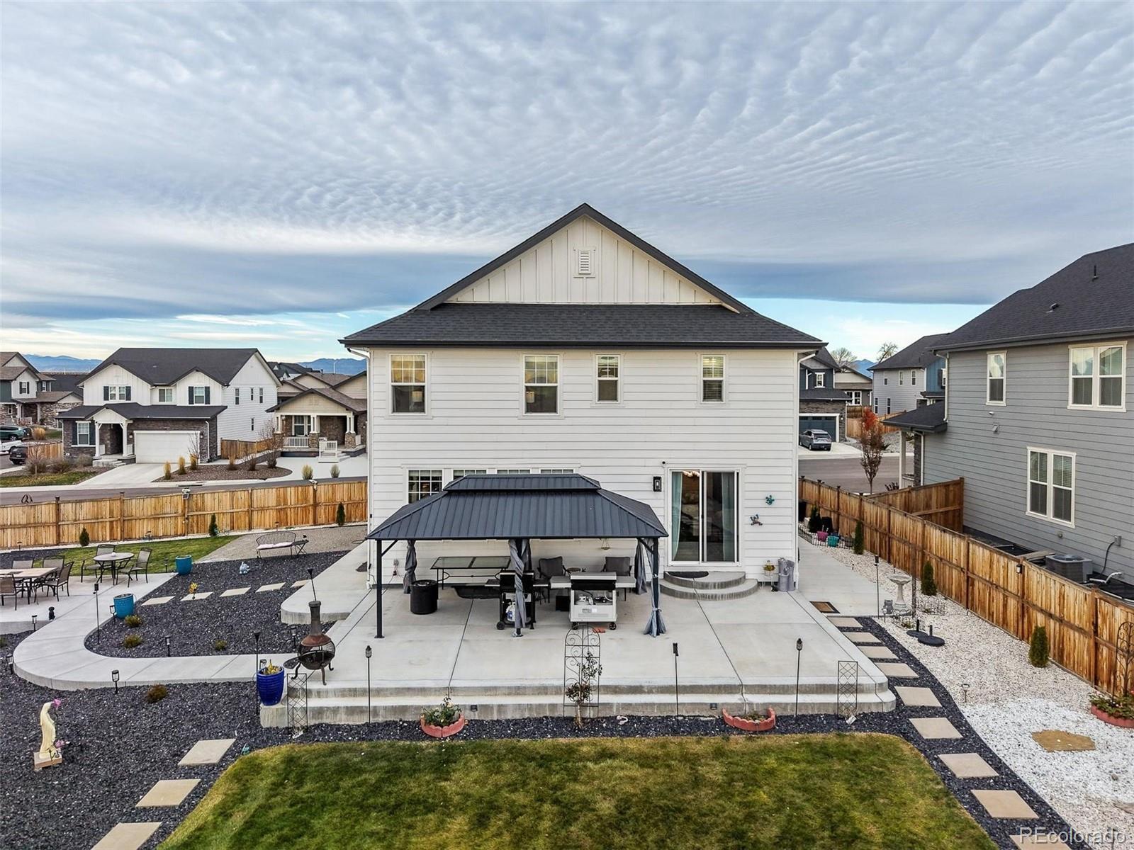 Ohhh, hello gorgeous! Welcome to your very own suburban Shangri-La—this isn’t just a home, it’s a full-on production! We’re talking 3 bedrooms, 3 baths, and enough space to host Thanksgiving and Cirque du Soleil. The moment you walk in—bam!—luxury plank vinyl flooring throughout, smooth and stylish like James Bond on a skateboard. The gourmet kitchen? Oh, honey, it’s not just a kitchen—it’s the culinary command center! Stainless steel gleaming, countertops that whisper, “Yes, Chef!” every time you chop an onion. Now, step outside—and boom!—you’re standing on over half an acre, the largest lot in the community! It’s like Mother Nature herself said, “Let’s give this one a little extra.” You’ve got custom landscaping with full irrigation front and back, and concrete entertaining areas so abundant you could host a wedding, a concert, and a spontaneous dance-off—at the same time! And the community? Multiple parks, new schools, and you’re just 5 minutes from I-25—so whether you’re dashing to dinner, retail therapy, or a spontaneous road trip, you’re golden. It’s stunning. It’s serene. It’s got personality. This home isn’t just move-in ready—it’s ready for its close-up.