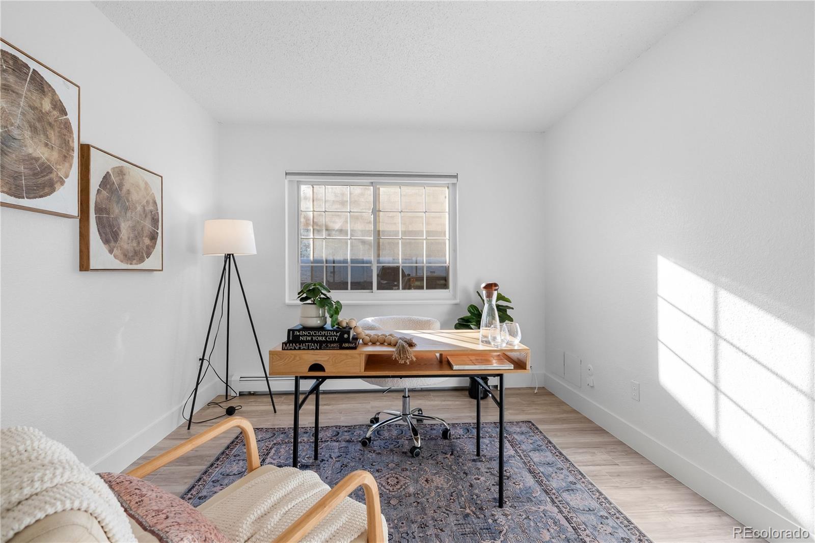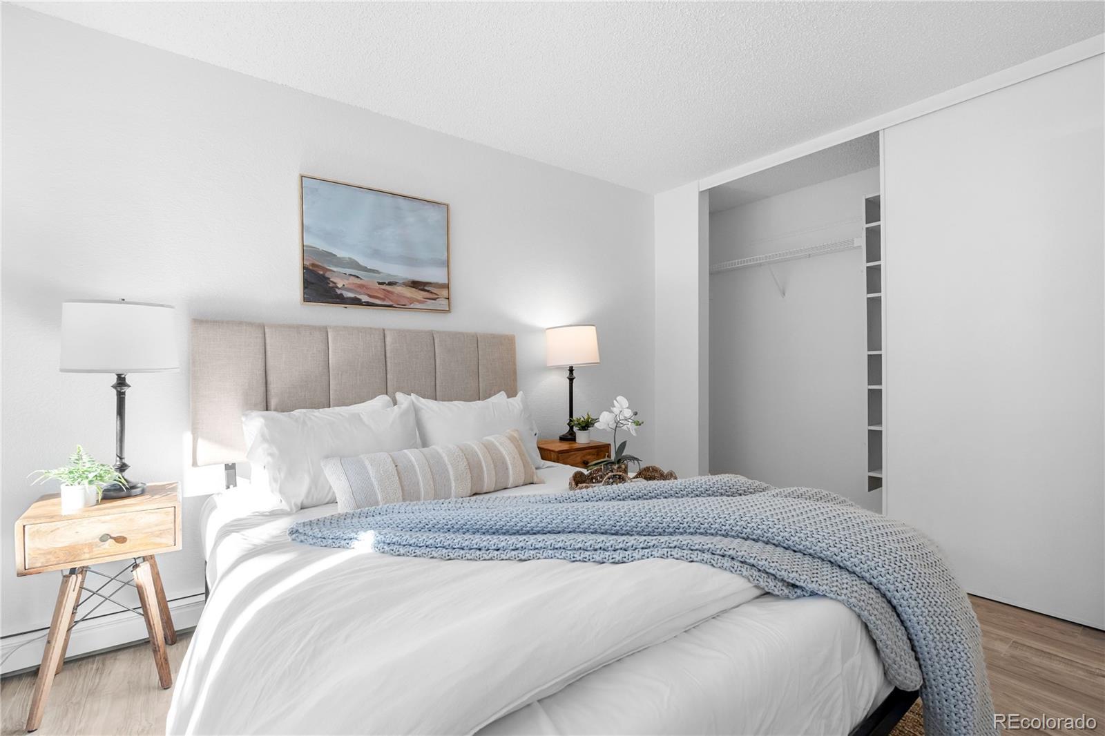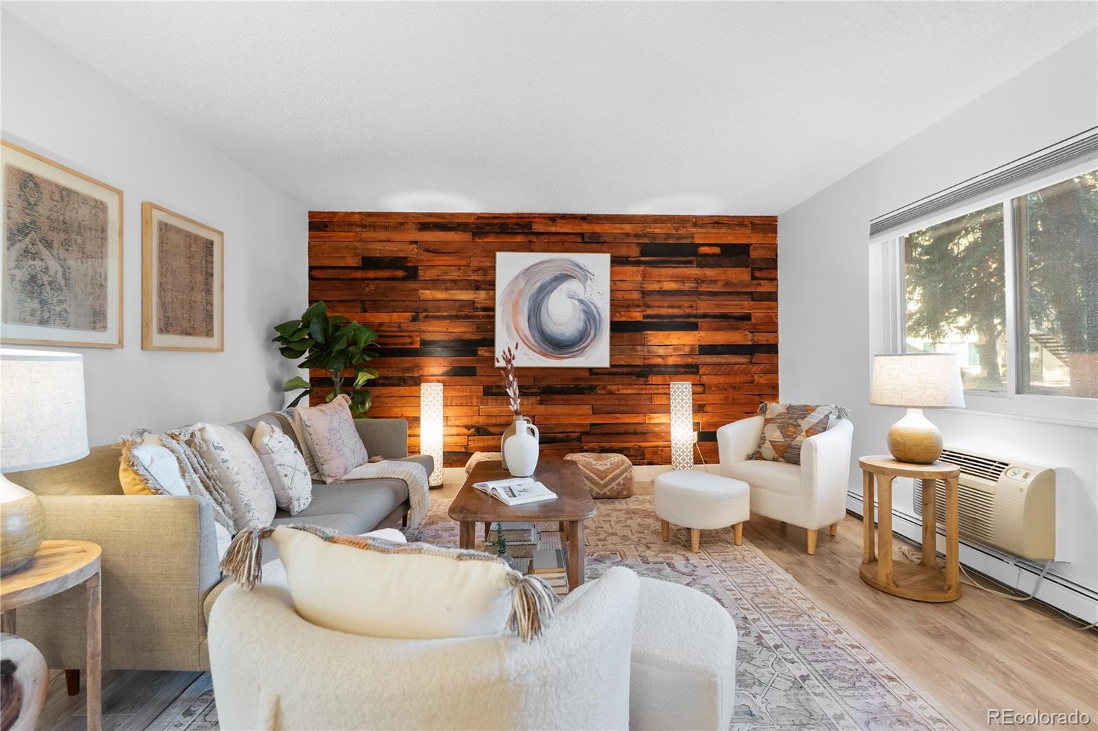 Updated 2-bedroom, 1-bath Virginia Village condo across from the High Line Canal with secured building & reserved covered parking! Welcome home to this thoughtfully updated condo tucked into a private corner of a fully secured community—offering a rare blend of privacy, convenience, & access to the outdoors. Enjoy being directly across from the High Line Canal Trail, with Bible Park, neighborhood favorites like Esters, Natural Grocers & the University of Denver just minutes away (DU is a quick 7-minute drive). The secured building features electronic touchscreen entry, easy package delivery, on-site laundry, no interior hallways or corridors, & a fully fenced property with walking paths throughout. While the unit offers exterior-style access, it is not exposed to the general public—entry is only possible through the secured building. Your reserved, deeded & covered parking space is located right outside the unit for ease. Community amenities include a beautiful courtyard, community garden, basketball court, clubhouse with regular events and a pool. Inside, the open floor plan connects the kitchen, dining, & living areas, highlighted by a striking reclaimed wood accent wall. Recent updates include new LVL flooring, fresh paint & trim, quartz kitchen countertops, stainless steel appliances & an updated eat-in kitchen. Both bedrooms feature floor-to-ceiling, wall-to-wall closets, while the primary bedroom offers sliding doors to a private covered patio next to your parking space. Baseboard heat & A/C unit provide year-round comfort. The HOA covers nearly everything—building insurance, heat, gas, water, sewer, trash, property management, grounds maintenance, landscaping, snow removal, upkeep of the elevator & entry system, & reserves for future repairs—making budgeting simple & homeownership truly worry- free. This condo blends affordability, location & lifestyle in one exceptional Denver opportunity. Check out https://youtu.be/l6dKA-ocNkQ for a day in the life.