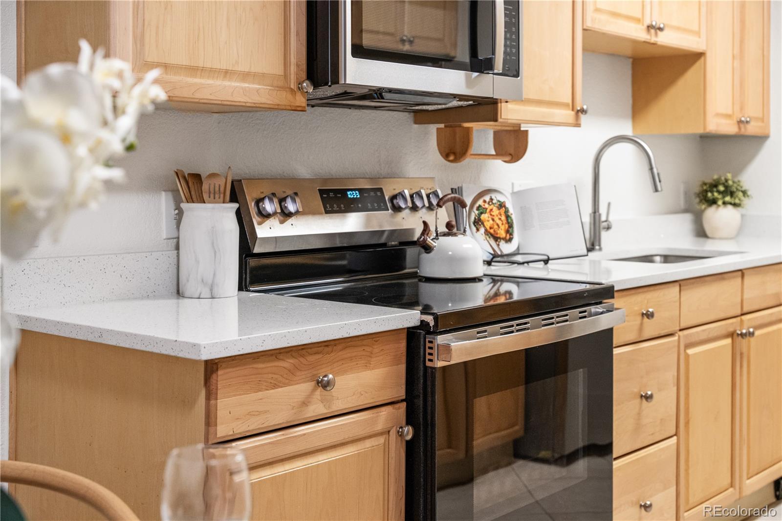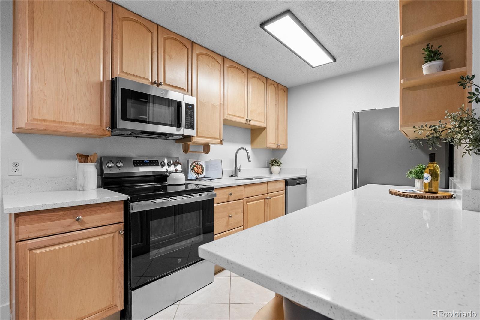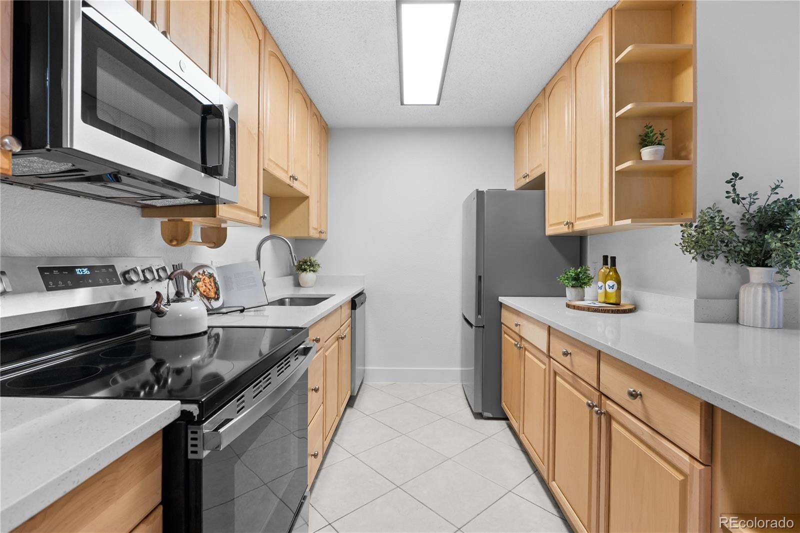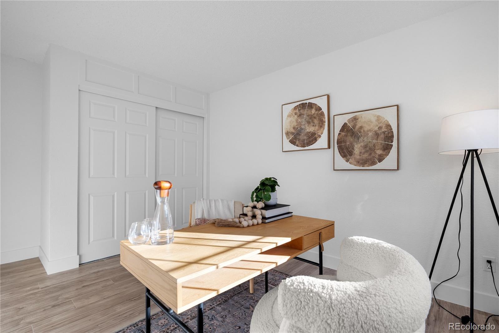 Updated 2-bedroom, 1-bath Virginia Village condo across from the High Line Canal with secured building & reserved covered parking! Welcome home to this thoughtfully updated condo tucked into a private corner of a fully secured community—offering a rare blend of privacy, convenience, & access to the outdoors. Enjoy being directly across from the High Line Canal Trail, with Bible Park, neighborhood favorites like Esters, Natural Grocers & the University of Denver just minutes away (DU is a quick 7-minute drive). The secured building features electronic touchscreen entry, easy package delivery, on-site laundry, no interior hallways or corridors, & a fully fenced property with walking paths throughout. While the unit offers exterior-style access, it is not exposed to the general public—entry is only possible through the secured building. Your reserved, deeded & covered parking space is located right outside the unit for ease. Community amenities include a beautiful courtyard, community garden, basketball court, clubhouse with regular events and a pool. Inside, the open floor plan connects the kitchen, dining, & living areas, highlighted by a striking reclaimed wood accent wall. Recent updates include new LVL flooring, fresh paint & trim, quartz kitchen countertops, stainless steel appliances & an updated eat-in kitchen. Both bedrooms feature floor-to-ceiling, wall-to-wall closets, while the primary bedroom offers sliding doors to a private covered patio next to your parking space. Baseboard heat & A/C unit provide year-round comfort. The HOA covers nearly everything—building insurance, heat, gas, water, sewer, trash, property management, grounds maintenance, landscaping, snow removal, upkeep of the elevator & entry system, & reserves for future repairs—making budgeting simple & homeownership truly worry- free. This condo blends affordability, location & lifestyle in one exceptional Denver opportunity. Check out https://youtu.be/l6dKA-ocNkQ for a day in the life.