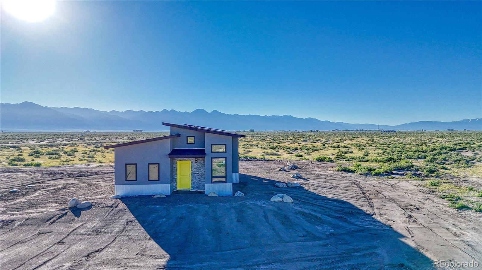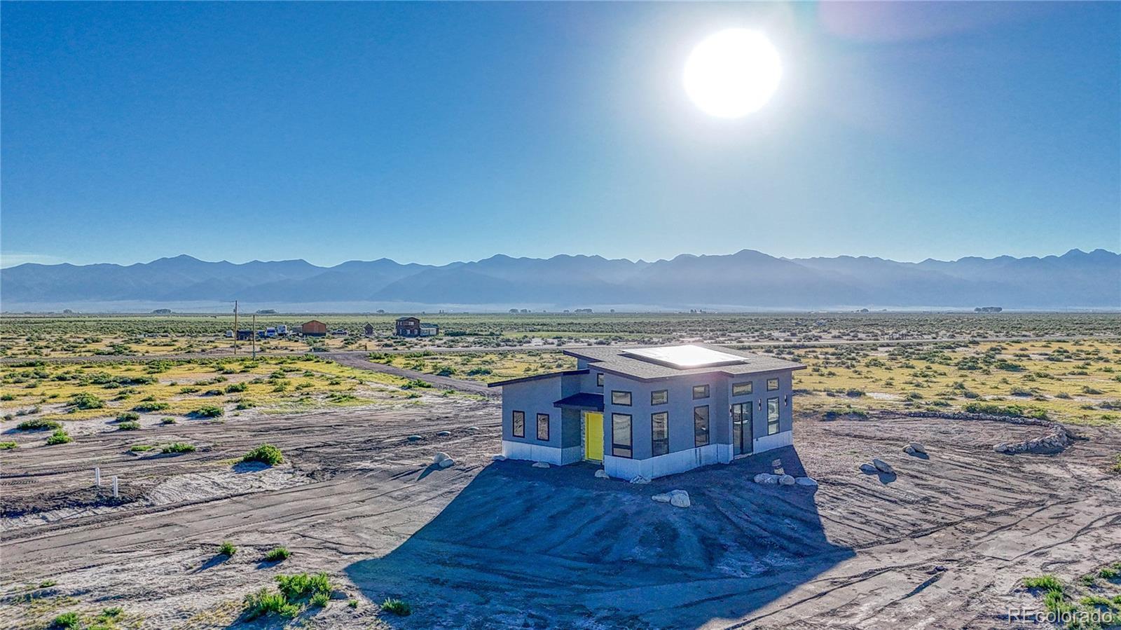 SLV Retreat. Energy Efficient Contemporary Bungalow with Solar Power and Sweeping Views. Modern electric-powered bungalow perched on 36 acres in the San Luis Valley is all new construction: 2 bedroom/1 bath home features an open concept living space with polished concrete floors, high, vaulted ceilings and passive-solar-inspired south facing windows. Designed to harvest sunlight, this home is entirely electric, well-insulated, features cove heating and a 4 kw solar system that is tied to the grid. Eat-in kitchen with wrap-around bar, stainless steel appliances, stacked stone accents and quartz counter tops. Pocket doors on bed and bath rooms maximize space and create a warm minimalist feel. Spacious 5-piece bath with a modern-spa vibe includes tiled shower and free-standing bathtub. Domestic well permit allows for the construction of up to 3 dwelling units (total) and oversize septic system is engineered for 4 bedrooms with a 1500 gallon tank. A unique offering with room to roam. 15 mies from the quaint canopied town of Saguache, 45 miles to Salida, an hour to Monarch Ski Area and 1.5 hours to Wolf Creek Ski area, nearby hot springs and plenty of area wilderness to explore. Plans (permit set) are attached to this listing and available through the listing agent.