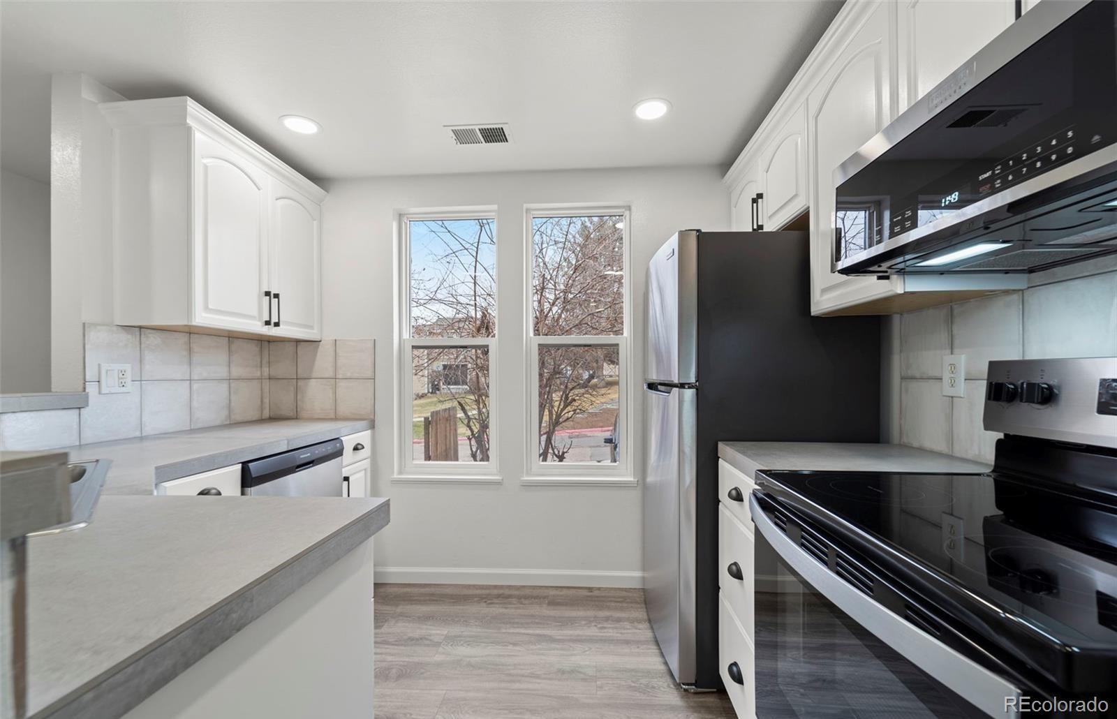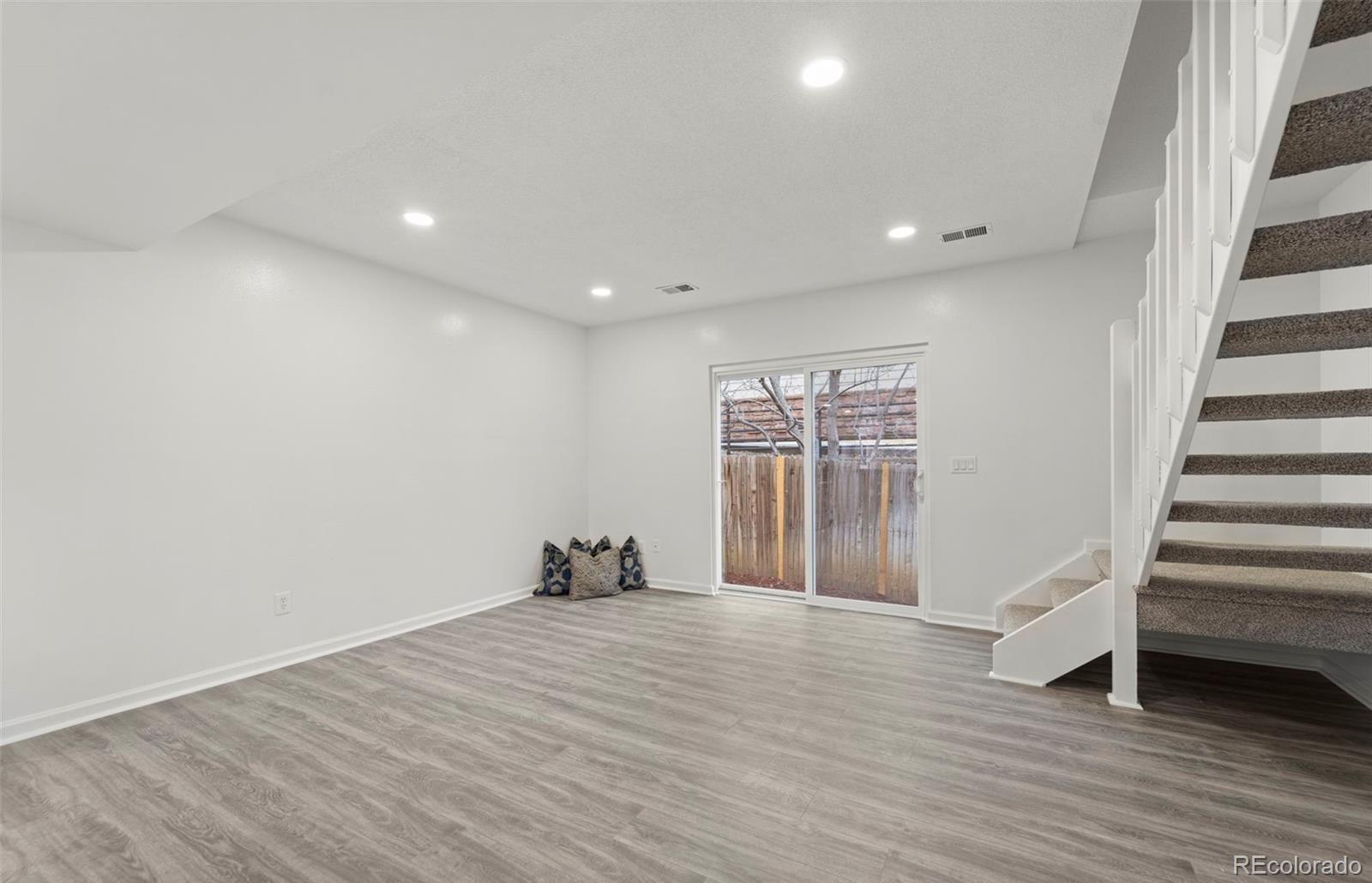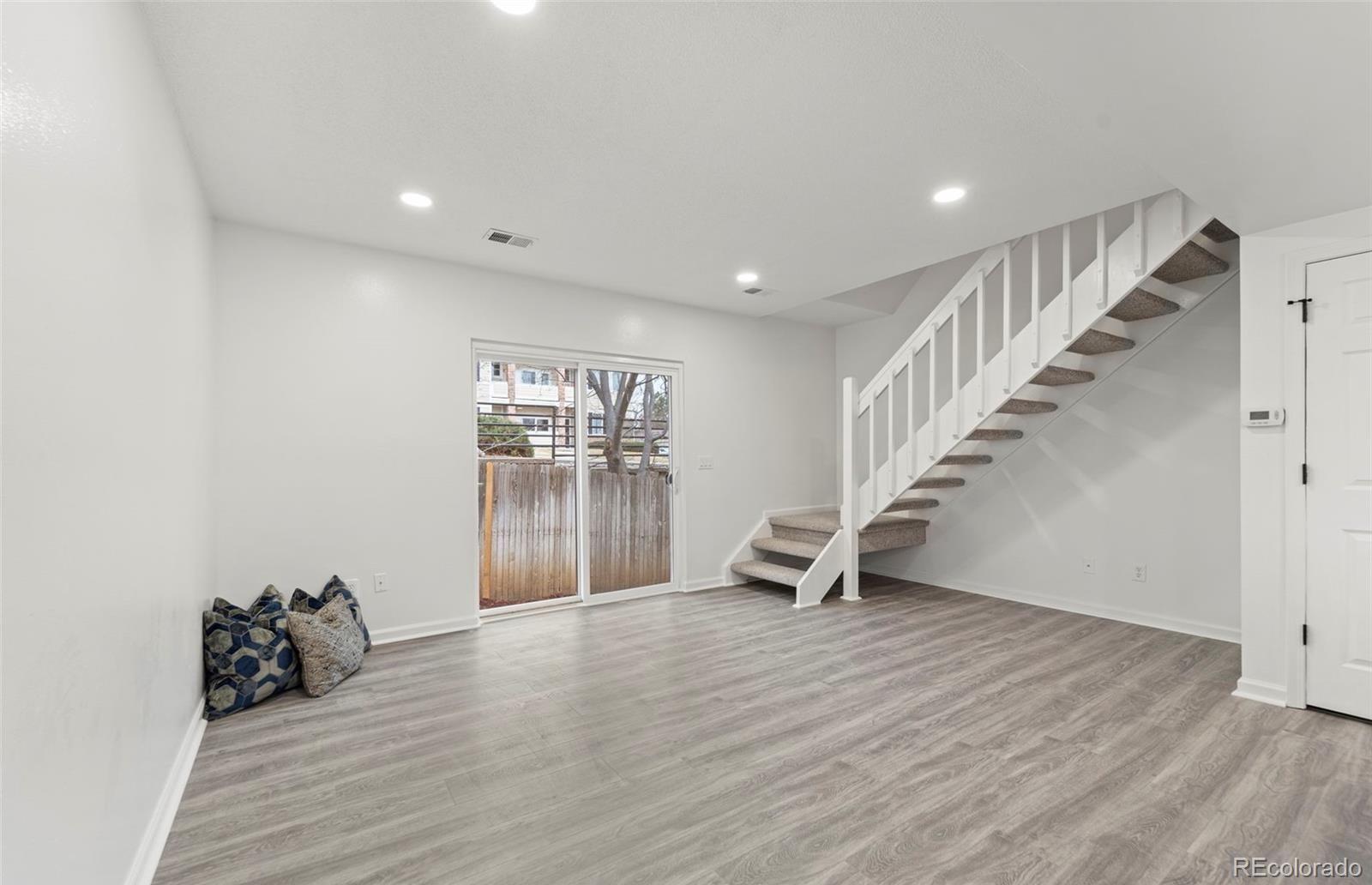 This end unit townhome was COMPLETELY REMODELED in early spring 2025. All popcorn ceilings removed, fresh paint and texture, all new windows and sliding patio door. The updated kitchen features new stainless steel appliances and solid service countertops. New solid surface flooring throughout the first floor and new carpet on the stairs and second level. Both bathrooms feature new toilets, vanities, black hardware fixtures and accents. Enjoy the back patio area with new privacy fence and access gate. This property is ideally situated next to Iowa Elementary School and a lovely park, providing easy access to outdoor recreation. Commuting is a breeze with the RTD just down the road, and I-225 is just minutes away. With shopping, dining, and entertainment options close by, you'll have everything you need at your doorstep.