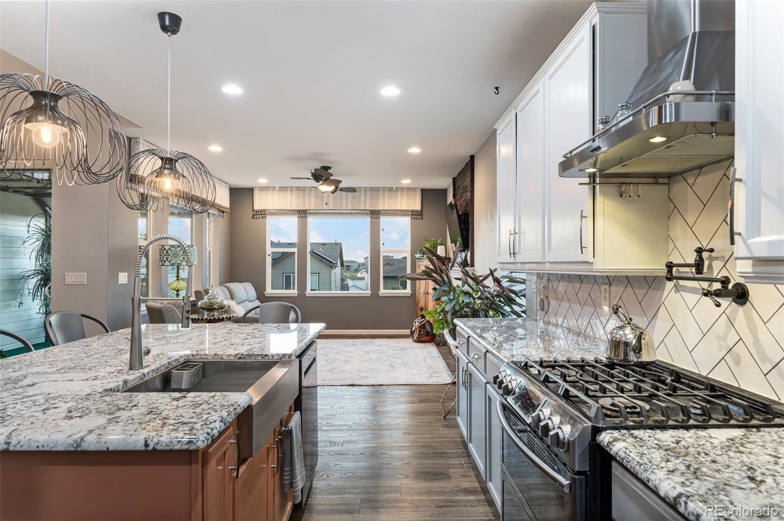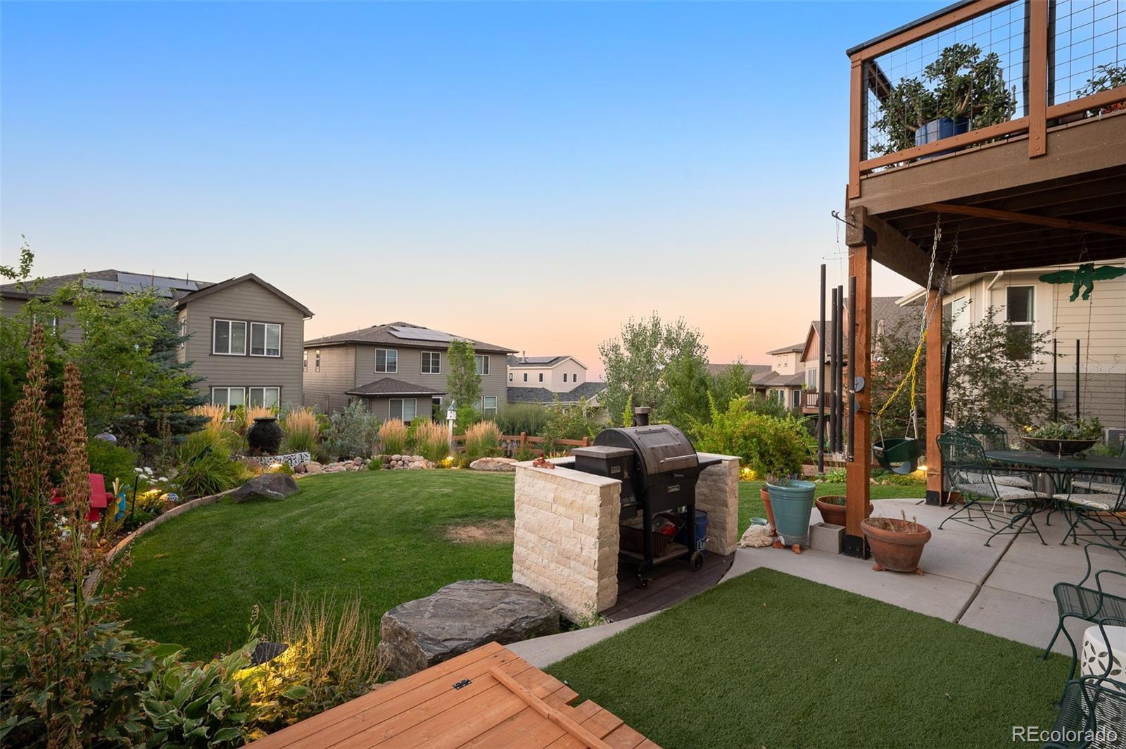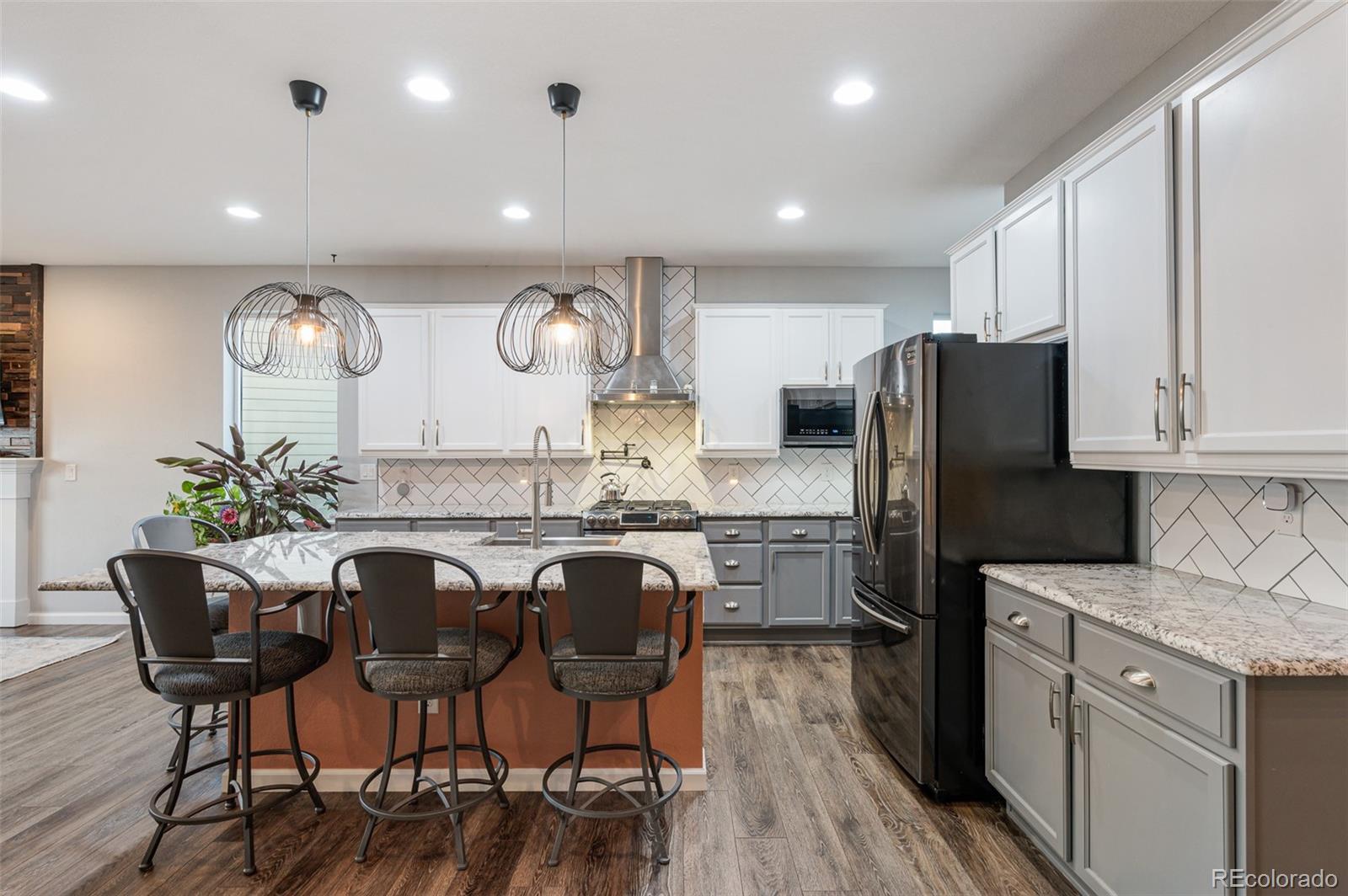 **Price Improvement** Welcome to this stunning residence in the highly sought-after Candelas community, where thoughtful upgrades and custom details make this home truly stand out. The entry hallway is accented with classic wainscoting and leads into a spacious dining room highlighted by a striking custom chandelier that serves as a statement piece and elevates the entire space. The custom chef’s kitchen is designed for both function and style, featuring a gas range with hood, a convenient pot filler, and seamless flow into the living and dining areas. Just beyond, a light-filled sunroom offers its own water access and opens to the extended deck through dramatic garage-style doors, creating the perfect indoor/outdoor living and entertaining experience. The main-level primary suite is a private sanctuary, highlighted by stained-glass accents in both the bedroom and the spa-inspired en-suite, blending artistry with relaxation. Upstairs, generously sized bedrooms share a Jack-and-Jill bathroom, while the finished walk-out basement is an entertainer’s dream with a full custom bar, sink, and lounge area. Completing this level is a rare workshop outfitted with a 220-volt outlet and sub-panel—ideal for hobbies, projects, or serious makers. Car enthusiasts and hobbyists alike will appreciate the oversized garage with epoxy-coated floors, finished walls, and dedicated water access, offering both style and practicality. The professionally landscaped yard is equally impressive, featuring a paver-lined raised garden bed and a private backyard retreat. With 5 spacious bedrooms, 4 full bathrooms, and over 4,200 finished square feet, this home blends elegance, functionality, and craftsmanship in one of Arvada’s premier neighborhoods.