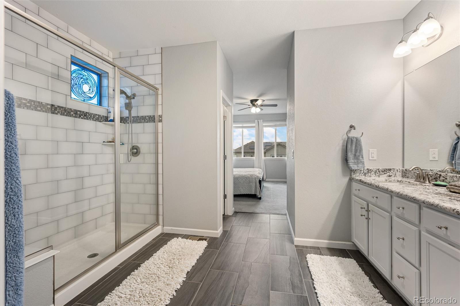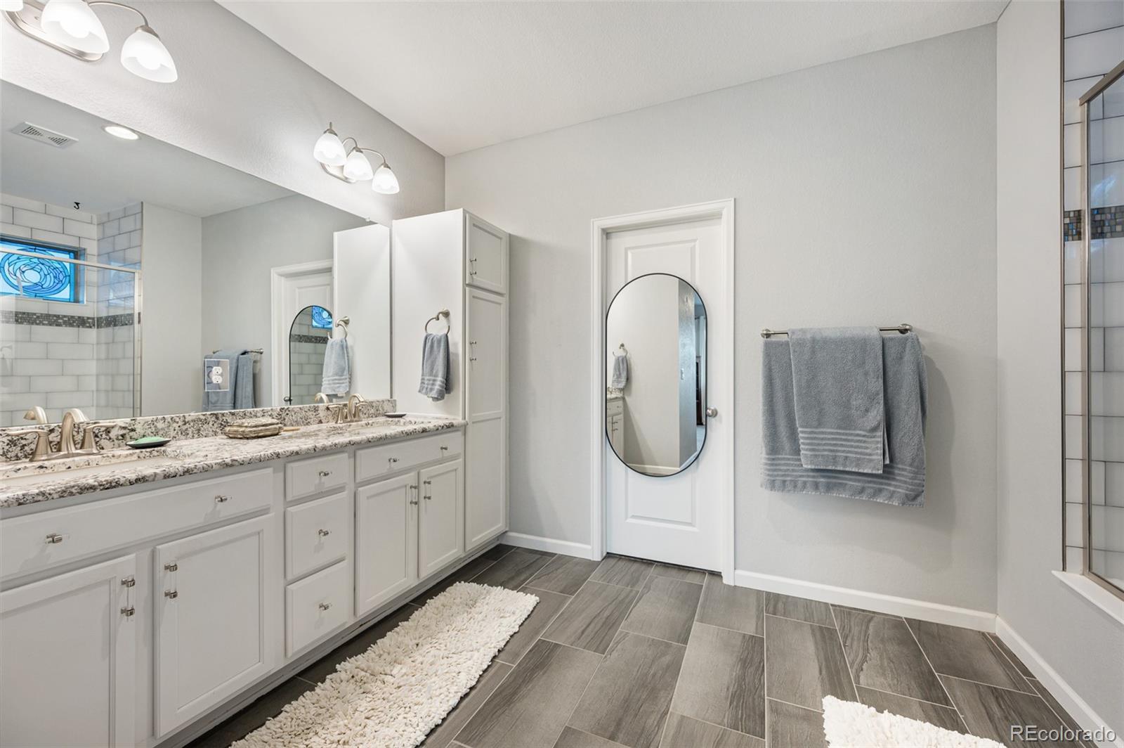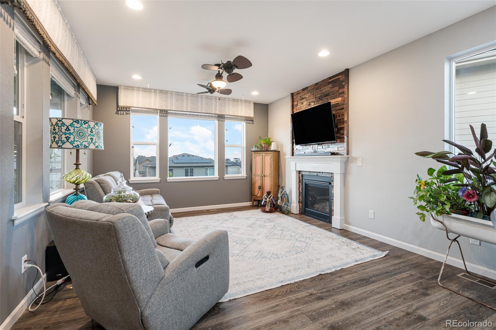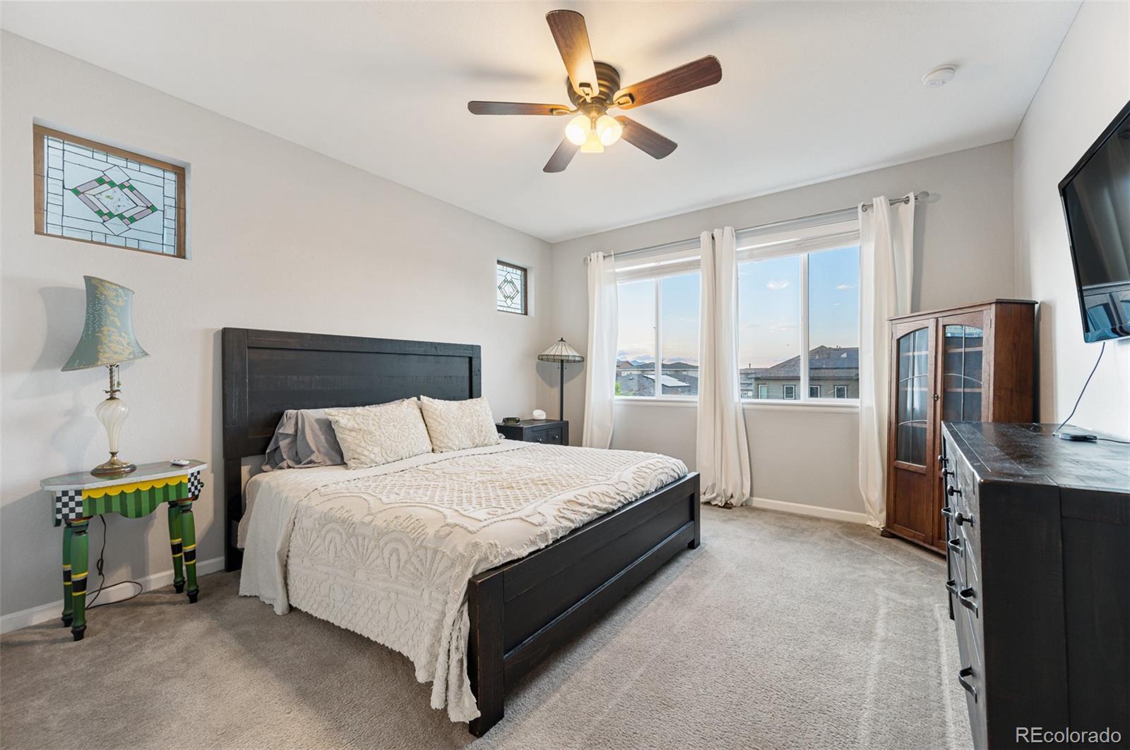 **Price Improvement** Welcome to this stunning residence in the highly sought-after Candelas community, where thoughtful upgrades and custom details make this home truly stand out. The entry hallway is accented with classic wainscoting and leads into a spacious dining room highlighted by a striking custom chandelier that serves as a statement piece and elevates the entire space. The custom chef’s kitchen is designed for both function and style, featuring a gas range with hood, a convenient pot filler, and seamless flow into the living and dining areas. Just beyond, a light-filled sunroom offers its own water access and opens to the extended deck through dramatic garage-style doors, creating the perfect indoor/outdoor living and entertaining experience. The main-level primary suite is a private sanctuary, highlighted by stained-glass accents in both the bedroom and the spa-inspired en-suite, blending artistry with relaxation. Upstairs, generously sized bedrooms share a Jack-and-Jill bathroom, while the finished walk-out basement is an entertainer’s dream with a full custom bar, sink, and lounge area. Completing this level is a rare workshop outfitted with a 220-volt outlet and sub-panel—ideal for hobbies, projects, or serious makers. Car enthusiasts and hobbyists alike will appreciate the oversized garage with epoxy-coated floors, finished walls, and dedicated water access, offering both style and practicality. The professionally landscaped yard is equally impressive, featuring a paver-lined raised garden bed and a private backyard retreat. With 5 spacious bedrooms, 4 full bathrooms, and over 4,200 finished square feet, this home blends elegance, functionality, and craftsmanship in one of Arvada’s premier neighborhoods.