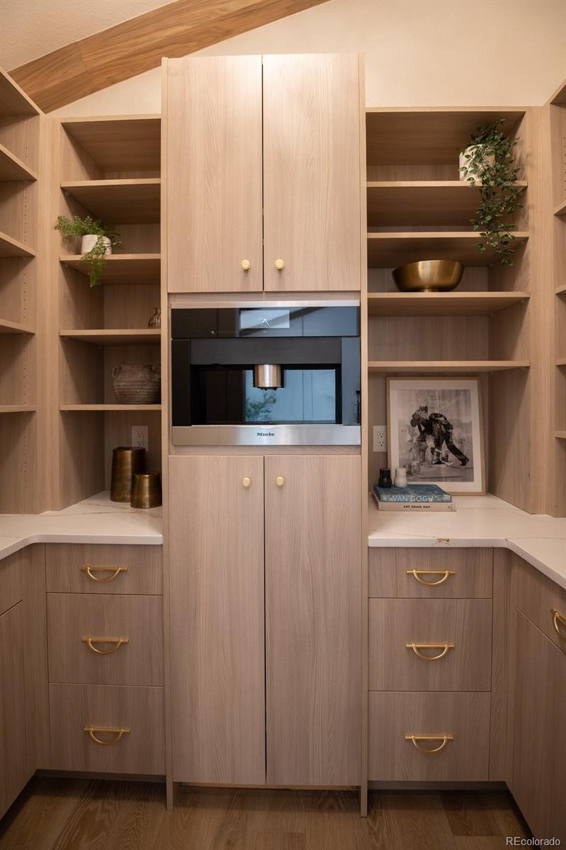 Built-in Features, Entrance Foyer, Five Piece Bath, High Ceilings, Kitchen Island, Open Floorplan, Pantry, Primary Suite, Quartz Counters, Smart Thermostat, Smoke Free, Vaulted Ceiling(s), Walk-In Closet(s), Wet Bar
