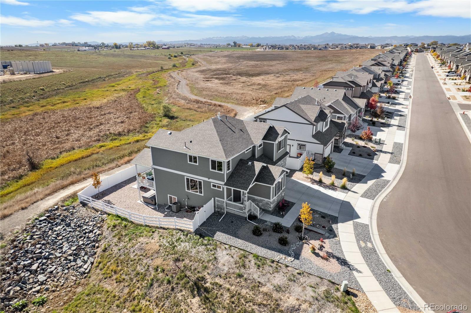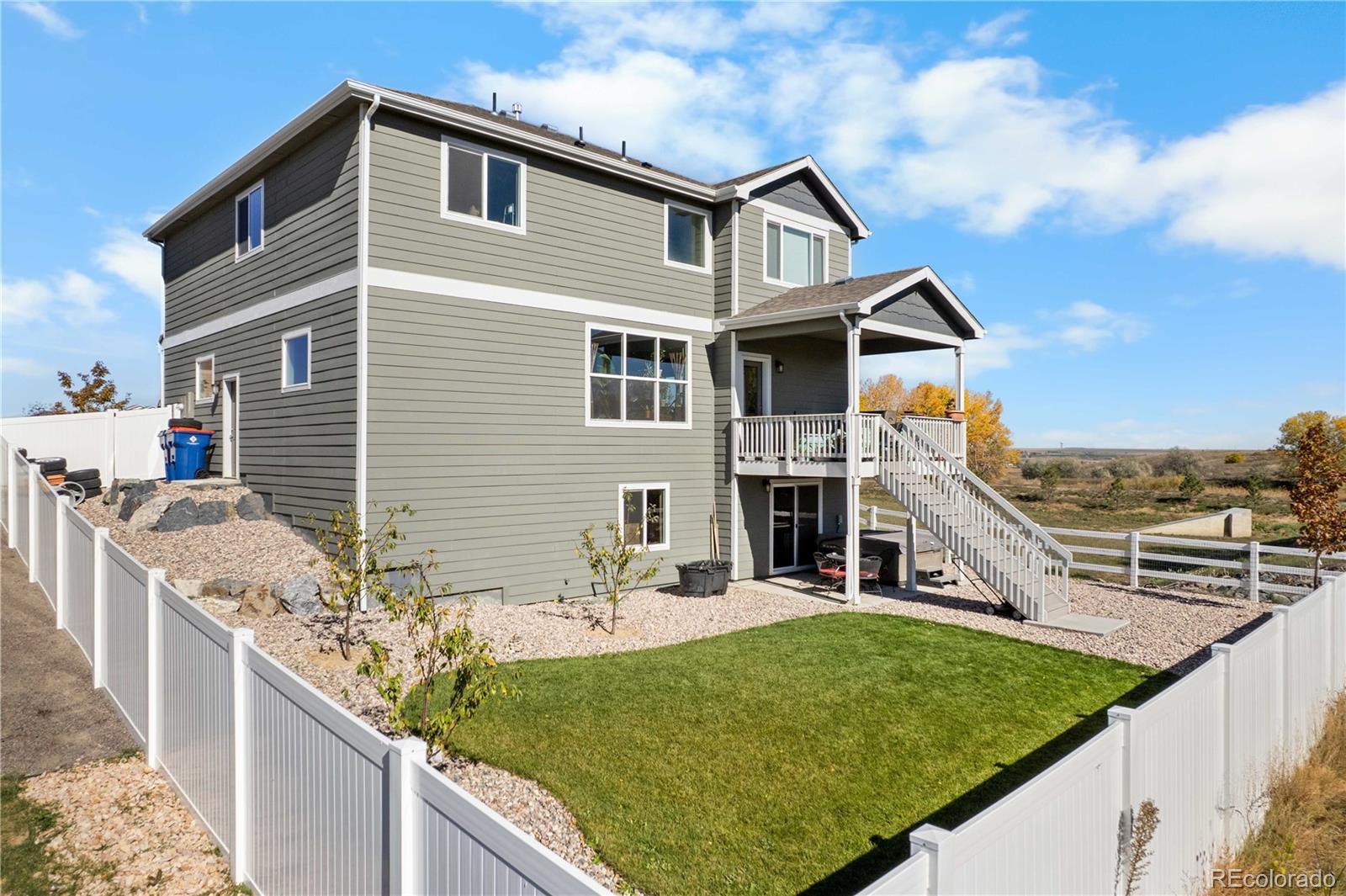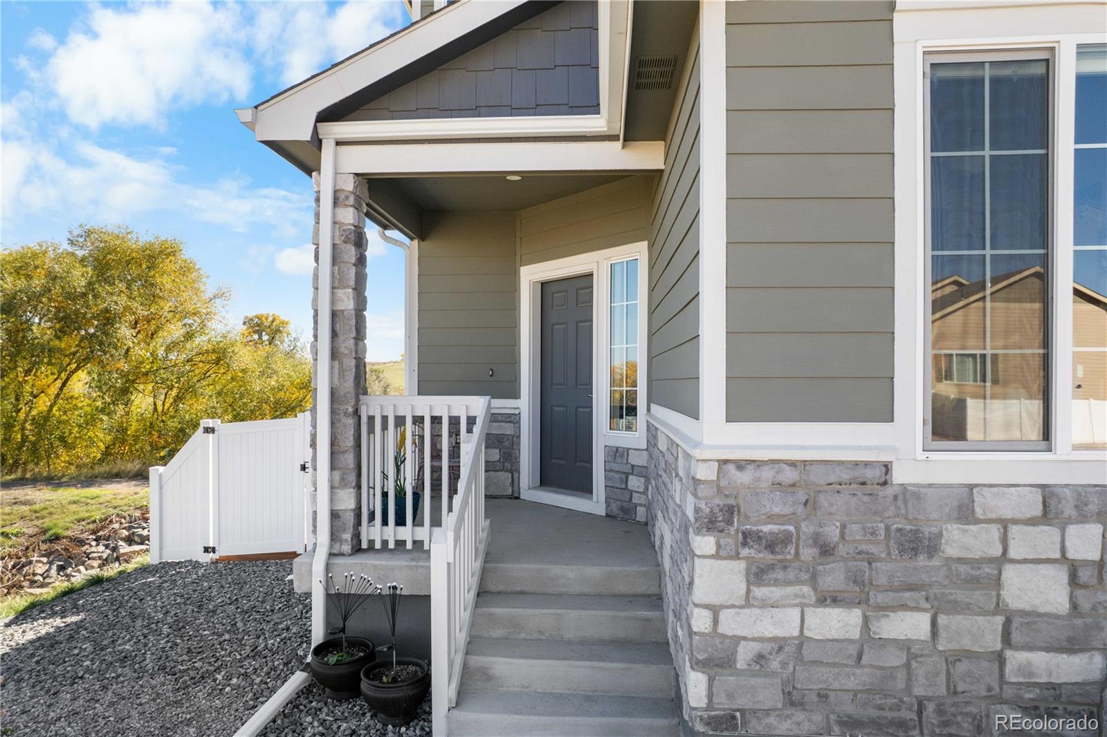 $15,000 CLOSING CREDIT INCLUDED IN THE PRICE!! This lot may be the most private lot you can have in a subdivision, (no neighbors behind you or to the side of you), yet have expansive views and sunset views to the west and easy access to the Walking Trails! This is one of those "GEM" homes....from the moment you walk in, you feel warm and welcome. This home sits up higher in the front (but without the steep typical stairs) & gives you a Walk-Out Basement in the back, making for lots of sunlight & spectacular views. There is a large Entry Way with a Built-In Coat & Shoe Nook, a half Bath & a Front Office with Glass French Doors. Then heading past the upstairs Staircase, is the Open Kitchen & Living Room/Great Room. The Dining Nook has true antique Barnwood from an old Loveland Barn and a very cool Chandelier made of Resin Antlers, looking out a HUGE picture window to the East. A Large Kitchen Island with Gray & White Granite with Garnet Red Flecks immediately catches your eye! Black Appliances including; Side by Side Refrigerator, Microwave, Dishwasher and Smooth Top Stove/Oven. Adjoining Great Room is good size with Beautiful Wood Built-In Bookcases that will stay & also has a HUGE picture window looking out to the South & the Back Door to the Covered Deck. Upstairs is another Living Room Space in the Loft, the Laundry Room with Blue Matching Washer & Dryer Set & 4 Bedrooms! The Large Primary Bedroom and Bath boast a Large Walk-In Closet with 2 CUSTOM SHOE SHELVES, an Oversized Soaking Tub, Separate Walk-In Shower and door to the Toilet. All Upstairs Bedrooms are good size rooms. Finished Walk-Out Basement has a large Open Room that has room to add a Kitchenette or Wet Bar Area, a Full Bathroom & a Large Storage Room. (Storage Shelves are not included). Front & Backyard Low-Maintenance Landscaping is gorgeous! Fully Fenced 6' White Vinyl Fencing on 3 sides & White Vinyl Split Rail Fence on East Side, plus another covered Back Patio & close to Park/Playground.