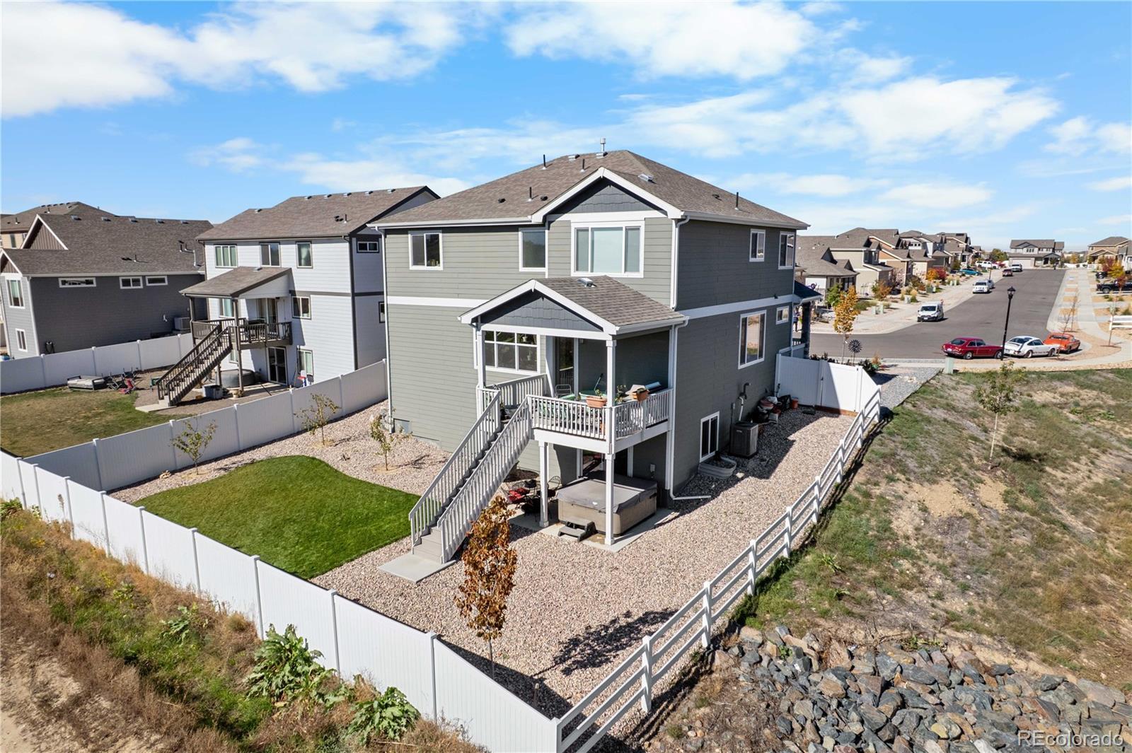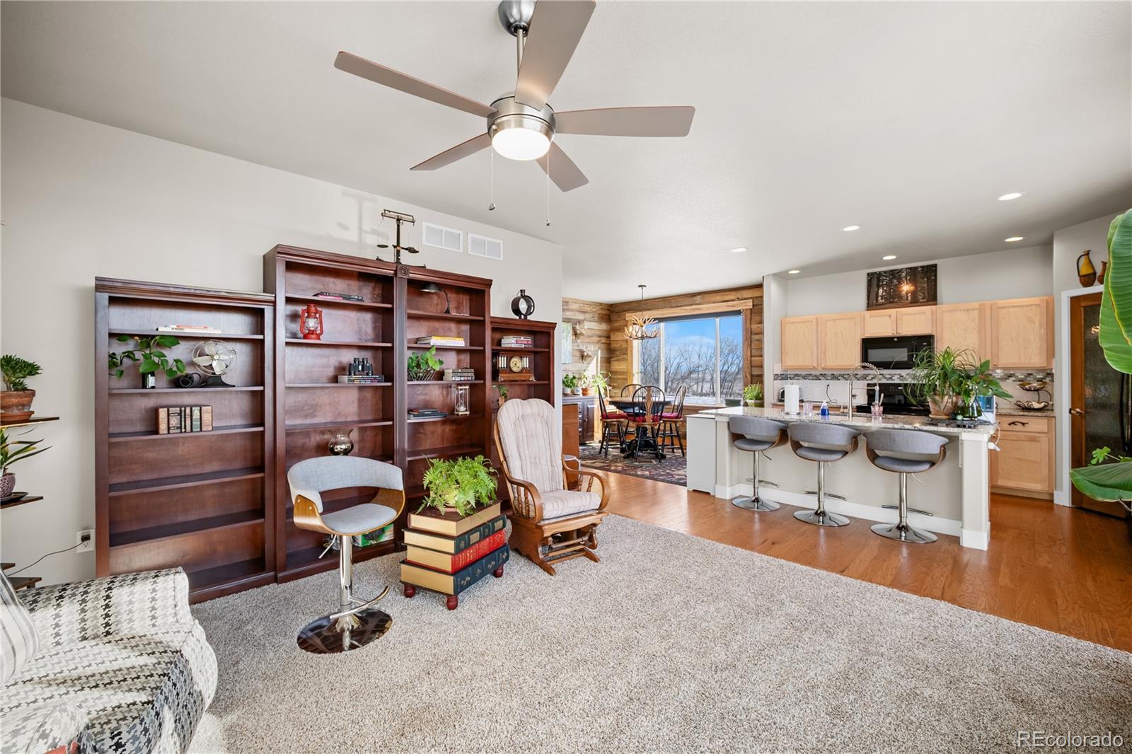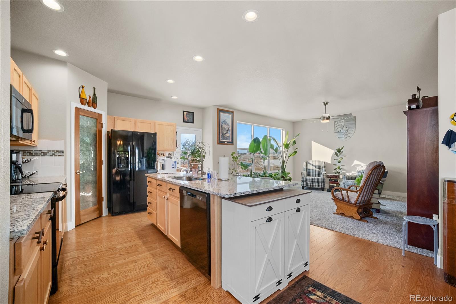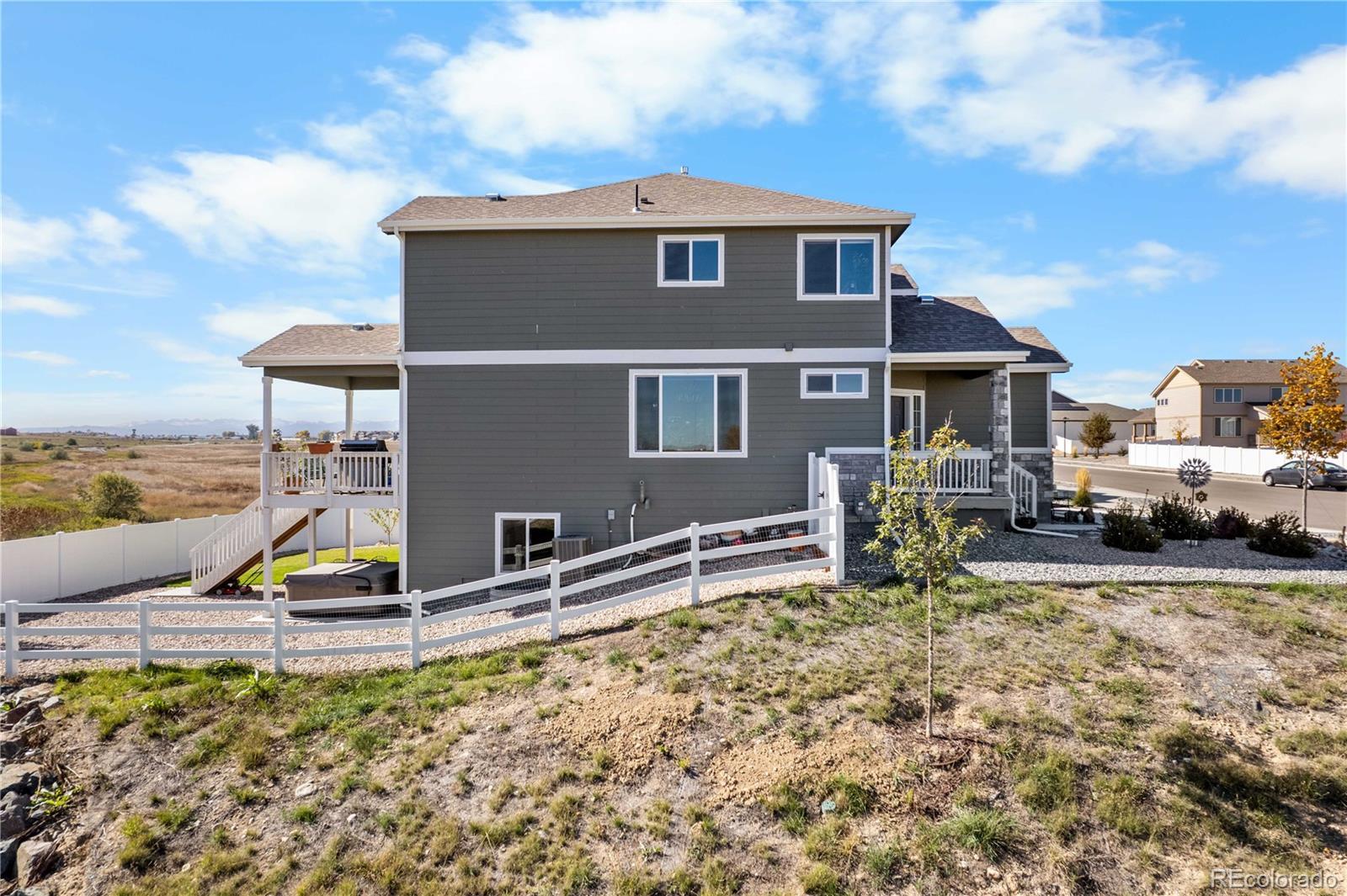 $15,000 CLOSING CREDIT INCLUDED IN THE PRICE!! This lot may be the most private lot you can have in a subdivision, (no neighbors behind you or to the side of you), yet have expansive views and sunset views to the west and easy access to the Walking Trails! This is one of those "GEM" homes....from the moment you walk in, you feel warm and welcome. This home sits up higher in the front (but without the steep typical stairs) & gives you a Walk-Out Basement in the back, making for lots of sunlight & spectacular views. There is a large Entry Way with a Built-In Coat & Shoe Nook, a half Bath & a Front Office with Glass French Doors. Then heading past the upstairs Staircase, is the Open Kitchen & Living Room/Great Room. The Dining Nook has true antique Barnwood from an old Loveland Barn and a very cool Chandelier made of Resin Antlers, looking out a HUGE picture window to the East. A Large Kitchen Island with Gray & White Granite with Garnet Red Flecks immediately catches your eye! Black Appliances including; Side by Side Refrigerator, Microwave, Dishwasher and Smooth Top Stove/Oven. Adjoining Great Room is good size with Beautiful Wood Built-In Bookcases that will stay & also has a HUGE picture window looking out to the South & the Back Door to the Covered Deck. Upstairs is another Living Room Space in the Loft, the Laundry Room with Blue Matching Washer & Dryer Set & 4 Bedrooms! The Large Primary Bedroom and Bath boast a Large Walk-In Closet with 2 CUSTOM SHOE SHELVES, an Oversized Soaking Tub, Separate Walk-In Shower and door to the Toilet. All Upstairs Bedrooms are good size rooms. Finished Walk-Out Basement has a large Open Room that has room to add a Kitchenette or Wet Bar Area, a Full Bathroom & a Large Storage Room. (Storage Shelves are not included). Front & Backyard Low-Maintenance Landscaping is gorgeous! Fully Fenced 6' White Vinyl Fencing on 3 sides & White Vinyl Split Rail Fence on East Side, plus another covered Back Patio & close to Park/Playground.