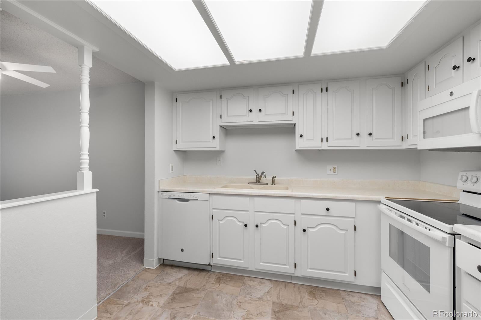 Heather Gardens is a desirable 55+ condominium community in Aurora, located just east of Cherry Creek State Park and set along the Heather Gardens Golf Course. The community offers a vibrant lifestyle that blends comfort with social engagement. This recently updated 1-bedroom, 1-bath unit with a large walk-in closet overlooks one of the lush green fairways and features an enclosed lanai/sunroom, an updated kitchen, new carpet, and paint, as well as a convenient storage unit steps away and an in-unit laundry closet. The building provides a secure entrance, is serviced by two elevators, and includes one reserved underground heated garage space. Residents enjoy resort-style amenities, including indoor and outdoor swimming pools, a clubhouse, fitness center, billiards, craft room, and wood shop. Combining the tranquility of a suburban setting with nearby urban conveniences, Heather Gardens is an ideal choice for those seeking both relaxation and activity in their retirement years. INVESTOR OPPORTUNITY! Only 15% of 20% rental cap used—eligible to rent immediately!