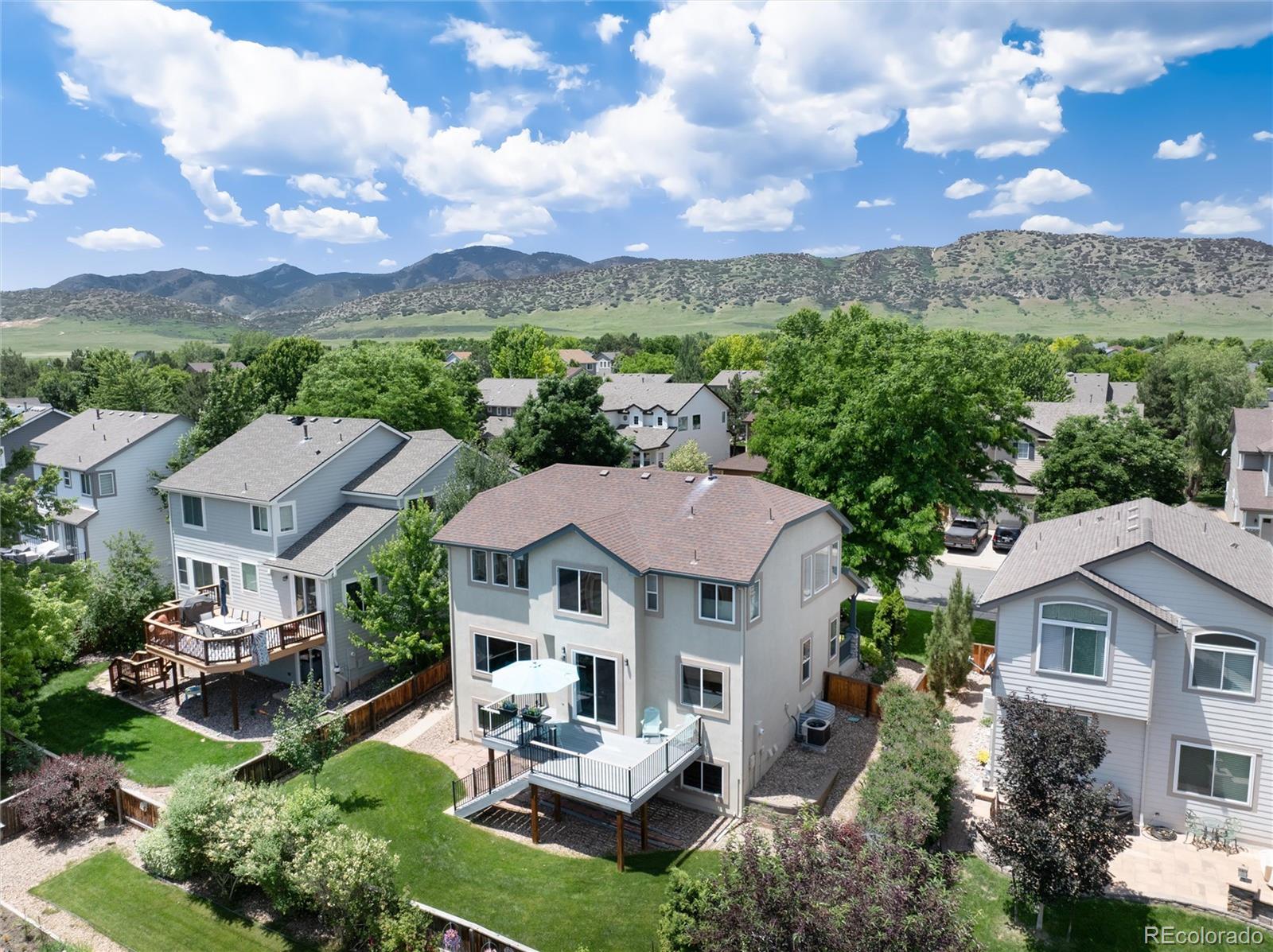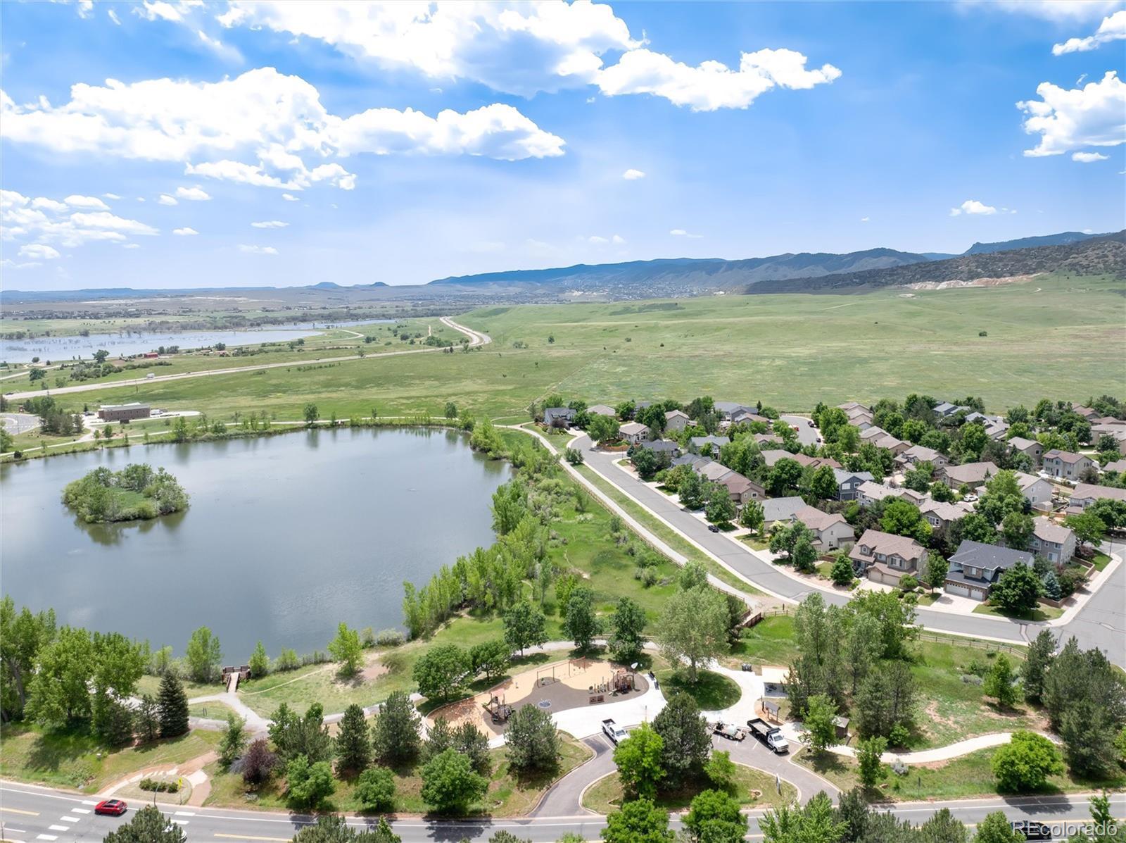 Beautifully updated home in an exceptional location, just a block from the pond and ideally positioned along a scenic view corridor. Soaring 2-story ceilings and expansive picture windows flood the home with natural light while showcasing Colorado’s iconic blue skies. The main floor features new LVP flooring throughout, and a private study or easy conversion to main floor bedroom —adjacent to a full bathroom creating an excellent option for main-level living with no stairs required. The kitchen and baths have been tastefully updated with a modern aesthetic, featuring granite counters in the kitchen and quartz in the secondary baths. Other recent high-quality upgrades include new paint, new high-efficiency furnace & A/C, Pella sliding glass door, new windows, and an expanded Trex deck perfect for seasonal cooking & dining. The spacious upstairs landing has open sightlines overlooking living and family rooms below and nearly 360-degree panoramic views through the second story picture windows. Also on the upper level are 3 additional bedrooms, including the spacious primary suite with double doors and a large five-piece bath, 2 secondary bedrooms and a Jack-and-Jill bathroom. The bright, open garden-level basement offers nearly 1,200 sqft of unfinished space with giant windows looking out to the beautiful yard. There is roughed-in plumbing for a future bathroom, and endless potential for customization including room to add a basement door for access to the spacious backyard. This rare find affords easy walking or biking to the outdoor adventures at Chatfield Reservoir, Waterton & Deer Creek Canyons. Encircled by true open space, TrailMark residents enjoy 2 beautiful parks, an elaborate trail system, stocked fishing pond & the watchful presence of South Metro Fire Station flanking the community entry. This welcoming home offers a perfect place to live in an exceptional, exclusive community enjoying concerts, movies, parades, food trucks, and many other community events!