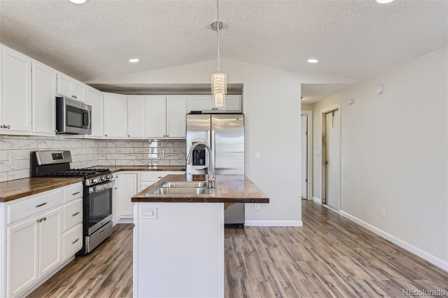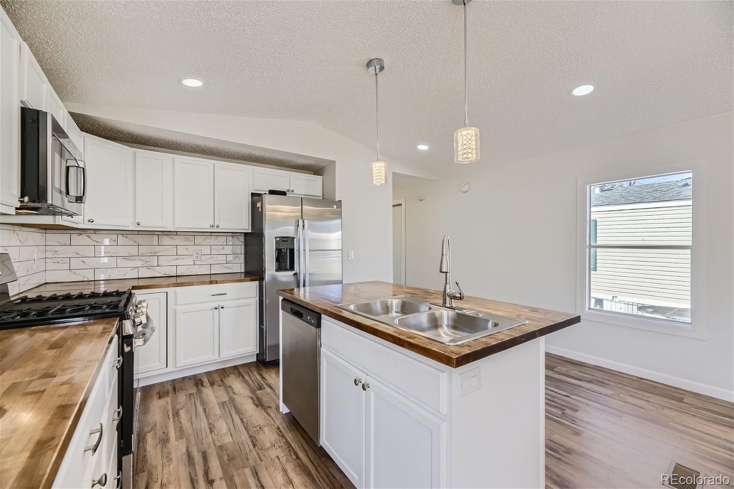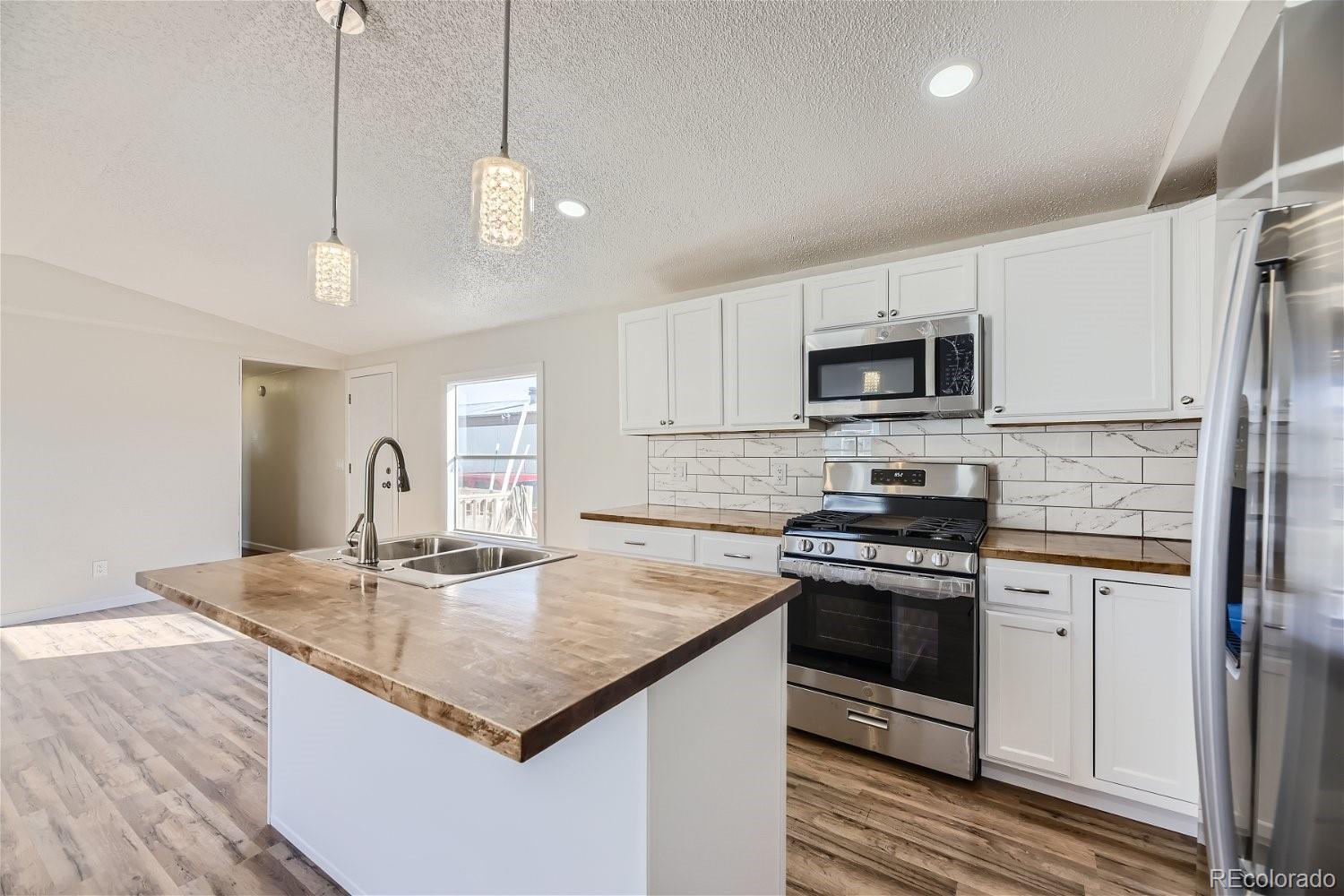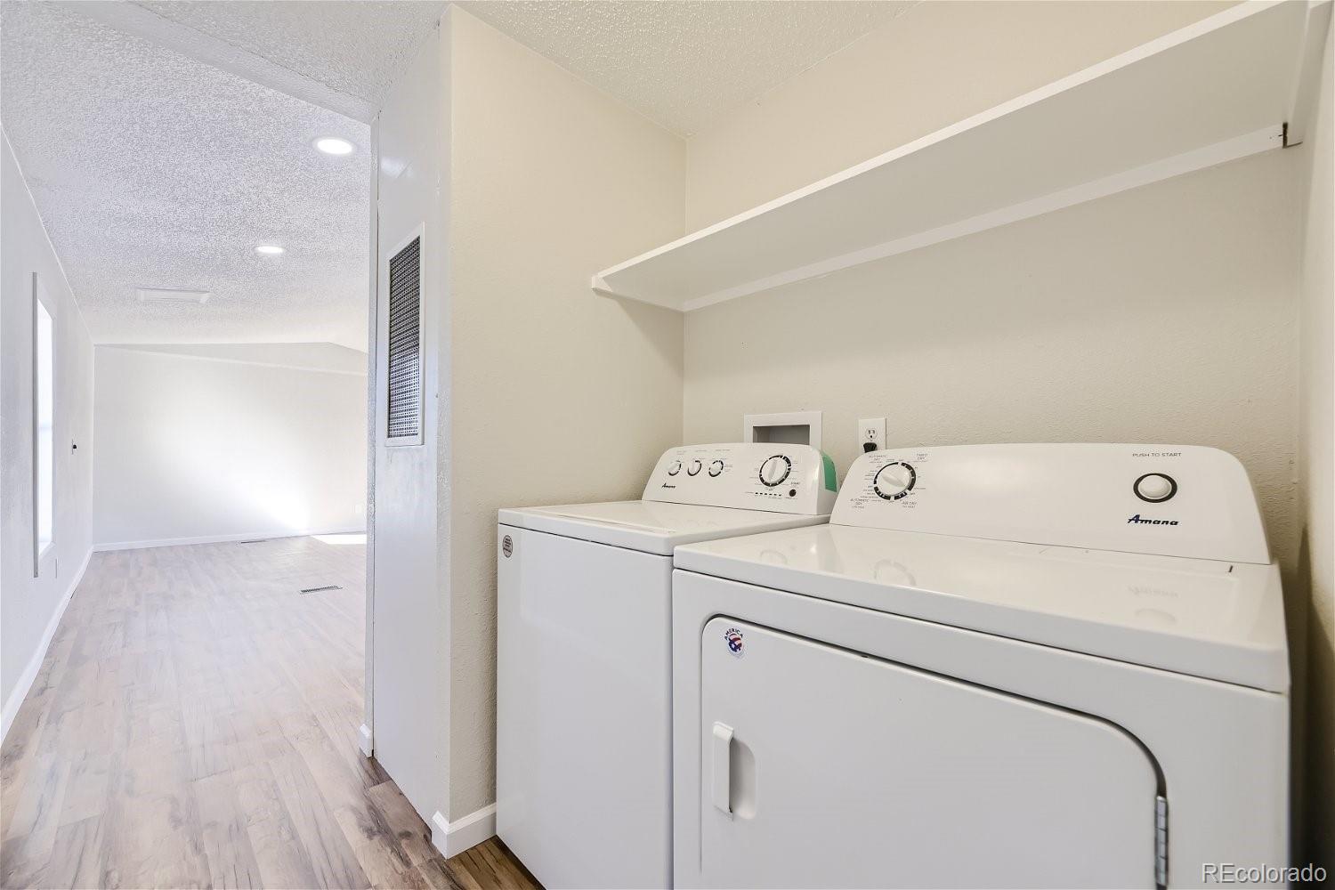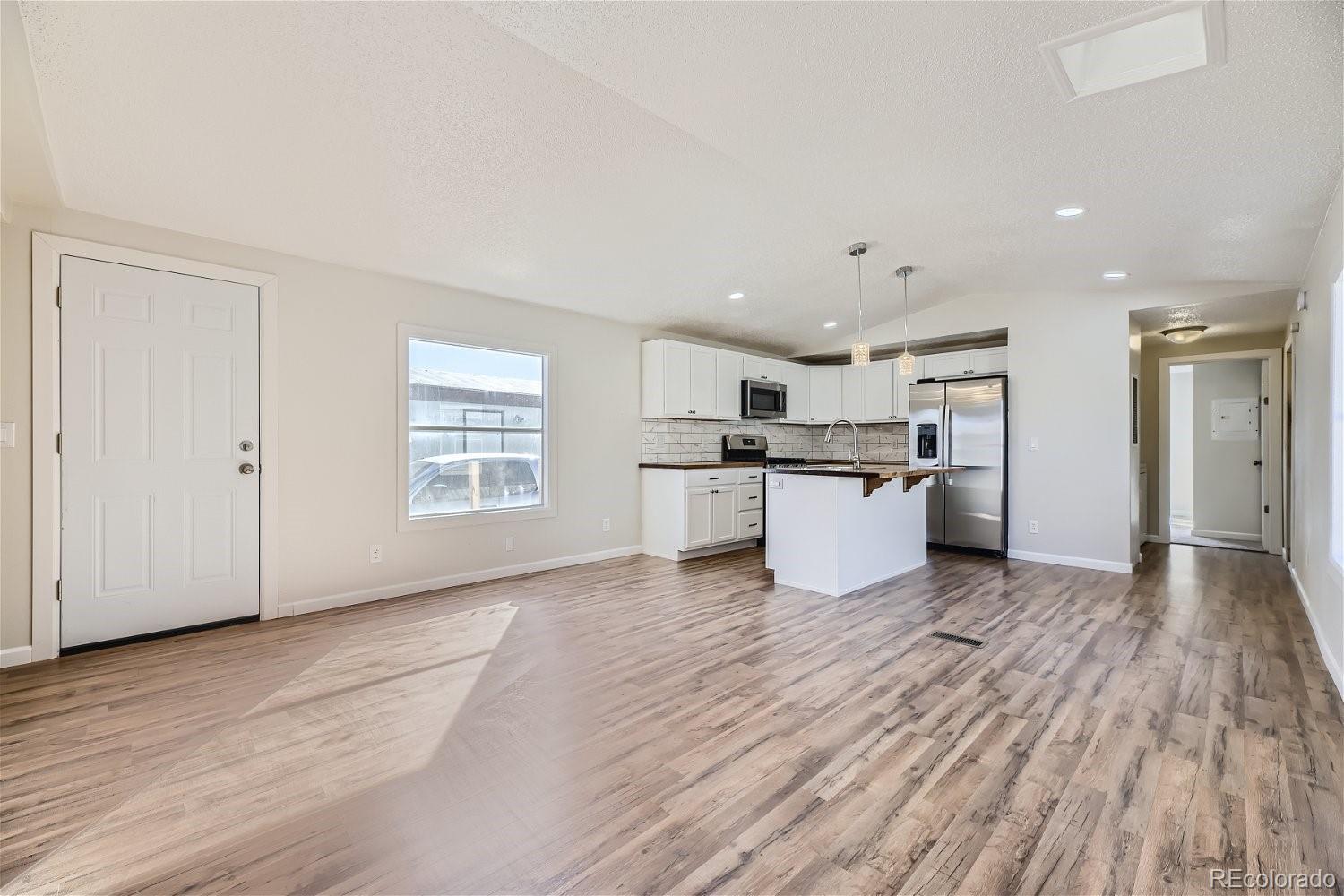 Welcome to this gorgeous fully remodeled 3-bedroom, 2-bath home located in The Meadows! Step inside to a bright open floor plan filled with natural light and modern finishes throughout. The kitchen is gorgeous with brand-new cabinetry, countertops, tiled backsplash, and stainless-steel appliances—perfect for cooking and entertaining. Enjoy new vinyl flooring throughout the kitchen, living, and laundry areas, along with new carpet in all bedrooms for comfort. Both bathrooms have been completely remodeled, featuring stylish tile floors, contemporary vanities, new fixtures, and beautifully tiled walk-in showers with decorative accents. Additional upgrades include new light fixtures, fresh interior and exterior paint> The laundry area has a shelf above for added convenience. Enjoy your outdoor space, great for relaxing or gardening, plus two off-street parking spaces. Community amenities include a clubhouse, swimming pool, and playground. Conveniently located just minutes from the Colfax Light Rail Station, Stanley Marketplace, Town Center of Aurora, UCHealth, Children’s Hospital, the VA Medical Center, and the Rocky Mountain Arsenal National Wildlife Refuge. Enjoy easy access to Downtown Denver and DIA, making this home the perfect blend of comfort, style, and convenience.