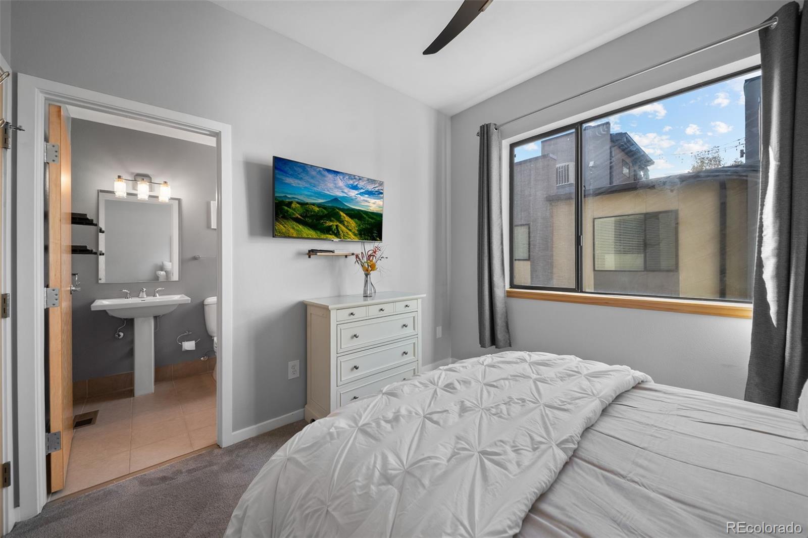 MOTIVATED SELLER! Urban Chic, Elevated Luxury: Your Rooftop Sanctuary with downtown views Discover the pinnacle of metropolitan living in this stunning Modern Townhome, perfectly positioned in Denver's most sought-after RiNo neighborhood. This is a retreat for the discerning urbanite. Sophisticated Design & Seamless Entertaining The main-floor flex space is ideal for a dedicated home office or private gym, with seamless access to your attached oversized private garage. You will love the convenience and privacy of the small fenced private front yard. The sun-drenched main level defines refined entertaining. The living area is anchored by a contemporary gas fireplace and framed by rich real oak wood flooring, extending gracefully onto a secluded balcony. The chef-inspired kitchen features high-end stainless steel appliances, a professional gas range, abundant granite countertops, and bespoke cabinetry, and a breakfast bar—ensuring both style and utility for large gatherings. Private Retreats and Panoramic Views The spacious Primary Suite boasts soaring volume ceilings and a large window. The spa-inspired ensuite bathroom offers a luxurious escape with dual vanities, an elevated tile-surround shower, and a walk-in closet. A generous Guest Suite includes its own private full bathroom. The true luxury is the magnificent rooftop deck. Offering expansive, unobstructed city views, this private outdoor oasis transitions effortlessly from day to night. Enjoy a serene morning coffee or conclude your day with alfresco dining against the iconic Denver skyline. This townhome offers unparalleled walkability, placing the light rail, acclaimed restaurants, bars, and entertainment just steps from your front door. Experience the very best of urban luxury living. Note: Currently a 2-bedroom with double en-suites - wall to enclose the flex-space into a 3rd bedroom (see attached quote) Can be installed prior to closing with an acceptable offer or one year of HOA!