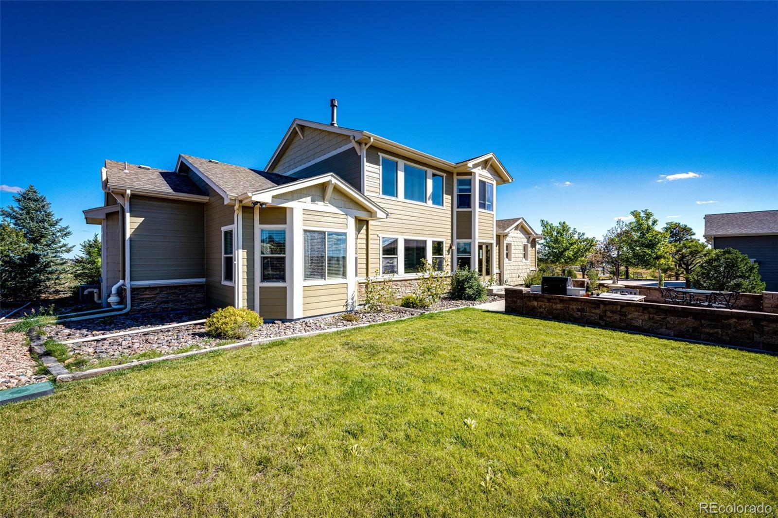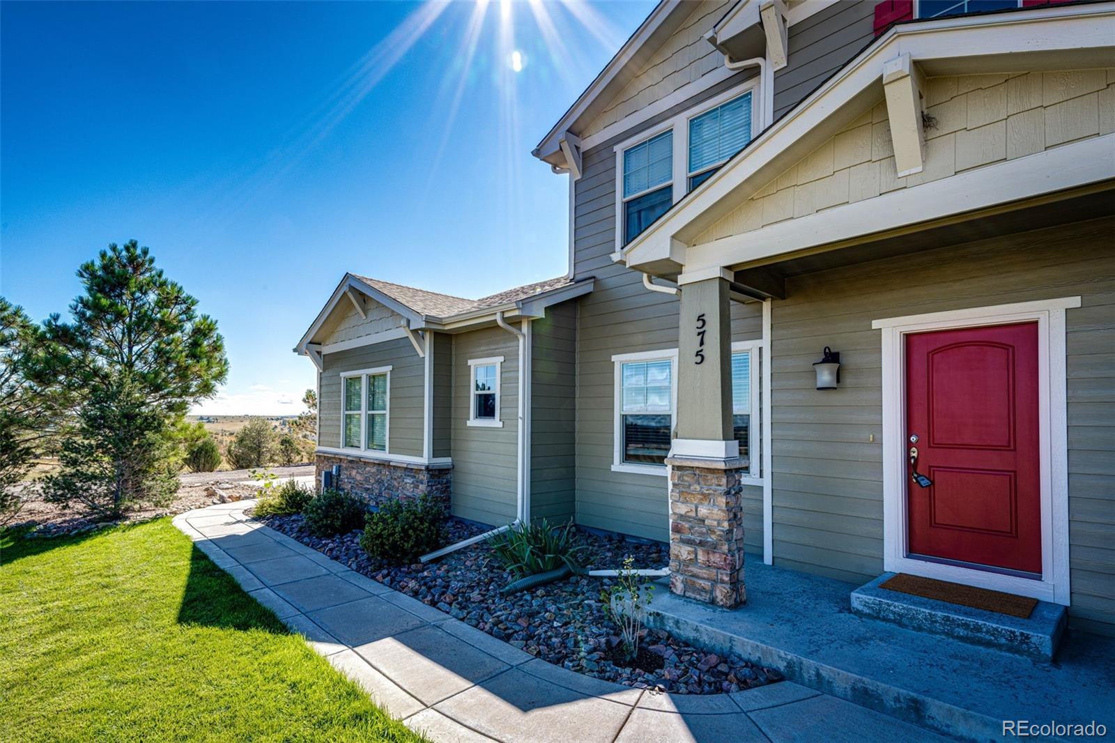 Set on more than five acres of pristine Colorado landscape, 575 Heritage Trail delivers a luxury acreage lifestyle framed by rolling meadows, dramatic cliffs, and endless vistas in the prestigious Wild Pointe Ranch community. This rare setting offers direct access to miles of walking paths and equestrian trails, inviting you to explore the surrounding beauty on foot or horseback while enjoying the peace, privacy, and natural grandeur that define this neighborhood. The home blends refined finishes with warm, modern comfort, featuring sun-filled spaces, soaring ceilings, rich hardwood floors, and a gourmet kitchen with granite surfaces, premium cabinetry, and an oversized island designed for entertaining. The primary suite is a private retreat with spa-level amenities and serene views, while the finished basement expands the home’s versatility with room for recreation, fitness, media, or multi-generational living. A crown jewel of the property is the extraordinary 2,160 square foot workshop designed for RV, boat, and collector storage, offering upgraded dual-phase power, full drywall, heat, water, and an oversized 12.5 by 15.5 foot door that easily accommodates large vehicles, equipment, and professional-grade hobbies. Outdoors, the expansive acreage provides room for animals, gardens, toys, and future enhancements, all framed by breathtaking sunsets that spill across distant ridge lines and open terrain. The covered patio is perfect for evening relaxation or sophisticated gatherings, creating a seamless connection between indoor comfort and the surrounding natural splendor. With luxury finishes, unmatched utility, and a setting that feels like a private sanctuary yet remains minutes from Parker, Castle Rock, and the conveniences of town, this property stands as one of the finest offerings in the Elizabeth area and an exceptional opportunity for buyers seeking elevated living with extraordinary space and scenery.