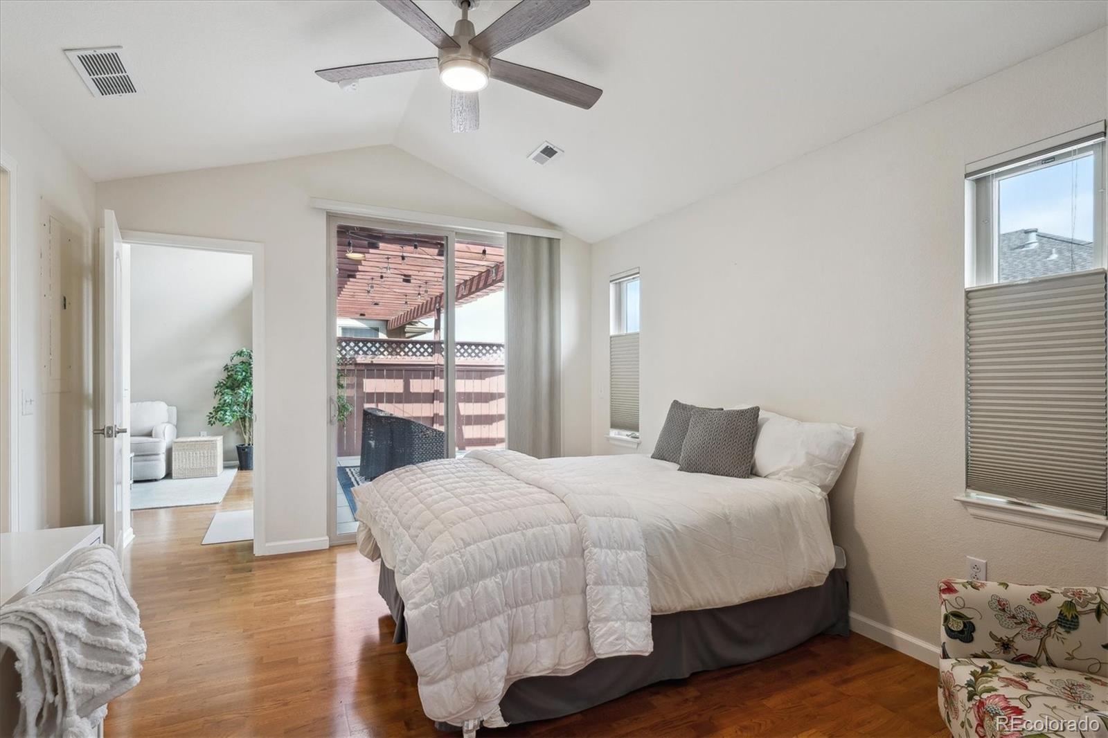 Sought after Palomino Park home. Resort style living in a gated community. $5,000 seller paid closing cost credit, rate buy down or pre pay HOA dues. Large Primary suite with custom built in closets, in addition to the large walk-in closet located off the primary bathroom. Three tall patio doors give access to the home’s roof top deck. Large, bright living room with vaulted ceilings. Open floor plan kitchen with pantry, granite counter and S/S appliances, large dining room with vaulted ceilings. Second bedroom with full bathroom adjacent, Bonus room could be a non-conforming 3rd bedroom, hobby room or gym. Laundry closet. 2.5 car oversize garage with 10' ceiling and an area for a 11’x 5’ workshop. Additional storage room under stairs. Community amenities abound with resort style pool and spa, tennis courts, jogging trail, soccer and baseball fields, and volleyball courts. No need for a gym membership with Ironhorse Health Club: indoor sport courts, basketball courts, free and machine weights, cardio, fitness classes, steam rooms and more. Gold Peak residents also enjoy private access to a resident only pool and clubhouse. In addition, residents have access to four Highlands Ranch Community Rec Centers!