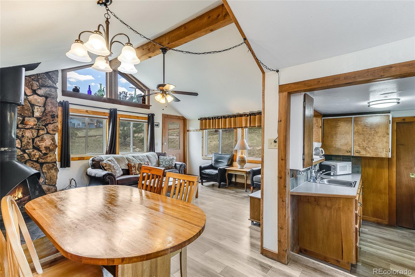 Charming 2 bedroom, 2 bath on 2 levels cabin in the woods! Exterior freshly painted this year. Main level living available with large upstairs bedroom with ensuite bathroom with 2 decks to enjoy the spectacular views. All furnishings are included in this adorable cabin. Cozy fireplace for you and your guests to cuddle up to while enjoying the wildlife all around. You will love this location, only a couple of miles from the YMCA of the Rockies and you can walk directly into Rocky Mountain National Park on marked trails and less than 2 miles from the Beaver Meadows entrance. Plenty of hiking and rock climbing in close proximity. This property sits on a large lot (which you will own) and plenty of wildlife wondering through for you and your guests to enjoy. This property is a must see for anyone interested in short term rentals in the area. New washer and dryer connections in the main level bathroom. Buyer or buyer's agent to confirm house and room measurements. No STR license so you will need to check with Larimer County if you are considering short term rentals. The property is not located inside the City of Estes Park so you will only need to apply through Larimer County. Danette Barrett is a Colorado licensed real estate broker and also a principal of Seller.