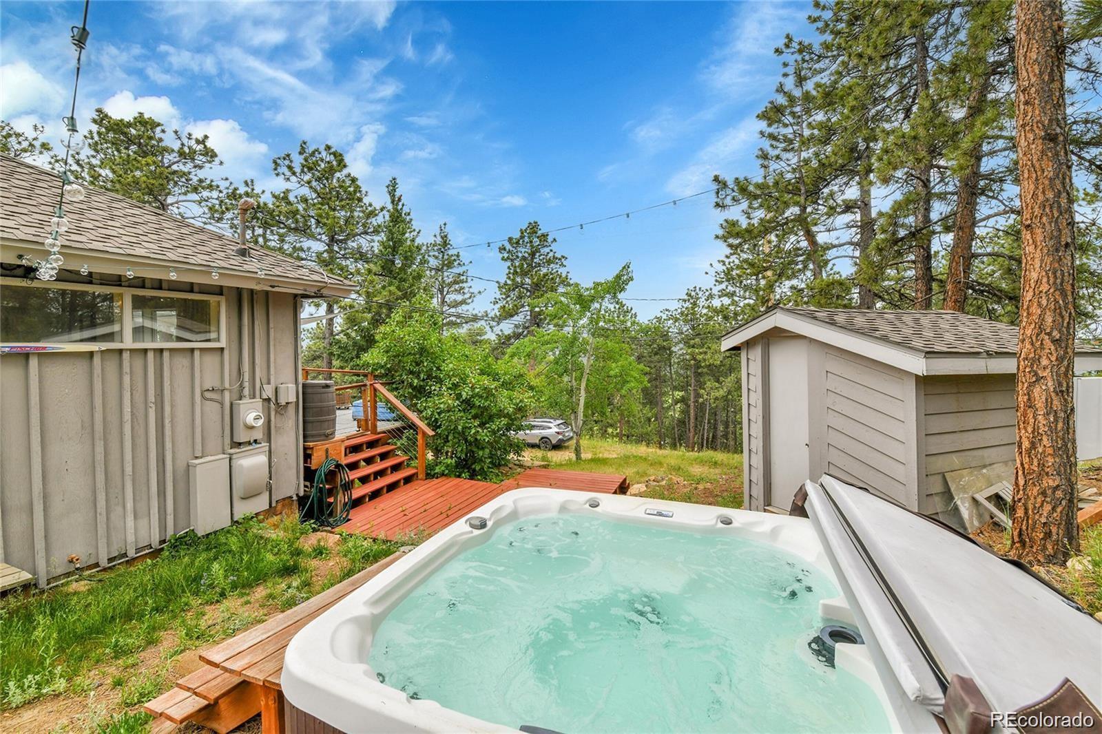 Sky Haven is a one-of-a-kind mountain retreat atop more than an acre in historic Mount Vernon Country Club. Moments from I-70, 10 minutes to Target, 10 Minutes to Evergreen the location can't be beat. With some recent updates to the kitchen and interior paint, this 1922-built home blends timeless character with endless potential — the perfect opportunity to put your own stamp on it. The main house (2,522 sq ft) features an open main floor with vaulted ceilings, abundant dining space, and breathtaking views from every window. Three generously sized bedrooms and two remodeled bathrooms provide comfort and function. A fully contained guest cabin/office (892 sq ft) offers incredible flexibility with its own bedroom, kitchenette, and ¾ bath. A detached 3-car garage provides plenty of room for vehicles, gear, or a workshop. Outdoor living is equally inviting with a large covered pavilion and historic stone fireplace/stove — perfect for Colorado evenings under the stars — plus a welcoming front deck. Residents enjoy more than 1,000 acres of private open space, trails for hiking and riding, and a community horse facility with barns and pasture, plus direct access to Apex Park. Mount Vernon Country Club membership offers dining, pool, tennis (hard, hydro clay, paddle), pickleball, wellness center, and community gardens. A $78/month Social Membership is required, and the Metro District fee of $418/month covers water, trash, and more. Sky Haven is more than a home — it’s a lifestyle, now ready for your vision.