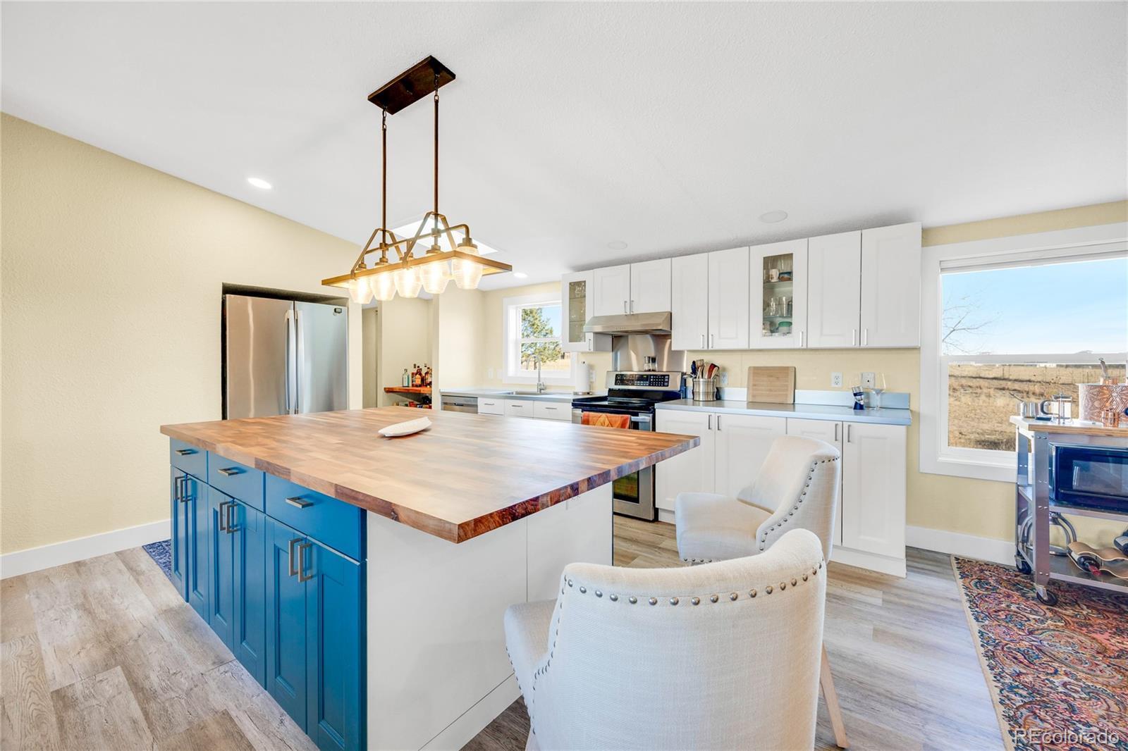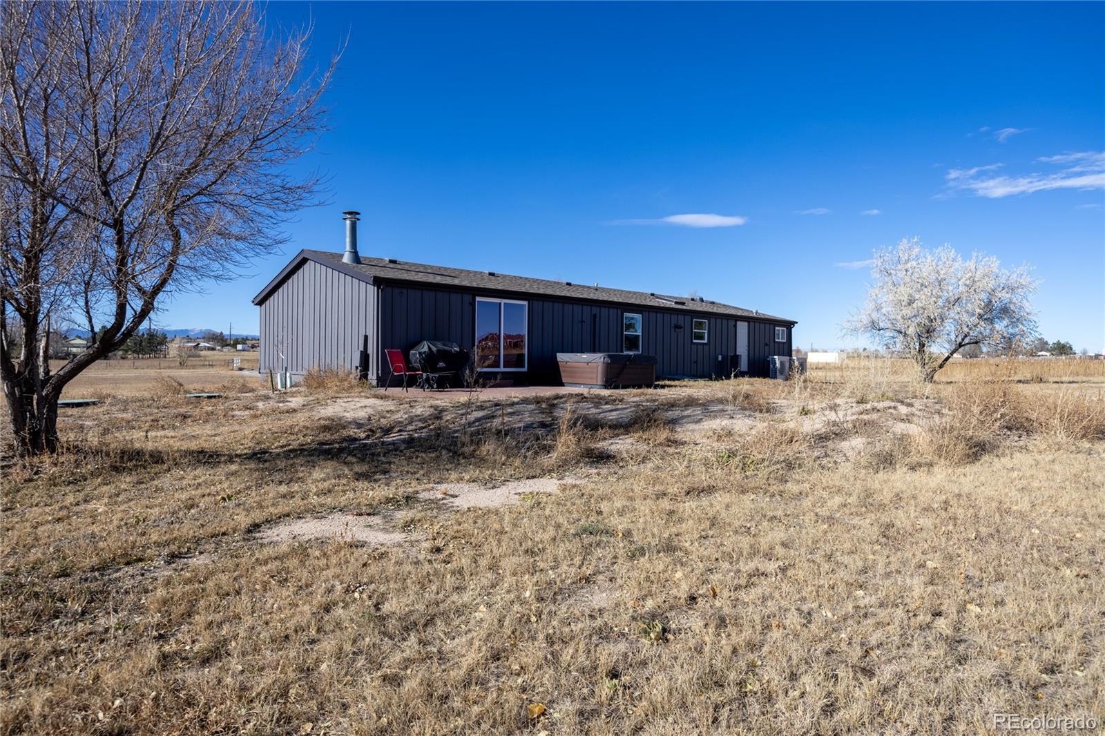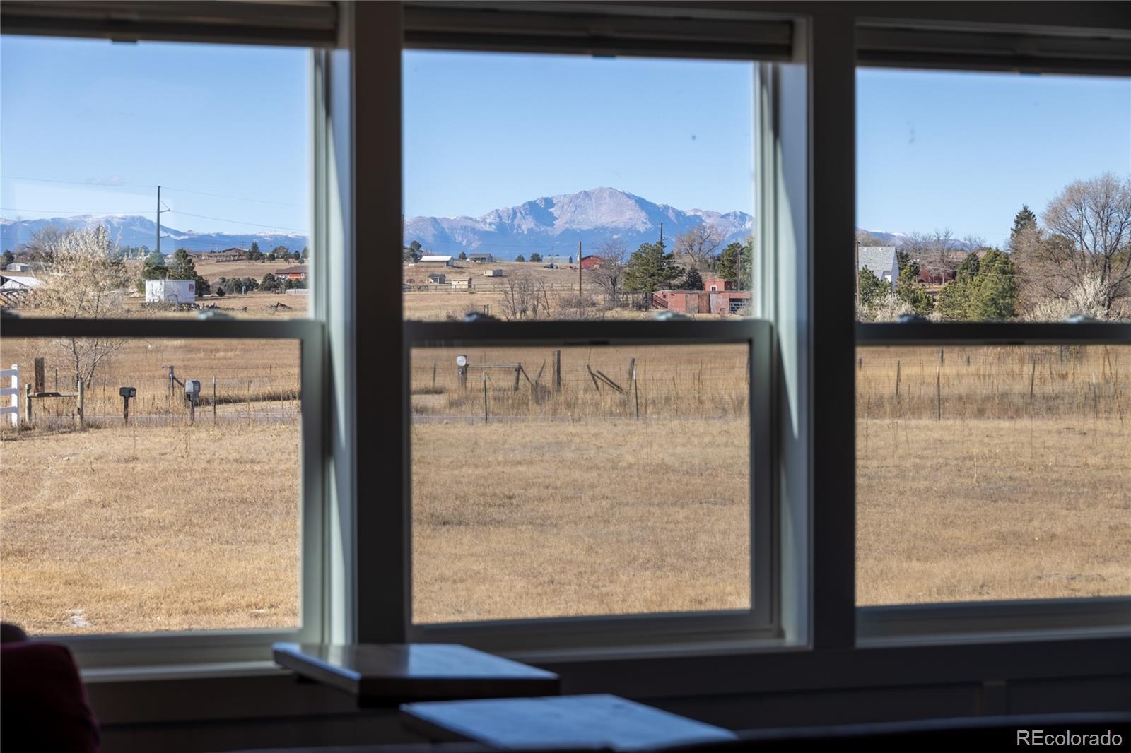 A beautifully updated ranch-style home situated on 5 pristine acres in Peyton—offering the perfect blend of privacy, comfort, and Colorado rural living. Zoned for horses and fully equipped with high-speed fiber-optic internet, solar wiring, and a three-car detached garage, this property is ideal for those seeking both freedom and modern convenience. Step inside to an inviting open floor plan featuring abundant natural light and wide-open views from every window. The spacious living room flows seamlessly into a fully updated kitchen with striking cabinetry, a butcher-block island, modern pendant lighting, and stainless-steel appliances. Perfect for entertaining or relaxing with family. The luxurious primary suite is a true retreat— a beautiful walk-in closet with sliding barn doors, and a spa-style bathroom featuring heated floors, dual modern vessel sinks, and an LED-lit vanity mirror. Outside, enjoy unobstructed views of Pikes Peak, peaceful surroundings, and room to roam. Whether you're looking to bring animals, start a homestead, or enjoy wide-open space, this property offers endless possibilities. All of this is just minutes from Falcon, shopping, dining, and an easy commute to Colorado Springs.