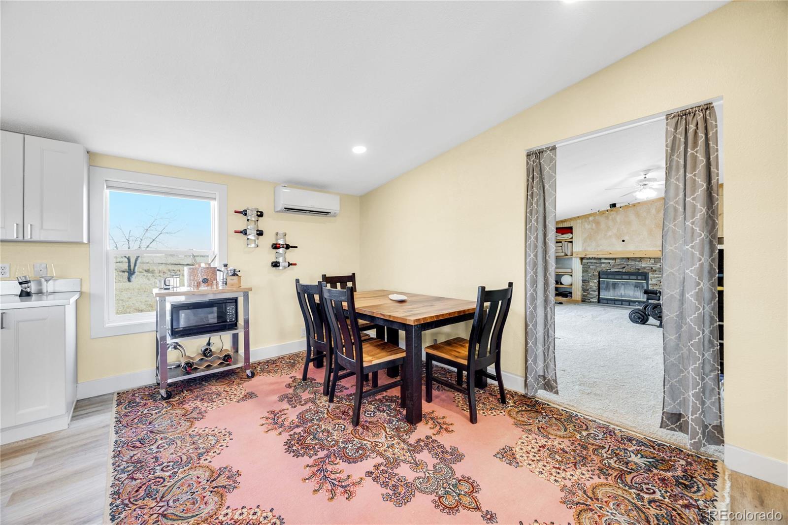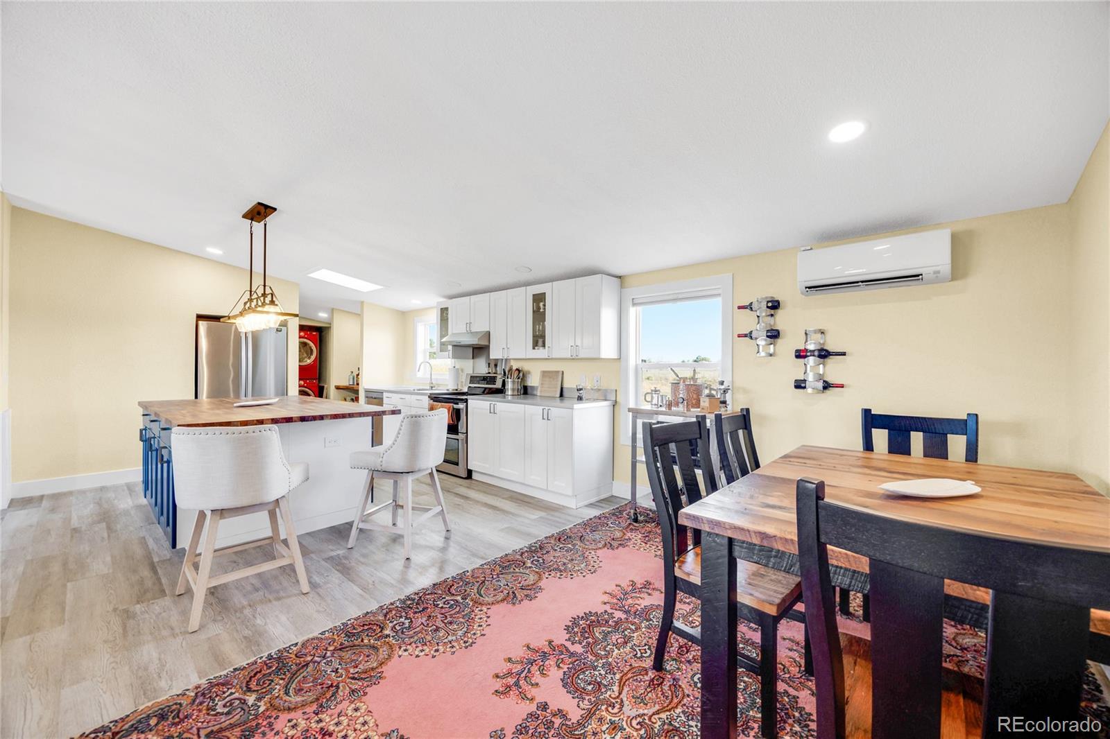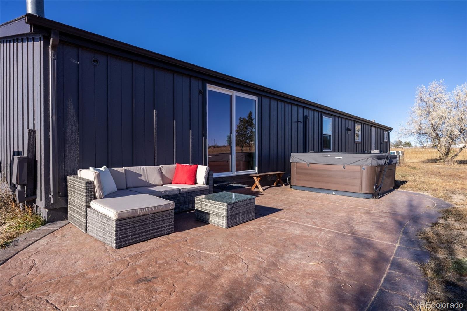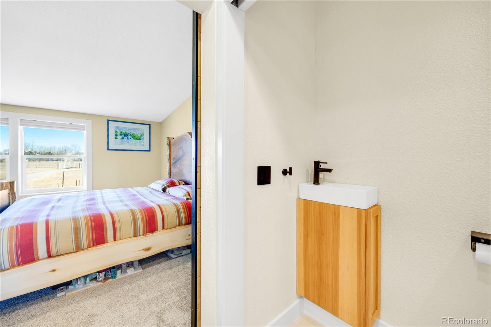 A beautifully updated ranch-style home situated on 5 pristine acres in Peyton—offering the perfect blend of privacy, comfort, and Colorado rural living. Zoned for horses and fully equipped with high-speed fiber-optic internet, solar wiring, and a three-car detached garage, this property is ideal for those seeking both freedom and modern convenience. Step inside to an inviting open floor plan featuring abundant natural light and wide-open views from every window. The spacious living room flows seamlessly into a fully updated kitchen with striking cabinetry, a butcher-block island, modern pendant lighting, and stainless-steel appliances. Perfect for entertaining or relaxing with family. The luxurious primary suite is a true retreat— a beautiful walk-in closet with sliding barn doors, and a spa-style bathroom featuring heated floors, dual modern vessel sinks, and an LED-lit vanity mirror. Outside, enjoy unobstructed views of Pikes Peak, peaceful surroundings, and room to roam. Whether you're looking to bring animals, start a homestead, or enjoy wide-open space, this property offers endless possibilities. All of this is just minutes from Falcon, shopping, dining, and an easy commute to Colorado Springs.