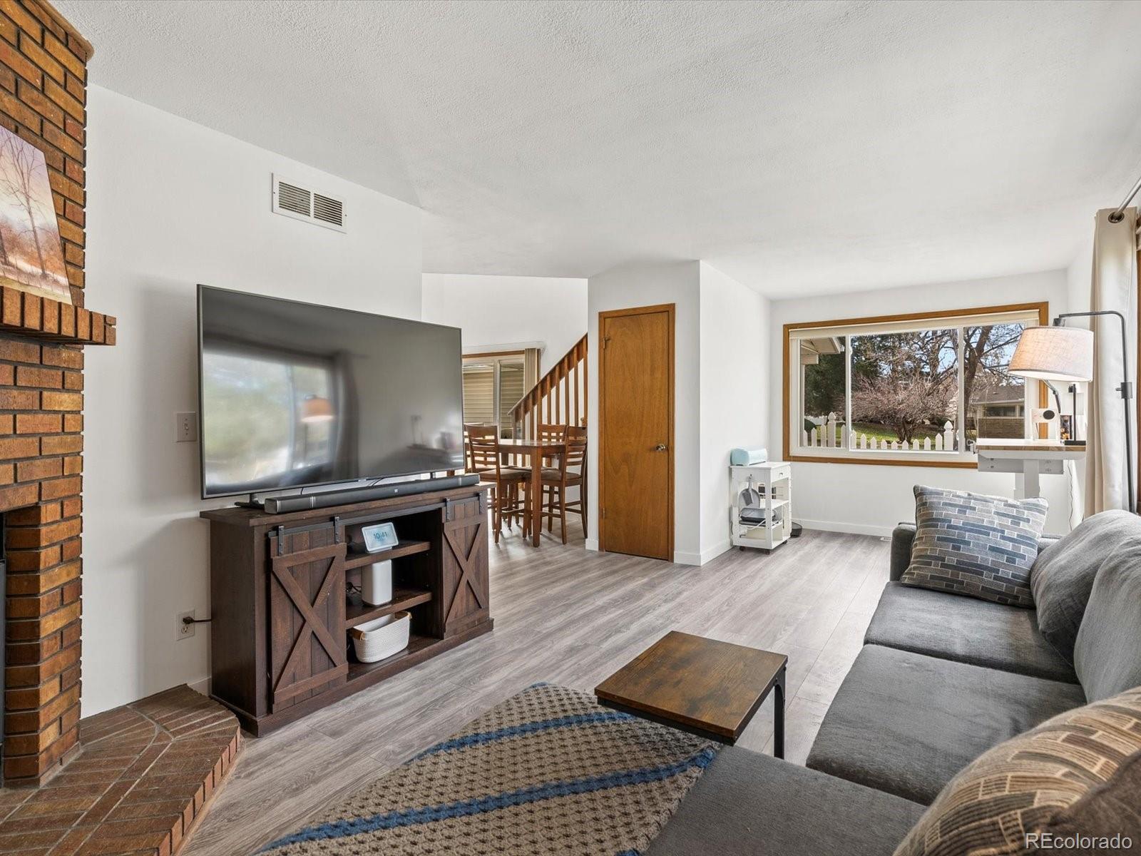 Welcome to this beautifully maintained Brighton townhome offering comfort, flexibility, and style throughout. The large open kitchen provides the perfect gathering space for cooking, dining, and entertaining with a cozy eat-in nook and newer appliances, including a fridge, sink, and dishwasher. The main floor is designed for everyday convenience, featuring a half bath and a laundry room just off the kitchen. Toward the back of the home, the spacious living room invites relaxation with its gas fireplace and serene views of the lush greenspace—perfect for quiet evenings or hosting guests. A private main floor office with double glass doors offers a peaceful workspace, playroom, or creative studio. Upstairs, the primary suite provides a comfortable retreat with its own private bathroom, while two secondary bedrooms share a full bath—ideal for family, guests, or a hobby room. The open stairwell, accented by vaulted ceilings and skylights, fills the upper level with natural light and a sense of openness. Recent upgrades ensure peace of mind, including a 2023 water heater, 2022 A/C, 2018 windows, roof, and skylights, 2025 new interior paint, baseboards, vinyl plank floors and a 2022 patio fence. Outside, enjoy your own private yard with a covered patio—a wonderful spot for morning coffee, gardening, or outdoor play. An attached two-car garage provides additional storage and convenience. Located close to shopping, I-76, grocery stores, schools, and parks, this townhome blends modern updates, versatile spaces, and a welcoming community setting.