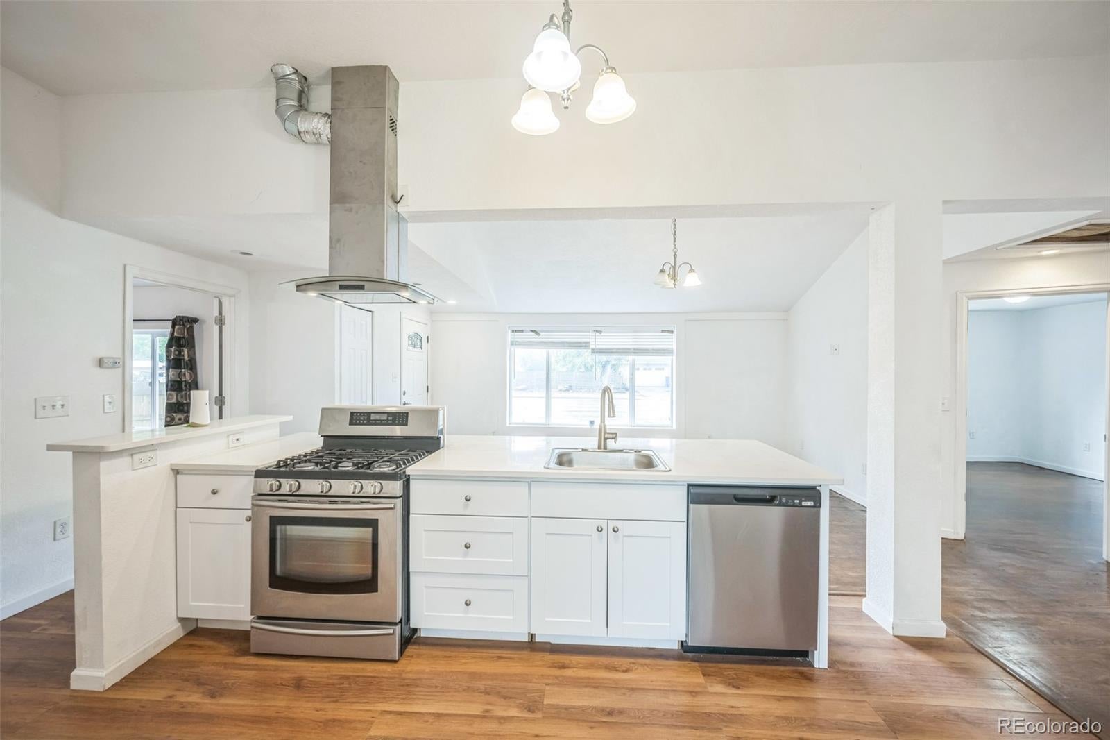 Welcome to this beautifully remodeled ranch-style home in the heart of Wheat Ridge! Built in 1950, this charming 3-bedroom, 1.5-bath residence spans 1,012 sqft on a generous 0.22-acre lot. The seamless open floor plan connects the living room, dining area, and kitchen. The light and airy kitchen features new stainless-steel appliances, a striking kitchen island, and modern, sleek finishes. Home has forced-air heating complemented by central air conditioning; HVAC systems recently updated. No-stairs layout makes it perfect for accessible living. Exterior & Lot Features: Expansive fully fenced lot with zoning that supports converting an in-law suite — ideal for multigenerational living or added rental income. Parking for up to 4 cars off-street—ample space for vehicles, trailers, or recreational toys. Exterior built with durable frame construction and a composition roof for reliable low-maintenance upkeep. Prime Location Perks: Situated in the Reed Street subdivision near Old Town Wheat Ridge, the home enjoys a quiet, tree-lined neighborhood atmosphere A highly walkable locale with easy access to parks, grocery shopping, local eateries, and services. Quick access to downtown Denver and I-70, making daily commuting or weekend escapes to the mountains convenient. No HOA — enjoy complete autonomy of your property. Schedule your private tour today! Discover what makes 7010 W 44th Ave a move-in ready home full of potential in one of Wheat Ridge’s most sought-after neighborhoods!