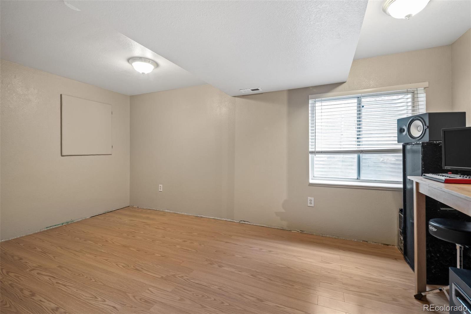 Situated on a quiet cul-de-sac in the desirable Sunset West community of Littleton, this three-bedroom, three-bath home offers a versatile layout and an outstanding location. Hardwood and tile floors highlight the main living areas, complemented by brand-new carpet and updated door hardware for a fresh, move-in-ready feel. The spacious floor plan mirrors some of the most popular homes in the neighborhood while leaving room for future personalization. The finished basement sets this home apart, featuring two sound-proof studio rooms ideal for a private office, creative studio, gaming space, or media retreat. Outside, enjoy a large, landscaped yard and mature shade trees with plenty of space for entertaining on the large concrete patio, play, or outdoor living. Just steps from shopping, dining, trails, and everyday conveniences near Southwest Plaza, this home delivers flexibility, potential, and lifestyle access in one of Littleton’s most convenient locations.