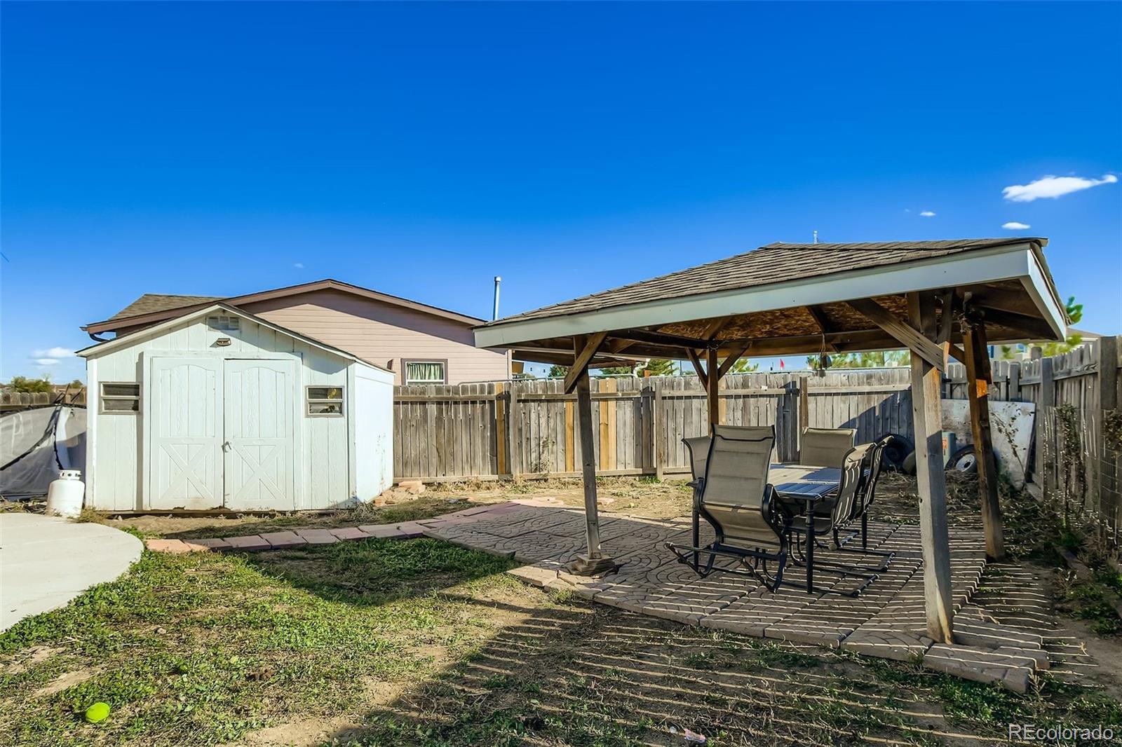 This fabulous home features almost 3000 square feet of living space with 4 bedrooms 3 full bathrooms and finished basement! This is a beautiful home with so much to offer!!! Real hardwood floors welcome you the minute you walk in the door! 10' coffered ceilings on the main floor as well as built in shelf space to display all your favorite things! The primary suite has a deep walk in closet, bonus area/sitting nook and a large 5 piece master bathroom including with jetted tub and linen closet. Enjoy the large open kitchen with breakfast bar and ample dining area. Laundry is also conveniently located on the main floor. A second bedroom and full bathroom complete the main floor! The full finished basement with 2 additional bedrooms, full bathroom and large family room makes great space for additional living space or work out area! The large concrete back patio and Gazebo make this an ideal space for outdoor entertaining! New roof and exterior repairs to the trim, stone work and front porch coming soon! The expansive driveway allows for 5 additional spaces of extra parking, rv, trailers or toys! The garage is oversized deep. Low Taxes, NO HOA and NO Metro District makes this home more affordable!
