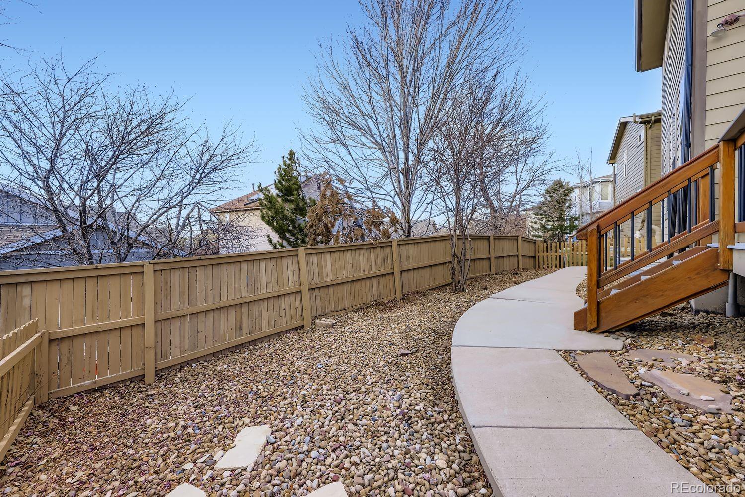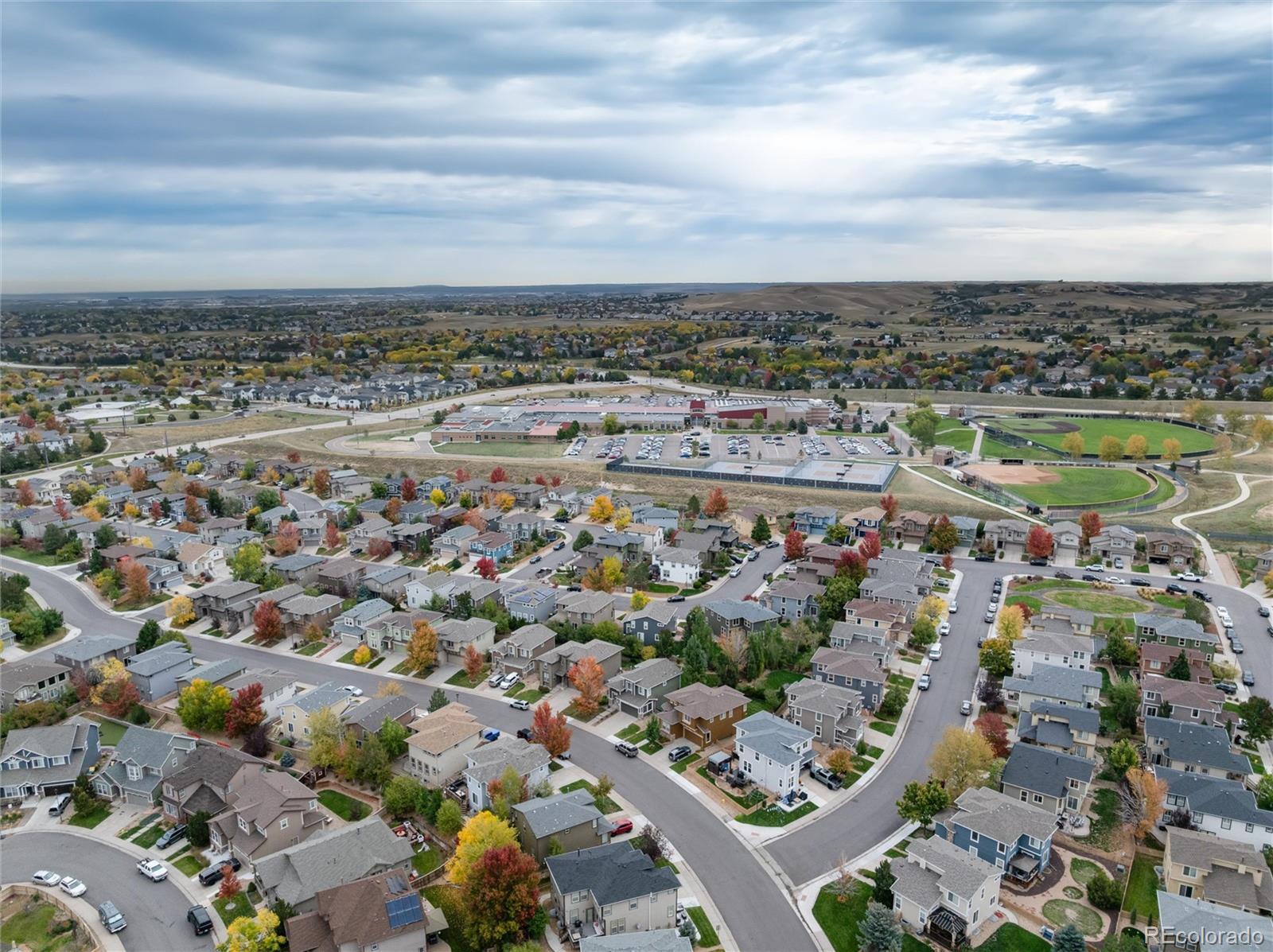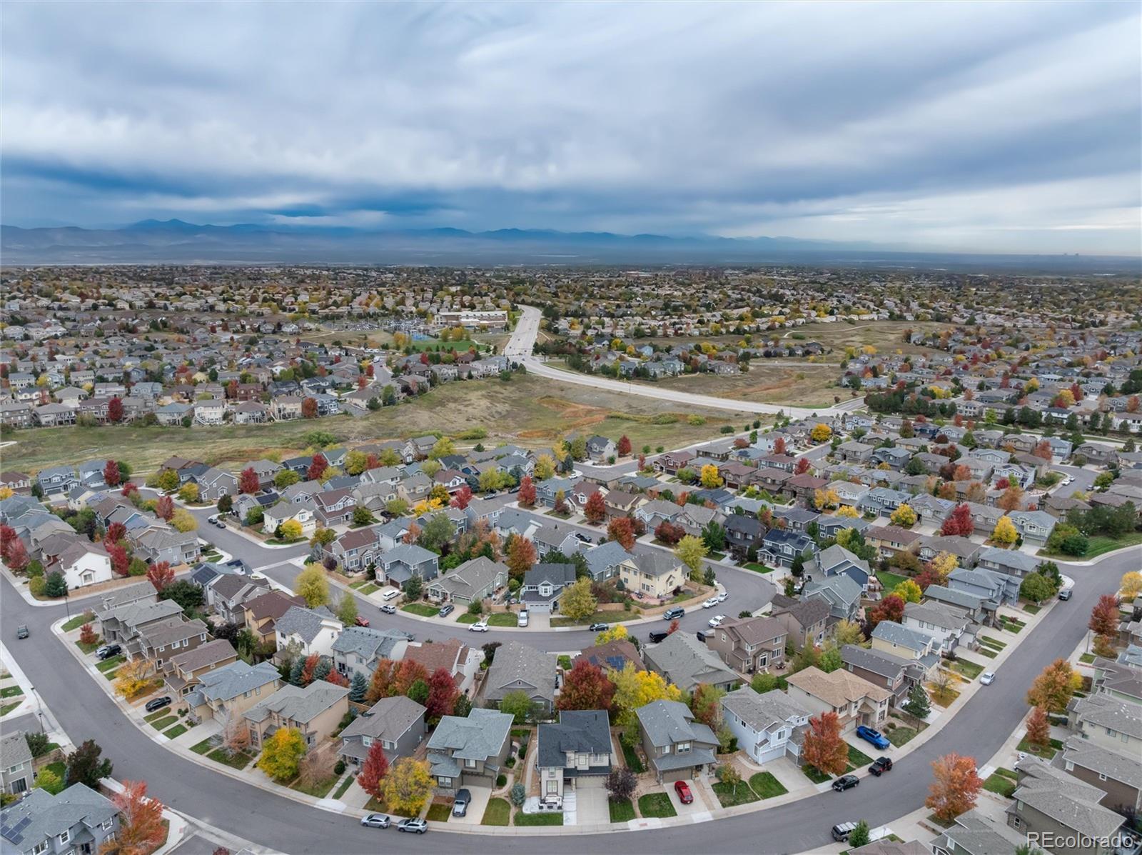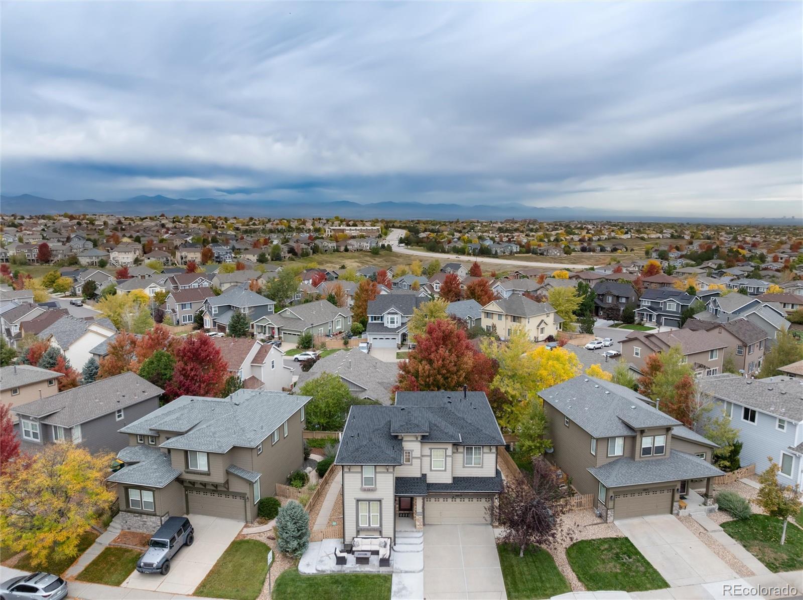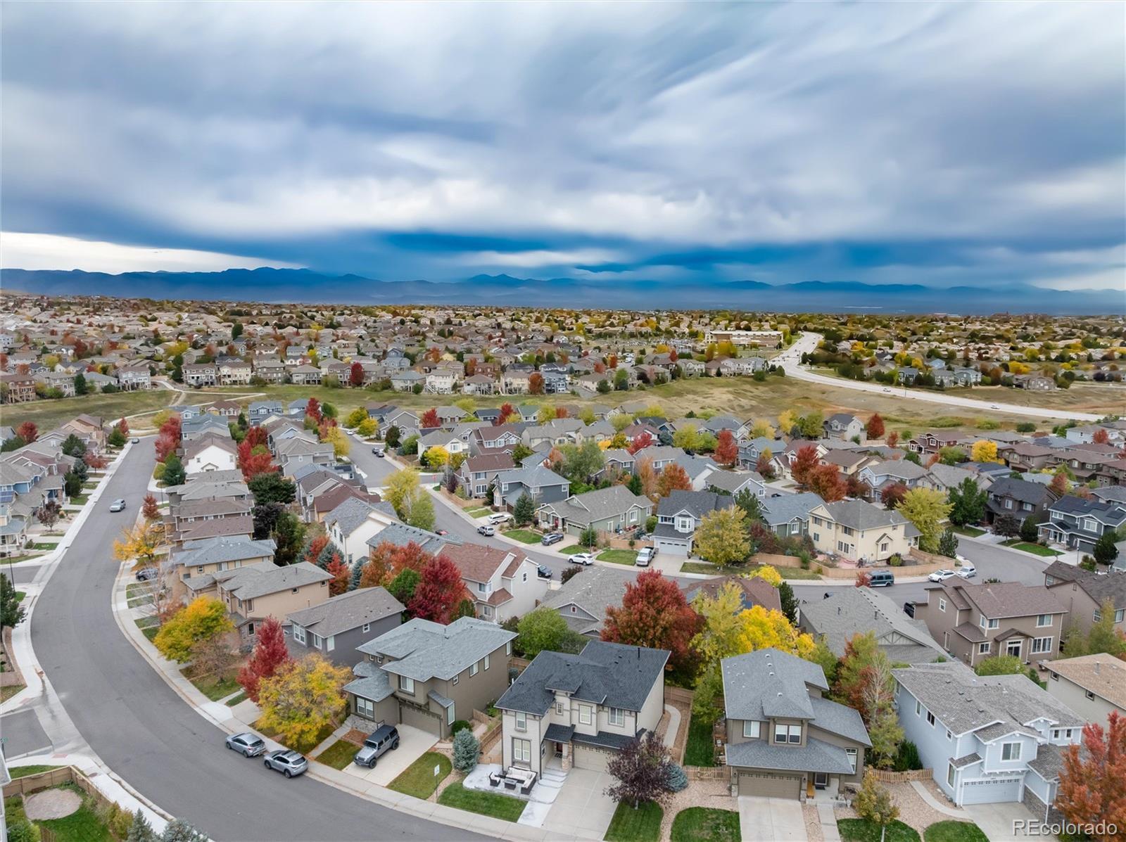 Welcome home to this beautiful 5 bedroom, 4 bath home in The Hearth. One of the highly coveted Highlands Ranch neighborhoods. This home is light and bright with many windows and gorgeous hardwood floors. The roomy kitchen, with wood cabinetry and stainless appliances has an island, eat in nook and desk area. The kitchen opens to the dining room which is perfect for hosting. The living room features lots of windows and natural light as well as vaulted ceilings and a gas fireplace, perfect for those cold snowy Colorado nights. Upstairs, you will find the primary suite with incredible mountain views, dual walk in closets and a five piece en suite bathroom with soaking tub. Three additional bedrooms, another full bath, and built in desk with cabinets complete this level. In the fully finished basement, find a family room with kitchenette/wet bar area with sink, microwave and mini fridge, along with additional bedroom, 3/4 bath and laundry room - perfect for additional living space or mother-in-law suite. In your private, low maintenance, fully fenced back yard you will enjoy a Trex deck and mature trees. Amazing location close to Southridge Recreation Center which features a pool, tennis courts and pickleball courts. Bike in/out of Backcountry biking trails, surrounded by hiking and walking trails, steps to Rock Canyon High School and Rocky Heights Middle School and close to Paintbrush Park. Highlands Ranch is one of the nation's best master planned communities where residents have access to multiple rec centers which feature fitness facilities, tennis and pickleball courts, hundreds of miles of walking and biking trails, top rated Douglas County schools, so many dining options and more!