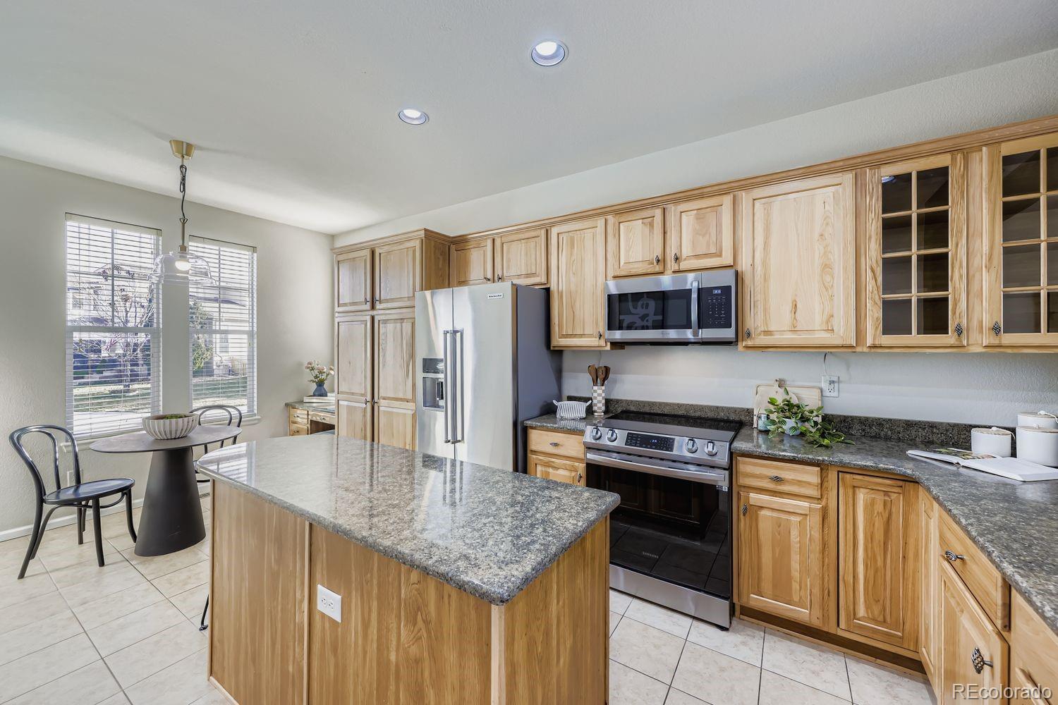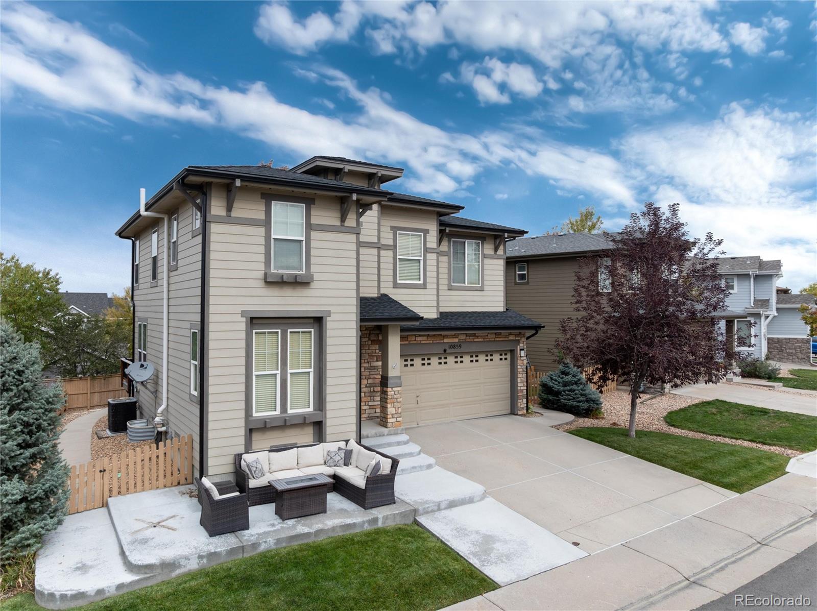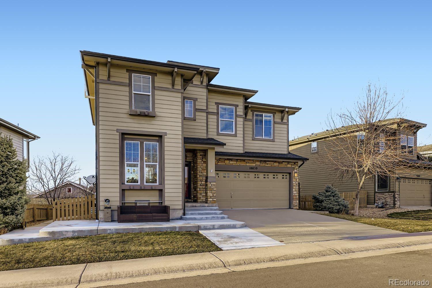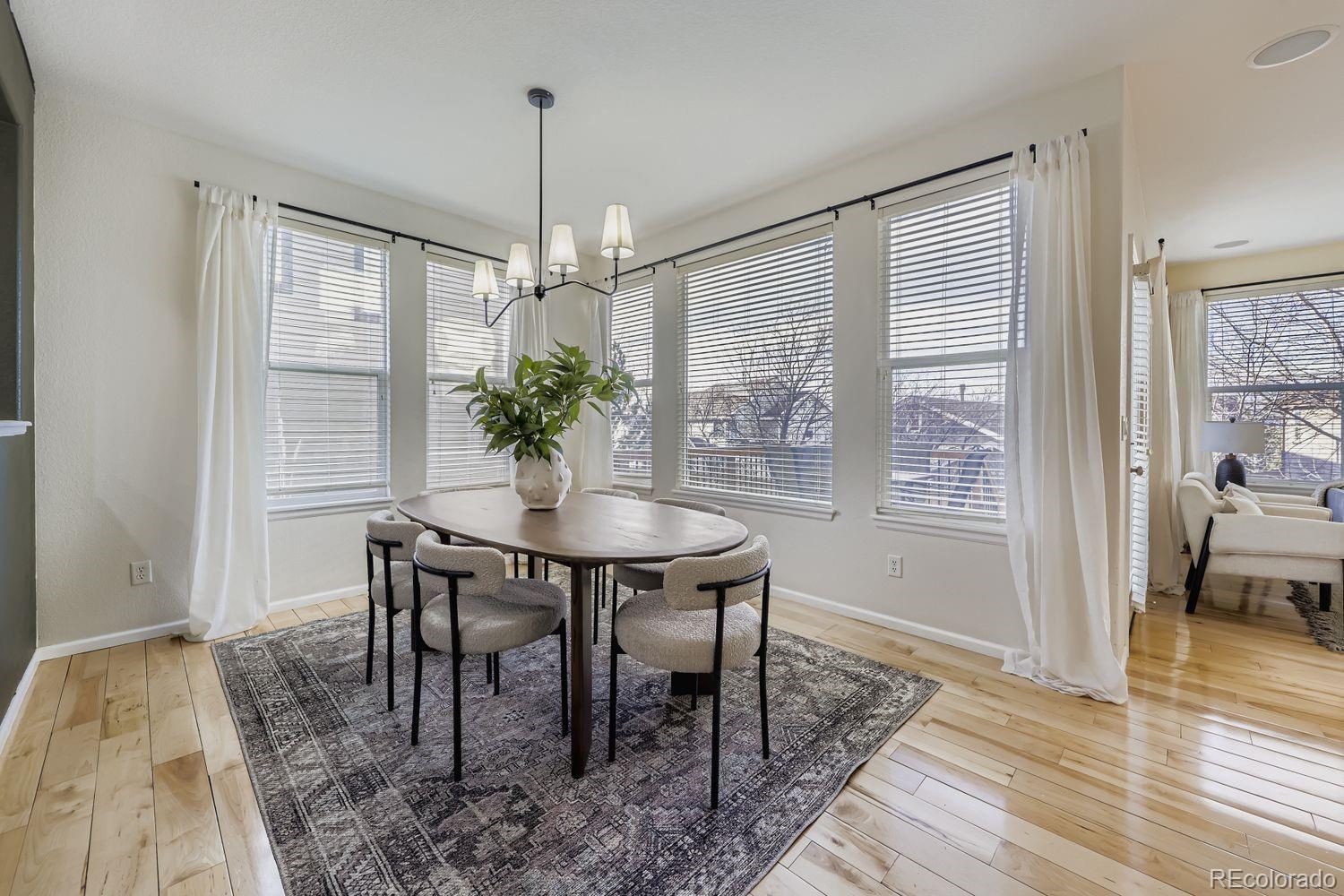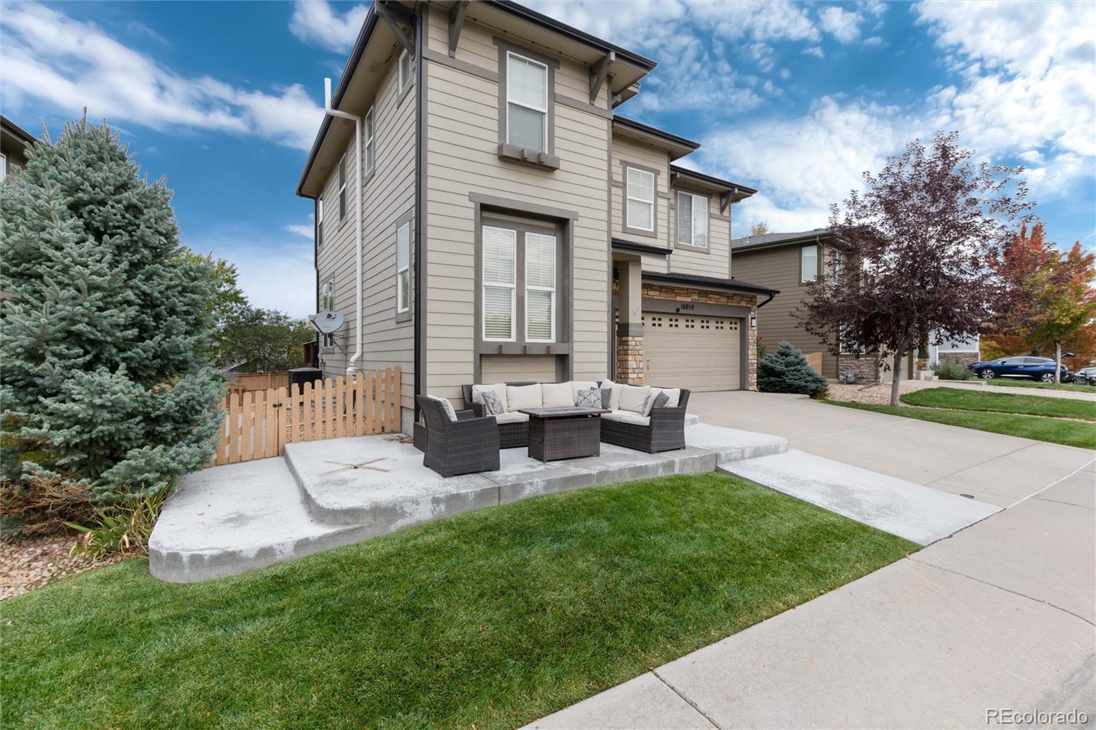 Welcome home to this beautiful 5 bedroom, 4 bath home in The Hearth. One of the highly coveted Highlands Ranch neighborhoods. This home is light and bright with many windows and gorgeous hardwood floors. The roomy kitchen, with wood cabinetry and stainless appliances has an island, eat in nook and desk area. The kitchen opens to the dining room which is perfect for hosting. The living room features lots of windows and natural light as well as vaulted ceilings and a gas fireplace, perfect for those cold snowy Colorado nights. Upstairs, you will find the primary suite with incredible mountain views, dual walk in closets and a five piece en suite bathroom with soaking tub. Three additional bedrooms, another full bath, and built in desk with cabinets complete this level. In the fully finished basement, find a family room with kitchenette/wet bar area with sink, microwave and mini fridge, along with additional bedroom, 3/4 bath and laundry room - perfect for additional living space or mother-in-law suite. In your private, low maintenance, fully fenced back yard you will enjoy a Trex deck and mature trees. Amazing location close to Southridge Recreation Center which features a pool, tennis courts and pickleball courts. Bike in/out of Backcountry biking trails, surrounded by hiking and walking trails, steps to Rock Canyon High School and Rocky Heights Middle School and close to Paintbrush Park. Highlands Ranch is one of the nation's best master planned communities where residents have access to multiple rec centers which feature fitness facilities, tennis and pickleball courts, hundreds of miles of walking and biking trails, top rated Douglas County schools, so many dining options and more!