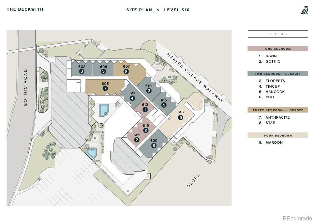 Set on the sixth floor with easy elevator access, Beckwith Residence 620 is a penthouse-level residence in The Beckwith’s Yule floor plan, offering 1,867 square feet of thoughtful design and effortless livability. This two-bedroom, three-bath home includes a lockoff suite, dedicated mudroom, and four private balconies. Inside, discover light-filled and airy interiors bathed in soft earthy neutrals, warm wood tones, and natural textures that echo the alpine meadows of Crested Butte. Whimsical design details and unexpected pops of color bring a distinctive sense of place and playful sophistication to every room. A sleek fireplace, wide-plank flooring, and oversized windows complete the airy, sun-filled living space. The gourmet kitchen includes stone countertops, a kitchen island with seating, a pantry, and high-end appliances— all framed by natural textures, warm wood tones, and mountain-modern design. A sleek electric fireplace and custom millwork details round out the space. The primary suite is a serene retreat, complete with a private balcony, millwork wardrobe, walk-in closet, and a spa-inspired en-suite bath featuring Kohler fixtures and radiant finishes. The secondary suite is configured as a lockoff suite with a private entrance, and its own balcony offering flexible hosting and additional independence. Additional features include a mudroom with millwork bench and cubbies, laundry with stacked washer/dryer, and owner’s storage for gear and essentials. The Beckwith is the only ski-in, ski-out resort just steps to the lift in Crested Butte's base area. Replete with a four-star boutique hotel, private residences, a mountain & social club as well as world-class amenities including restaurants, luxurious spa, adventure concierge, and ski valet, a multi-phased reimaging of Elevation Hotel & Spa will transform almost every space at the resort. Construction will start this April with expected completion in the Winter 26-27 ski season.