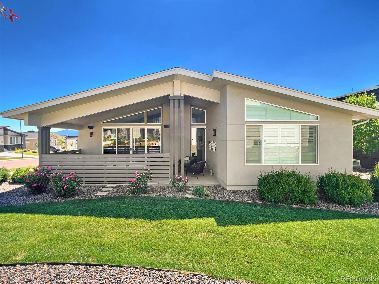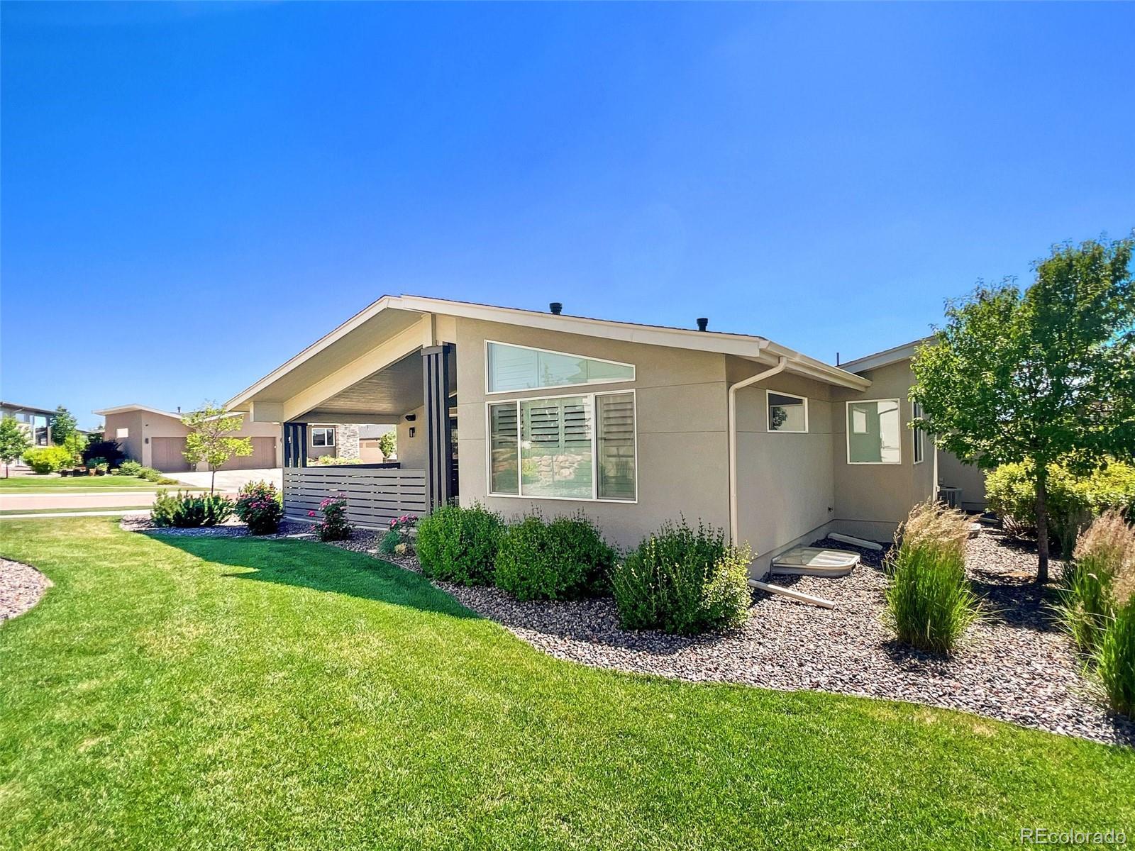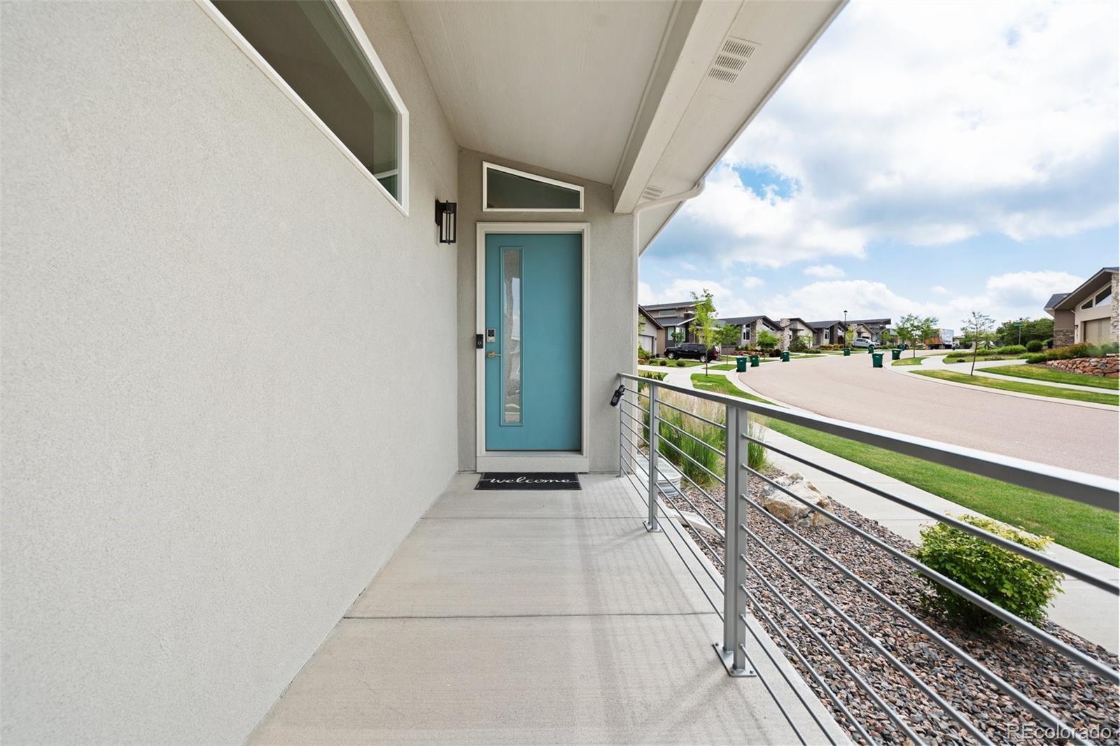 Welcome to this stunning 4-bedroom, 5-bath, 3-car garage ranch-style home in the highly sought-after Élan section of Cordera. Formerly a model and Parade of Homes showcase, this mid-century modern gem is filled with high-end designer upgrades and custom finishes throughout—including custom window treatments throughout the home. Step inside to an open-concept floorplan that seamlessly connects the kitchen, living, and dining areas—perfect for both daily living and entertaining. The great room features a dramatic 12-foot brick fireplace wall, while the entry makes a statement with a custom wood accent wall. The gourmet kitchen impresses with quartz countertops, a striking herringbone backsplash, upgraded appliances, and a unique display cabinet on the island. The main level includes a luxurious primary suite with an upgraded bathroom, a second bedroom with its own ensuite full bath, a stylish powder bath for guests, and a conveniently located laundry room. The fully finished lower level is designed for versatility and comfort, offering a spacious family room with a gas fireplace, wet bar, a yoga room with a mirrored wall, an additional bedroom, two more bathrooms, and an oversized storage room—ideal for a future bedroom, home theater, or fitness studio. Step outside to enjoy the expansive covered concrete patio, complete with a gas line for a firepit, ambient lighting, outdoor speakers, and a privacy wall—an ideal space for relaxing or entertaining. Take in beautiful Front Range views from the front porch, and enjoy the convenience of a 3-car garage with professionally coated floors for easy cleaning and durability. Located close to top-rated schools, shopping, restaurants, hospitals, and I25, and Hwy 83, this low-maintenance community includes lawn care, irrigation system maintenance, and snow removal—perfect for those who travel often or prefer easy living. All furniture in the home is available for purchase, making this an exceptional turnkey opportunity.