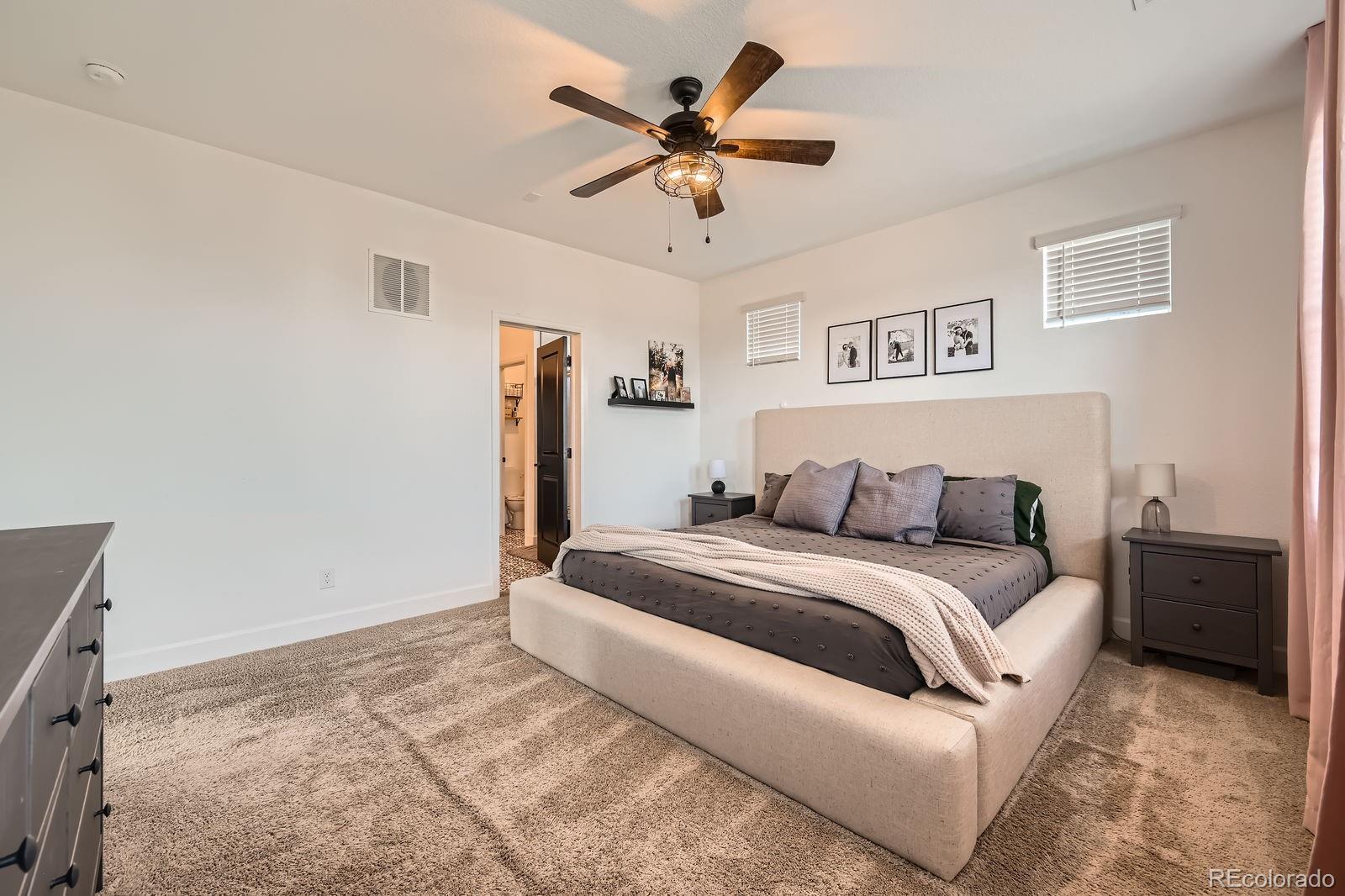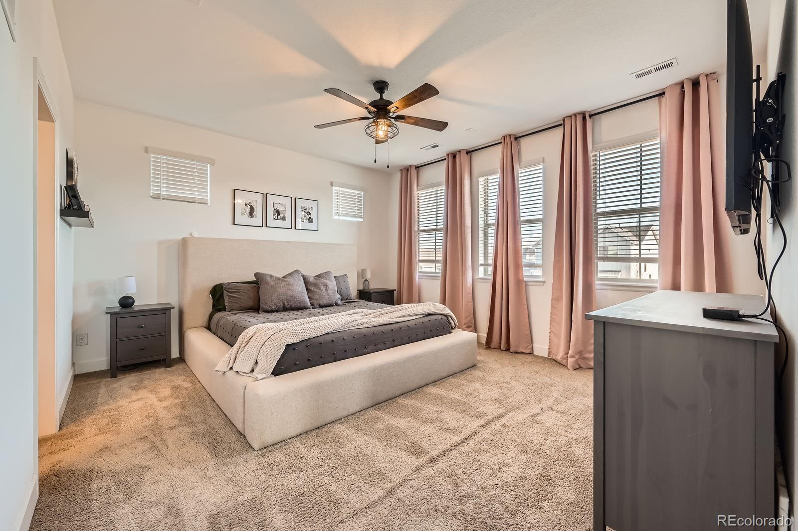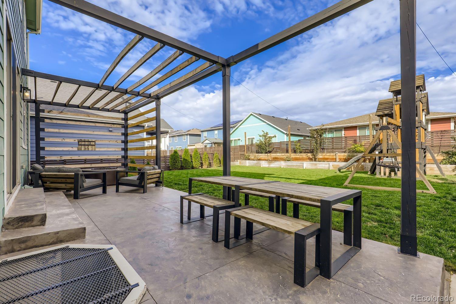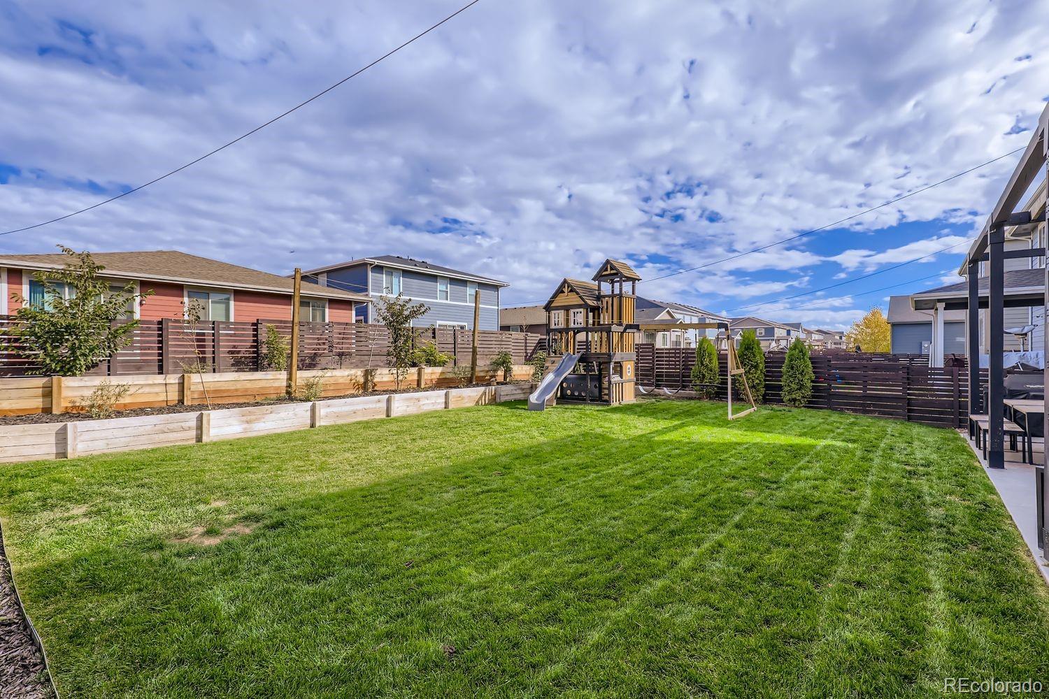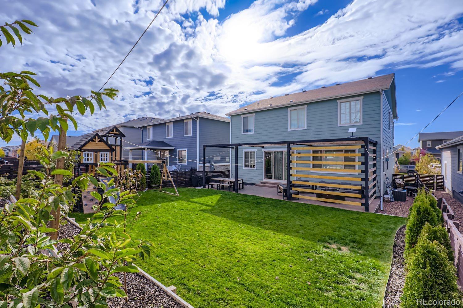 Priced to sell! Unbeatable value for the community and the area's MOST amenity-rich HOAs. Don't miss this beautiful 4-bedroom, 3-bath home with a basement (rare for the neighborhood!), featuring extensive builder upgrades and tons of seller improvements throughout. Gorgeous modern kitchen with black stainless steel appliances, a double oven, upgraded hood, and designer backsplash. The spacious floor plan offers large bedrooms plus a dedicated study, a multi-use loft, and a private primary suite complete with a luxurious ensuite bath and custom closet shelving. Grow, play, and entertain in the backyard with tiered garden beds, a large level lawn, and a custom pergola covering the expansive patio-perfect for gatherings or quiet evenings at home. Set within a vibrant, highly sought-after community, residents enjoy three fitness centers, an outdoor pool with slide, hot tub, meeting rooms, a chef's kitchen for hosting events, a golf simulator, dog park, six parks, and year-round community events that truly bring neighbors together.