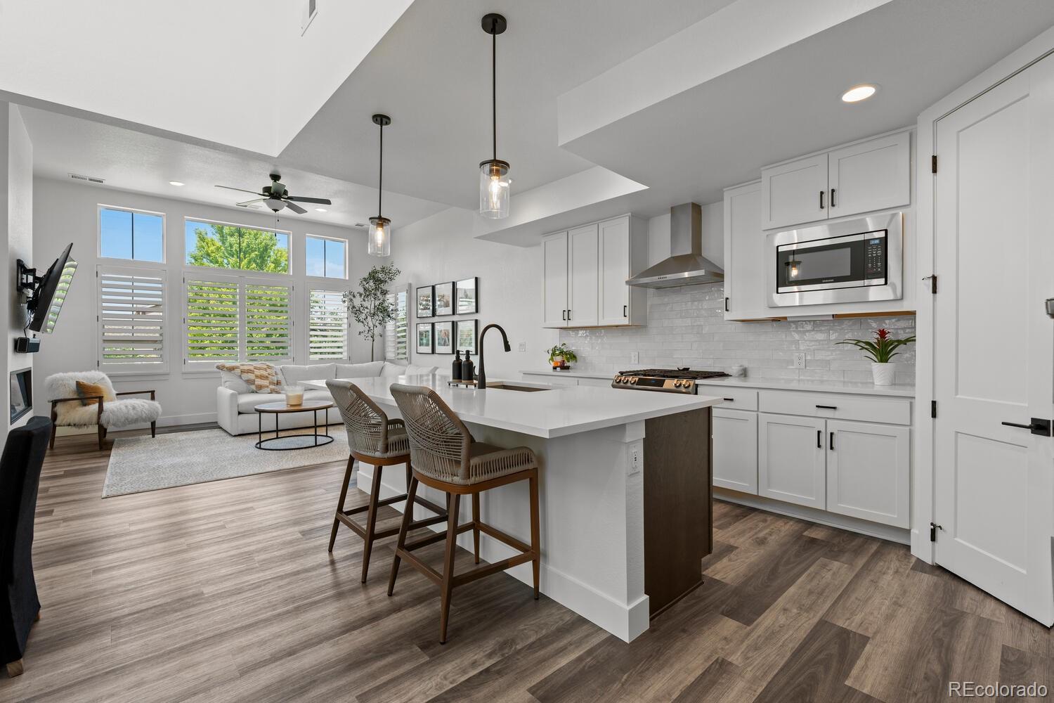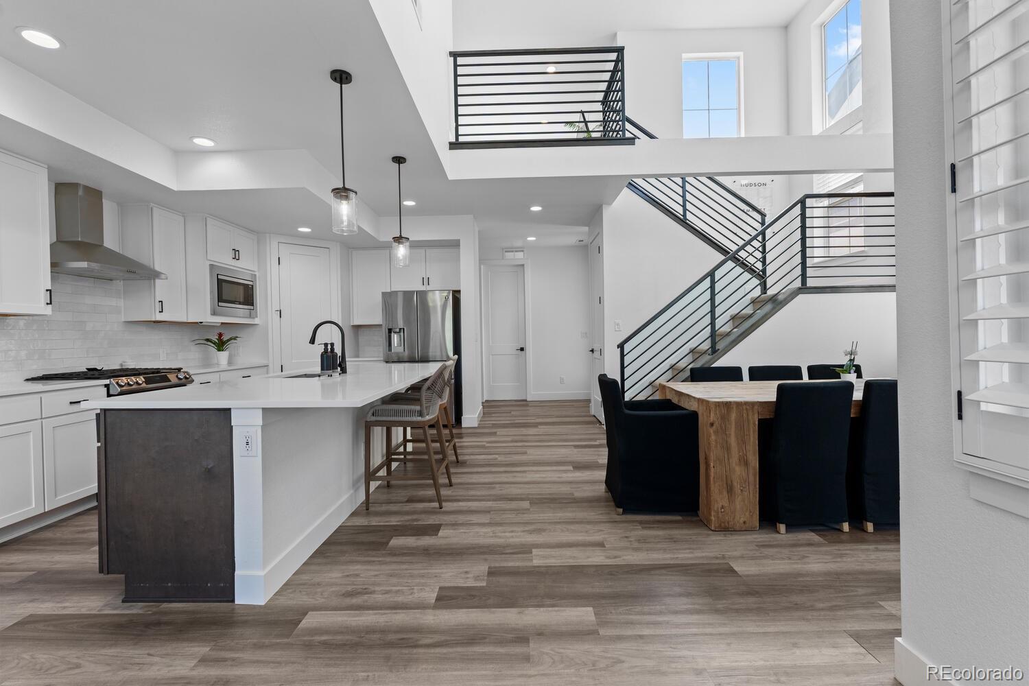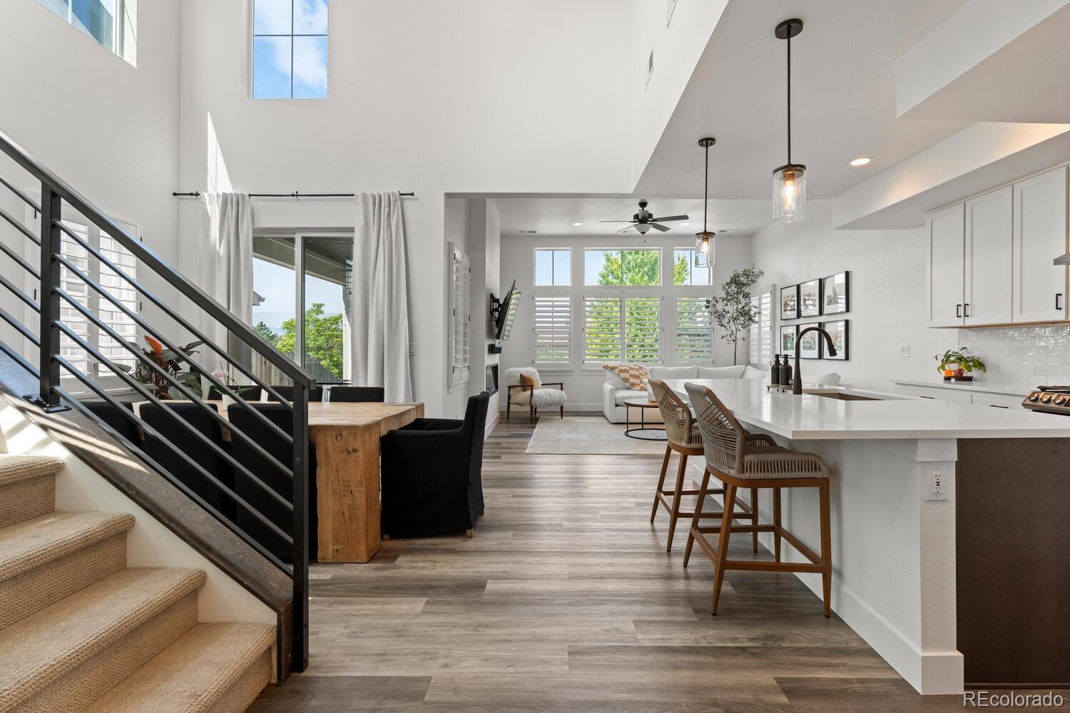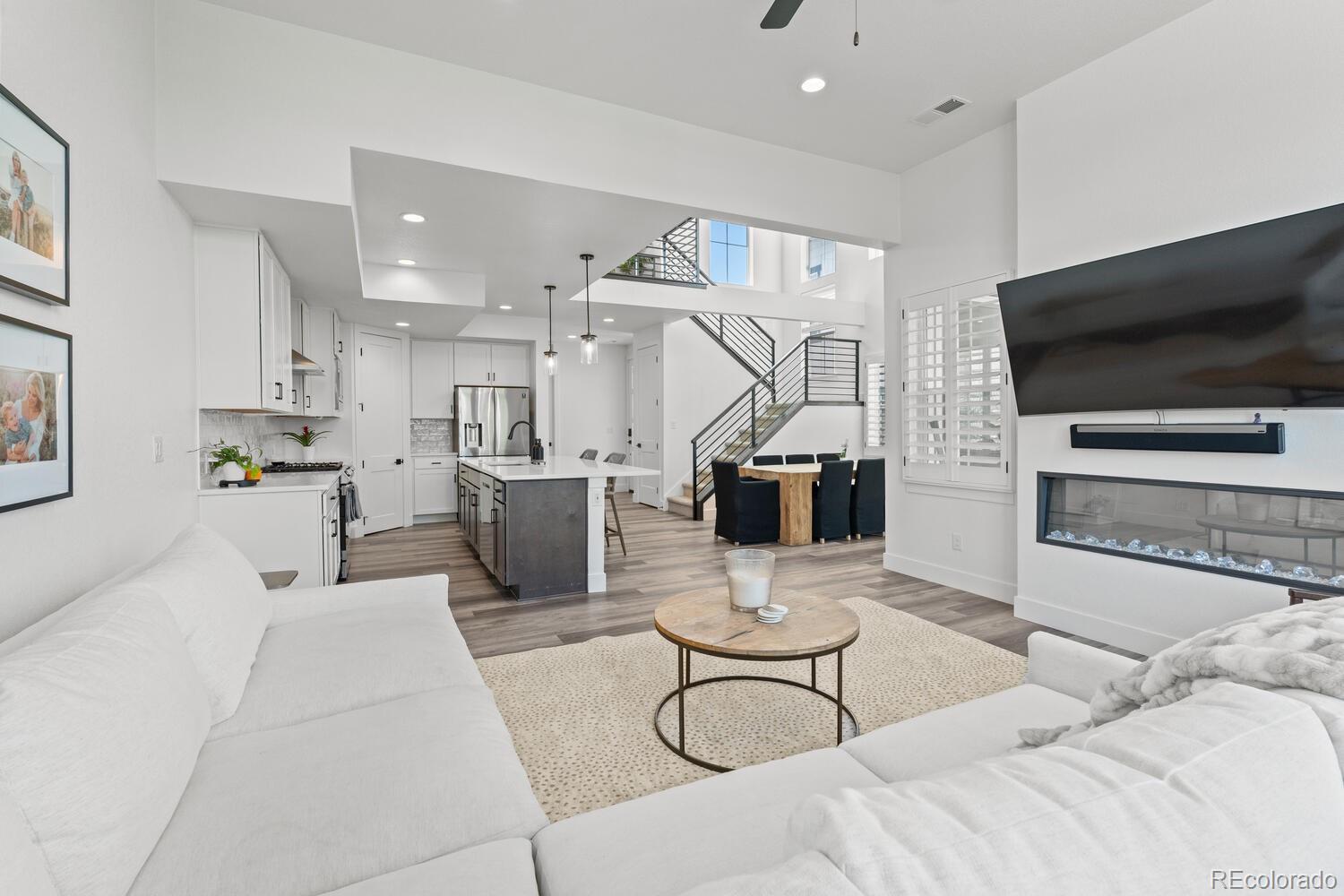 Welcome to this beautifully crafted 4-bedroom, 3-bath modern farmhouse townhome, ideally situated near the vibrant shops, dining, and charm of downtown Arvada. Light-filled interiors with crisp white finishes and soaring ceilings create a sense of openness and ease, offering a stylish yet comfortable backdrop for everyday living. The gourmet kitchen, anchored by an expansive prep island, is designed for both function and gathering, flowing seamlessly into the dining area and great room for effortless entertaining. A dramatic open staircase leads to the private upper level, where spacious secondary bedrooms accompany a luxurious primary suite featuring vaulted ceilings, a spa-inspired bath, and a walk-in shower retreat. Rare for the area, the attached 2-car garage provides both convenience and storage, while the home’s outdoor living is a true highlight. From the covered patio to the elevated covered deck, you’ll have the perfect spaces to sip morning coffee, dine al fresco, or unwind while taking in Colorado’s beautiful seasons. Blending modern design with timeless comfort, this residence offers the ideal balance of style, functionality, and location.