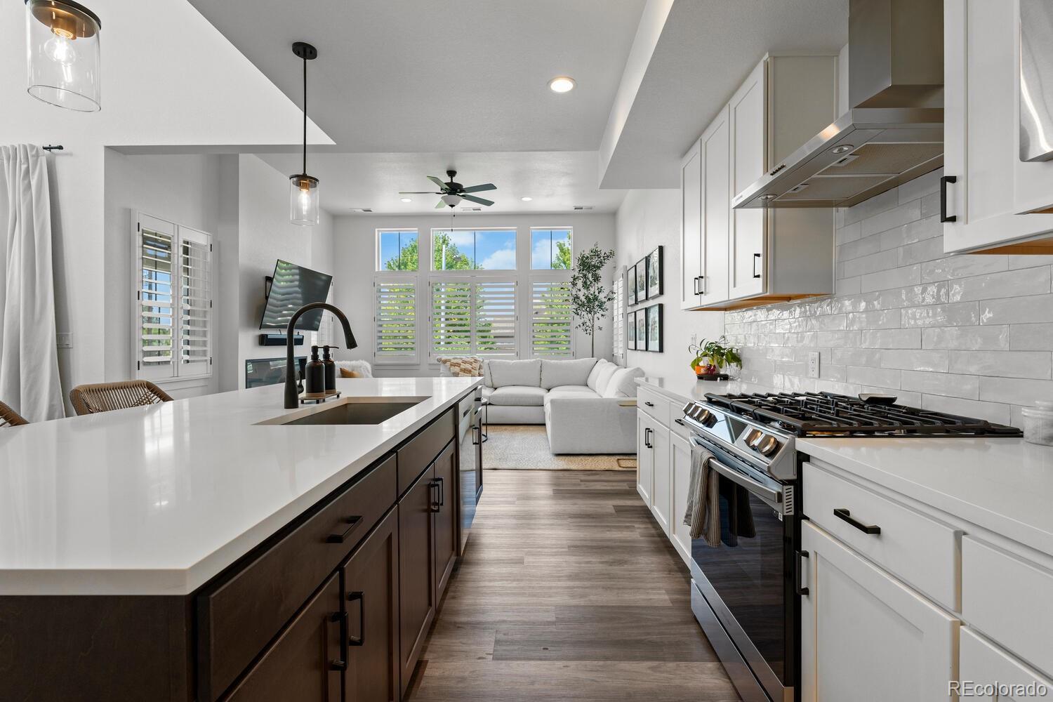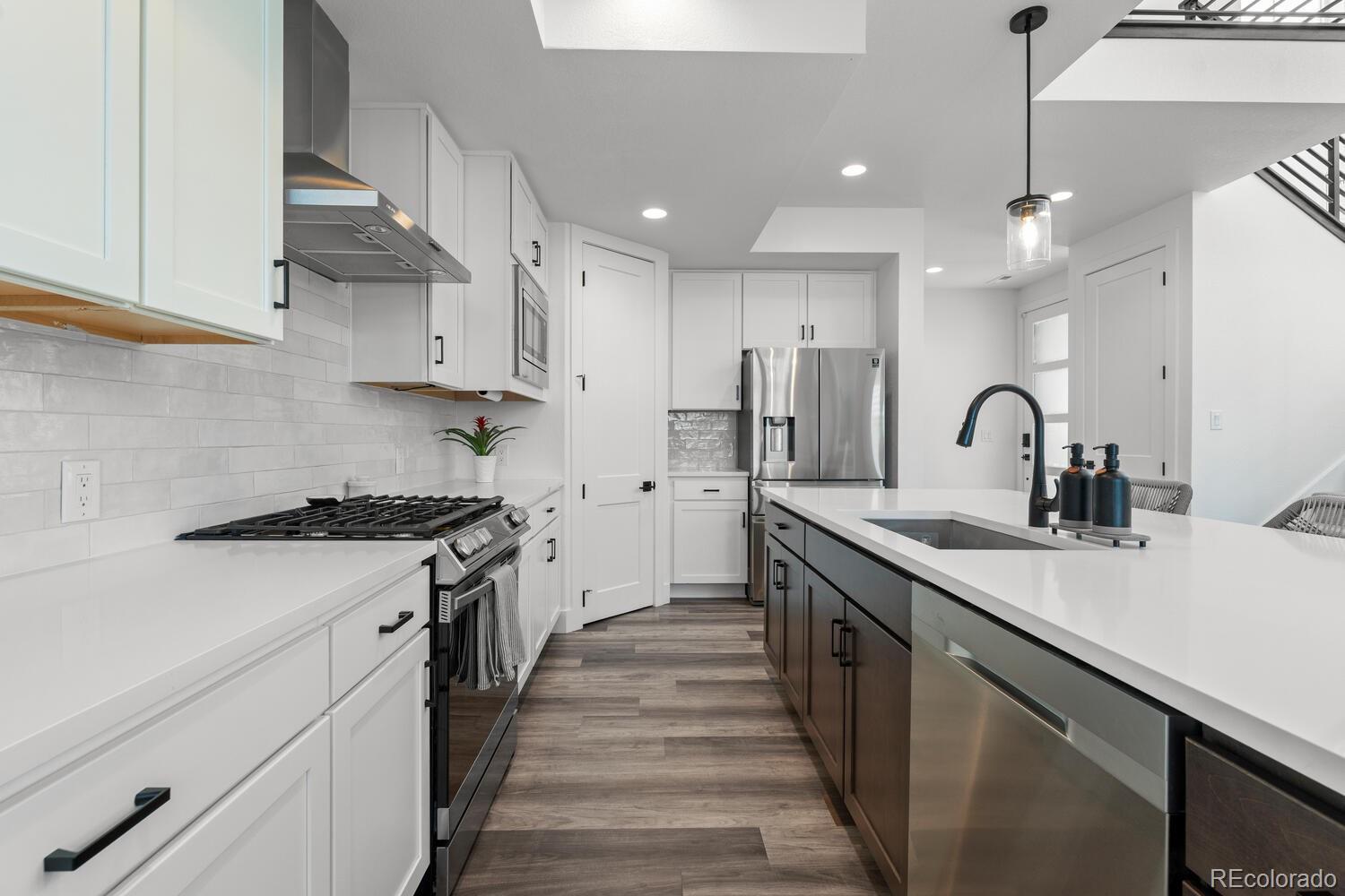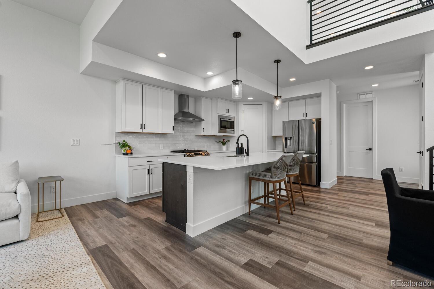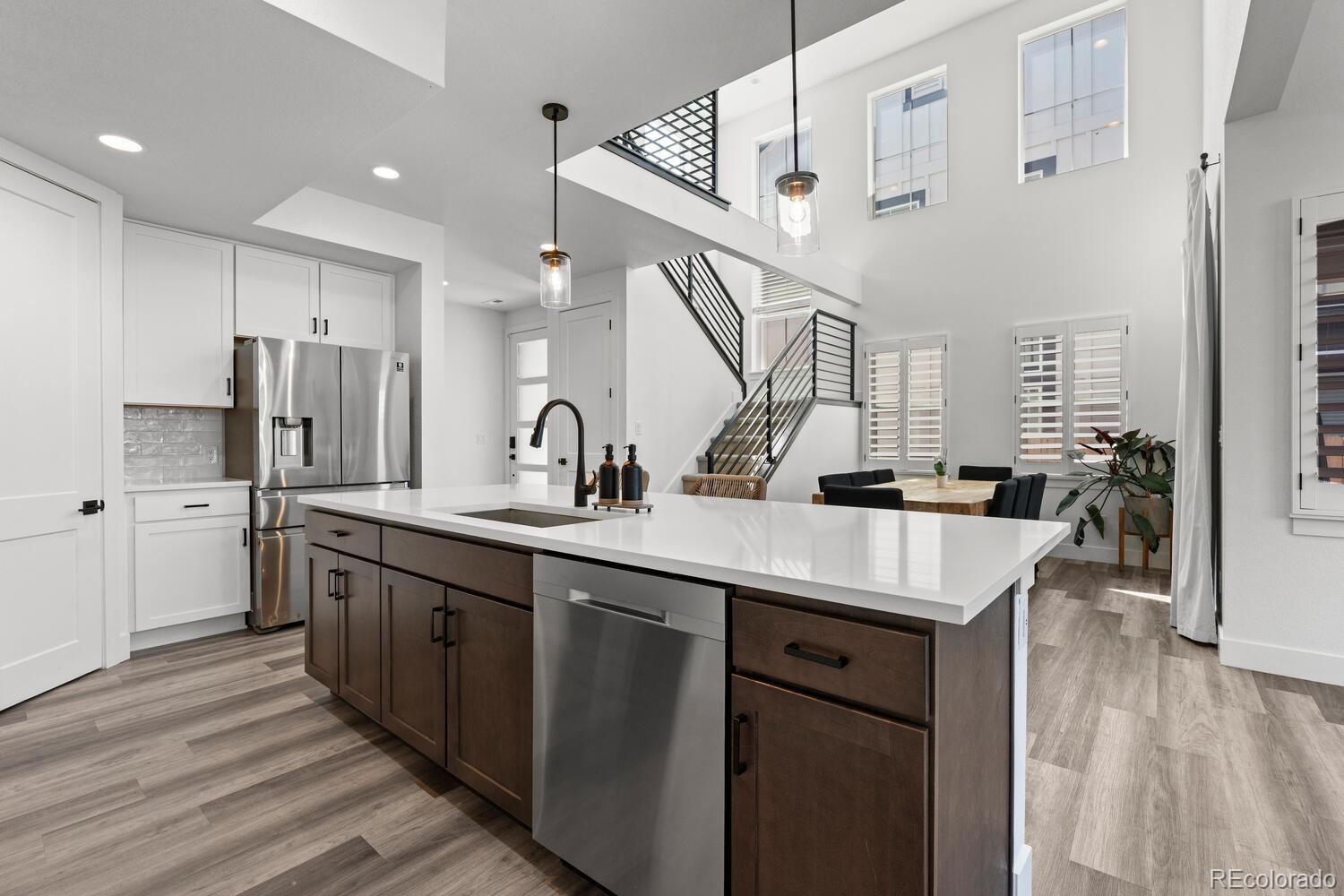 Welcome to this beautifully crafted 4-bedroom, 3-bath modern farmhouse townhome, ideally situated near the vibrant shops, dining, and charm of downtown Arvada. Light-filled interiors with crisp white finishes and soaring ceilings create a sense of openness and ease, offering a stylish yet comfortable backdrop for everyday living. The gourmet kitchen, anchored by an expansive prep island, is designed for both function and gathering, flowing seamlessly into the dining area and great room for effortless entertaining. A dramatic open staircase leads to the private upper level, where spacious secondary bedrooms accompany a luxurious primary suite featuring vaulted ceilings, a spa-inspired bath, and a walk-in shower retreat. Rare for the area, the attached 2-car garage provides both convenience and storage, while the home’s outdoor living is a true highlight. From the covered patio to the elevated covered deck, you’ll have the perfect spaces to sip morning coffee, dine al fresco, or unwind while taking in Colorado’s beautiful seasons. Blending modern design with timeless comfort, this residence offers the ideal balance of style, functionality, and location.