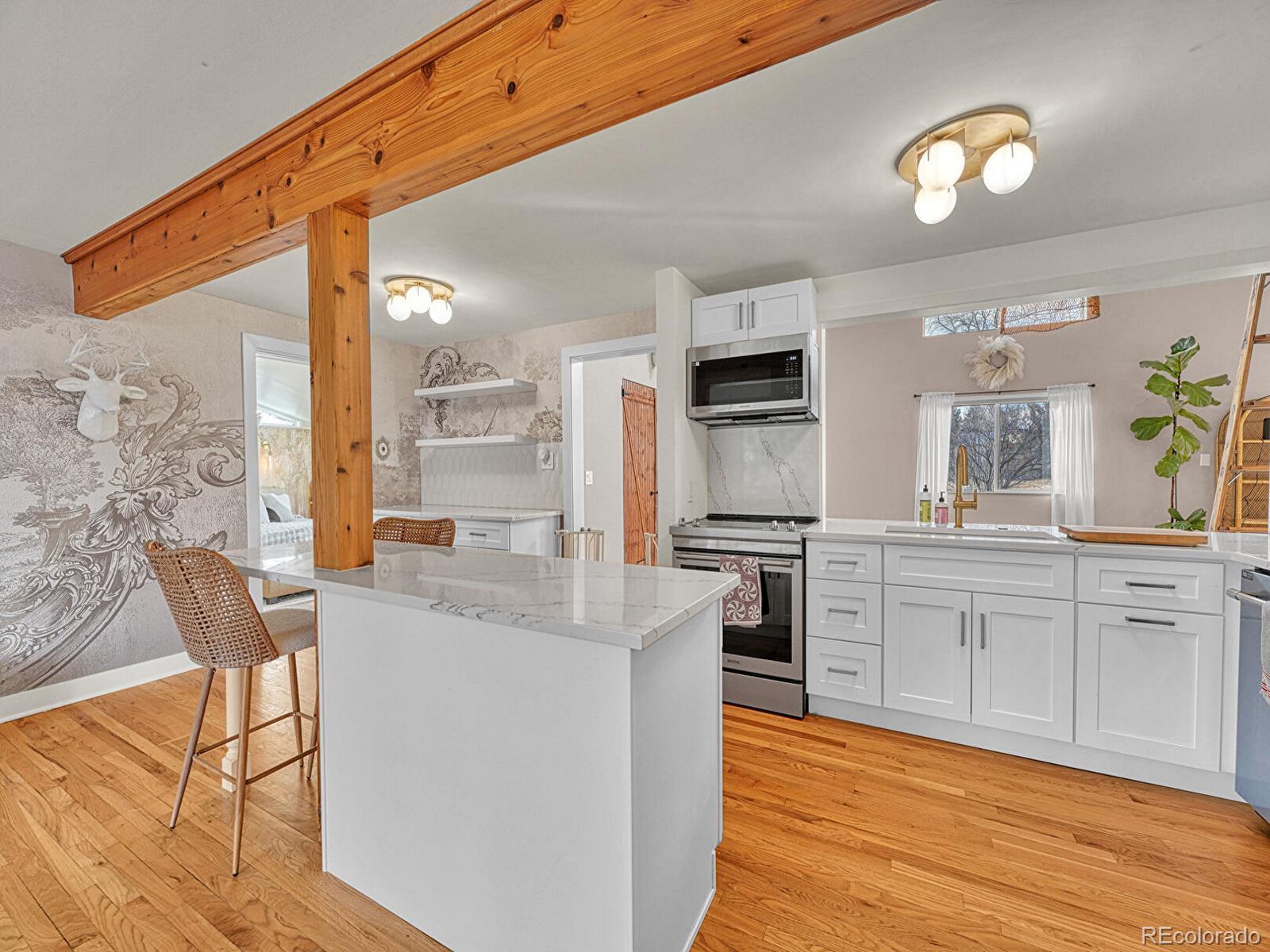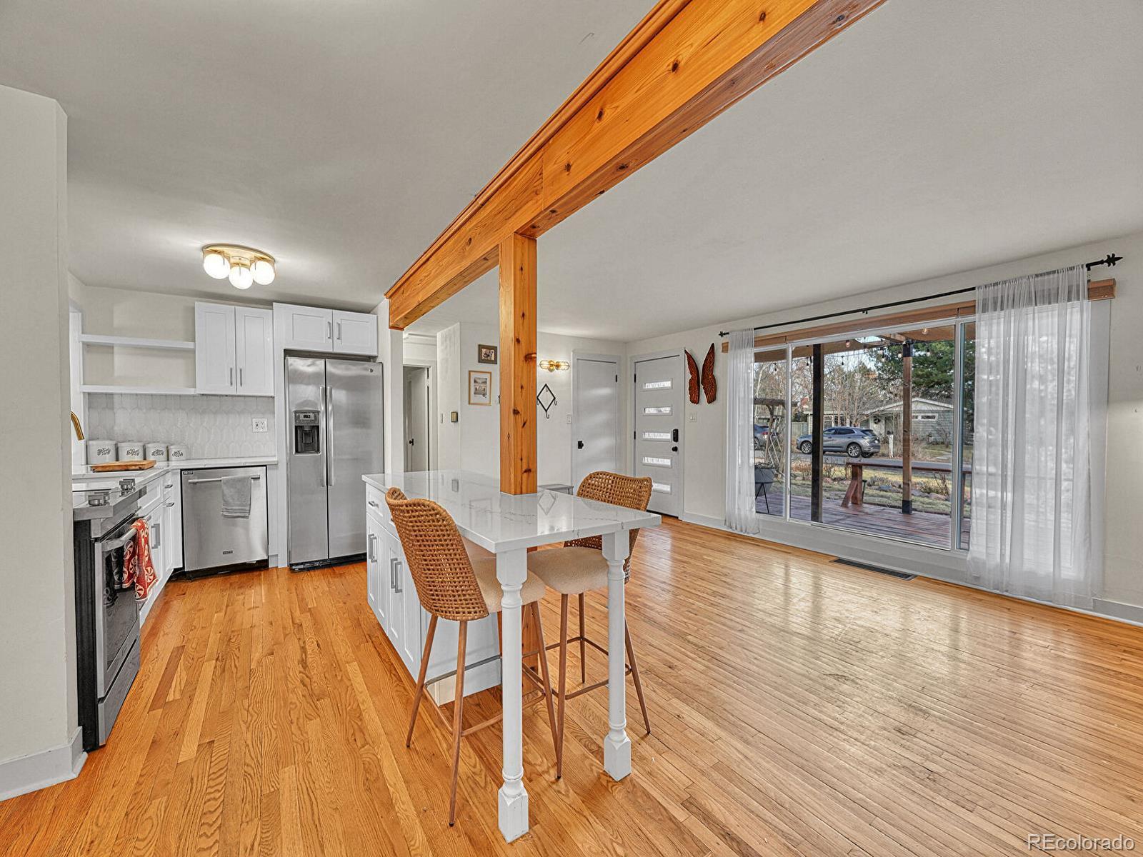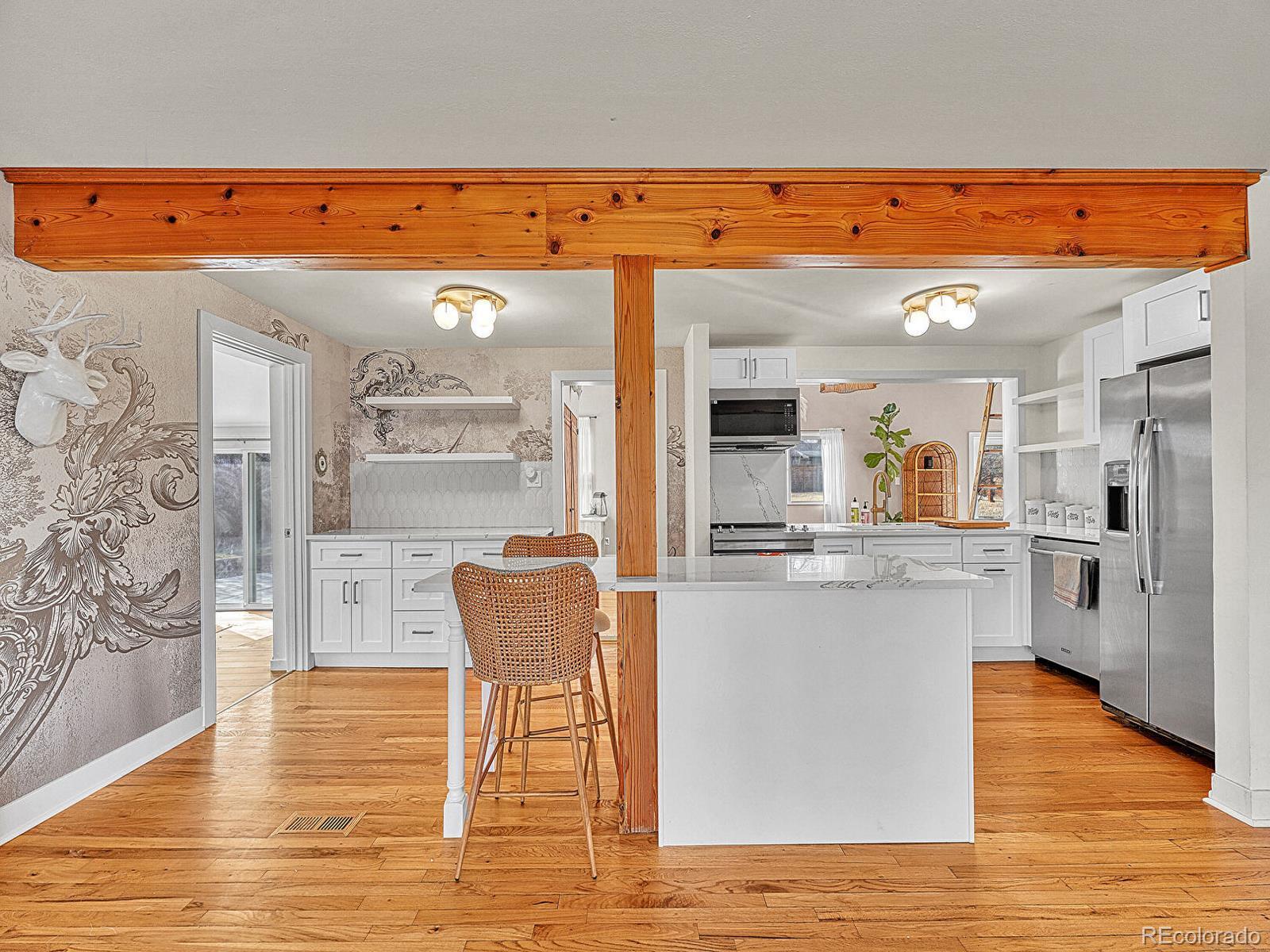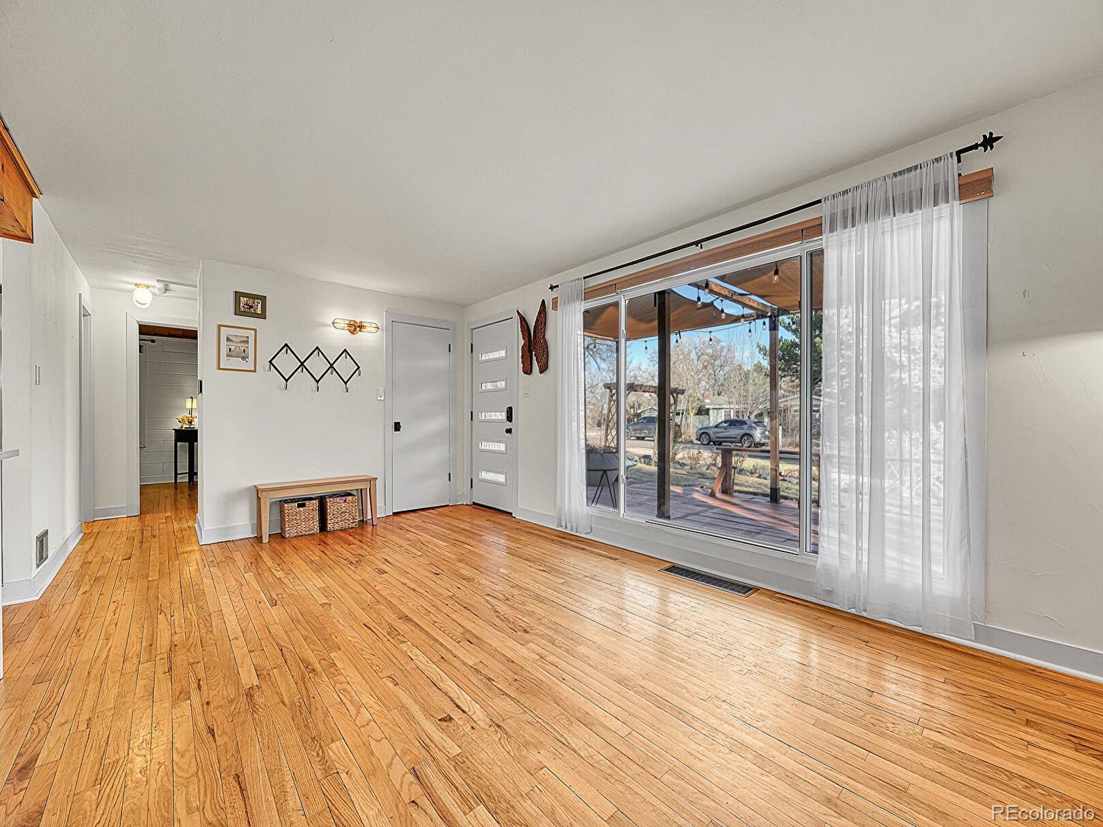 Welcome home to a true hidden gem just steps from the beautiful Crown Hill Nature Preserve. Tucked away on a private lot, this charming one-level home offers the perfect blend of modern updates, nature, and neighborhood charm. Start your mornings on the cozy east-facing front deck, enjoying quiet moments and soft morning light. Inside, rich hardwood floors create a warm and inviting feel throughout. The spacious great room features vaulted ceilings and oversized windows that flood the home with natural light, making it ideal for both relaxing and entertaining. The updated kitchen has been thoughtfully redesigned with a clean, modern aesthetic while still honoring the home’s original character. The fully remodeled full bathroom adds a fresh, contemporary touch with stylish finishes that elevate everyday living. The great room opens to a lush, fully irrigated backyard garden oasis, perfect for unwinding or hosting gatherings. The primary suite offers a peaceful retreat with an en-suite bathroom featuring a walk-in shower and direct backyard access for effortless indoor-outdoor living. Warm wood accents add timeless charm throughout. Located just 15 minutes from both downtown Denver and Golden, this neighborhood offers the best of convenience and community. Enjoy nearby favorites like Gold’s Market, Abrusci’s, and Edgewater Marketplace, all just a short bike ride away. This property qualifies for a seller credit of 2% of the purchase price toward buyer’s closing costs or interest rate buydowns. Buyer is not obligated to use Team Gavin with CrossCountry Mortgage to have an offer accepted; however, buyer must use Team Gavin to qualify for the credit. A special place filled with natural light, thoughtful updates, and undeniable charm. Step inside and feel right at home.