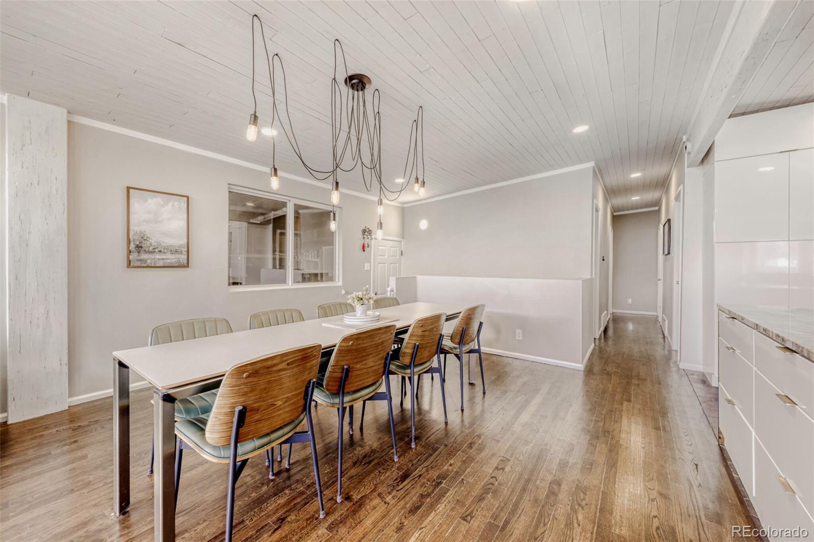 Step inside to an impressive open concept main level that blends mid century character with modern updates and exceptional functionality. A welcoming foyer opens to a bright and inviting living room with rich hardwood floors, recessed lighting, and a cozy wood burning stove that creates warmth and ambiance. The dining area flows seamlessly into a beautifully updated kitchen featuring a large center island, sleek cabinetry, stainless steel appliances, generous counter space, and excellent storage, making it ideal for both everyday living and entertaining. Natural light pours in through expansive windows and glass doors, enhancing the clean lines and architectural elements throughout. This home offers five bedrooms and two and a half bathrooms, along with a finished basement that provides flexible space for a media room, home office, gym, or guest retreat. A private covered deck extends your living space outdoors and overlooks a large yard with room to relax, play, or garden. Major system upgrades provide peace of mind, including a new roof in 2025, sewer line cleaned in 2025, exterior paint in 2025, AC in 2023, hot water heater in 2021, kitchen appliances in 2021, washer and dryer in 2021, and a radon mitigation system installed in 2020. Convenient access to I 25 via 84th Street and the N Line Light Rail off 88th makes commuting simple, while nearby parks, schools, and easy access to I 76 provide excellent connectivity for both daily life and weekend mountain getaways. This is a rare opportunity to own a thoughtfully updated mid century modern home in a quiet and well located neighborhood.