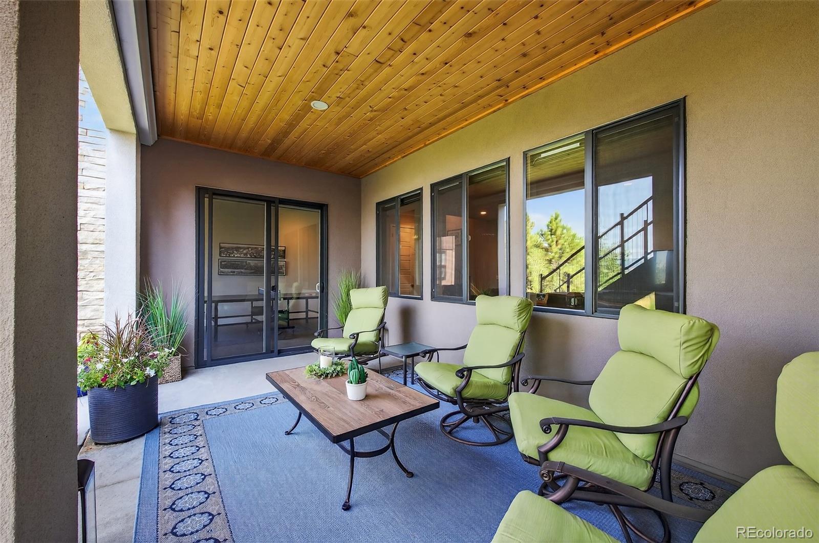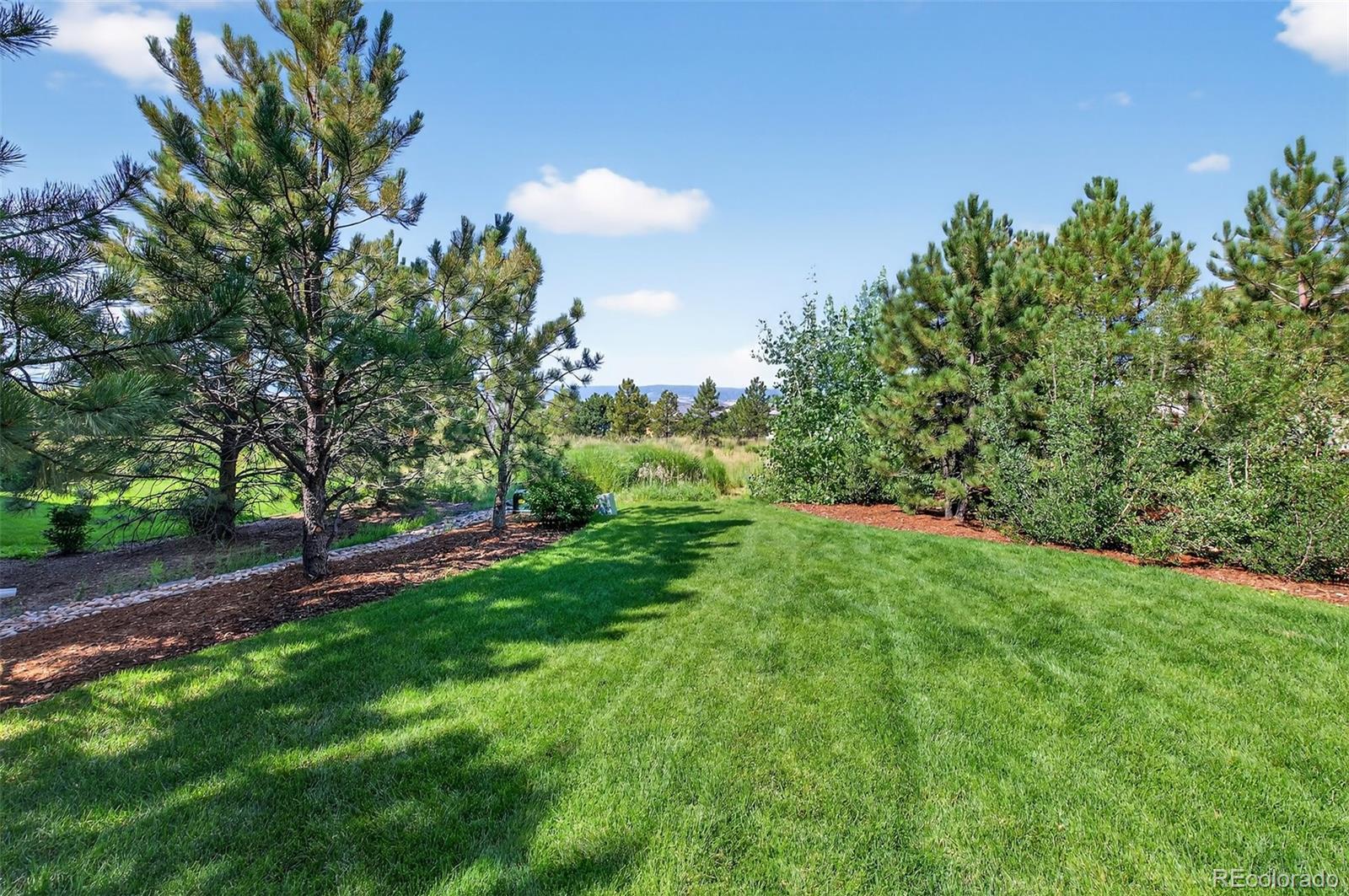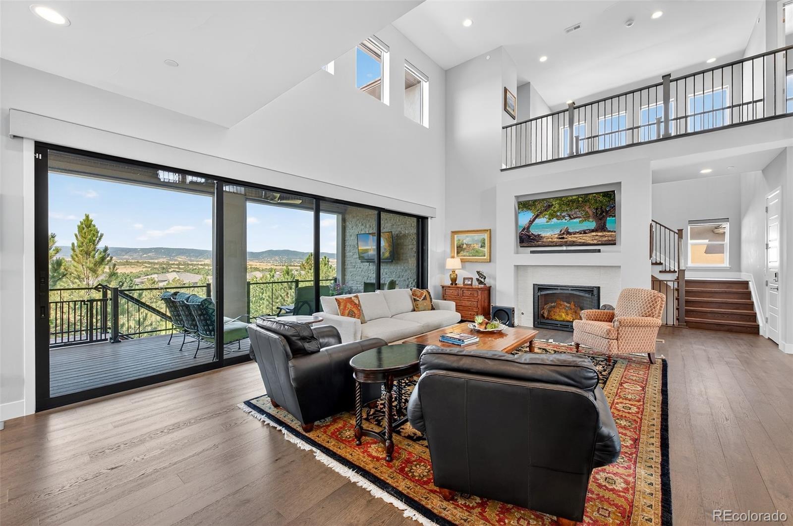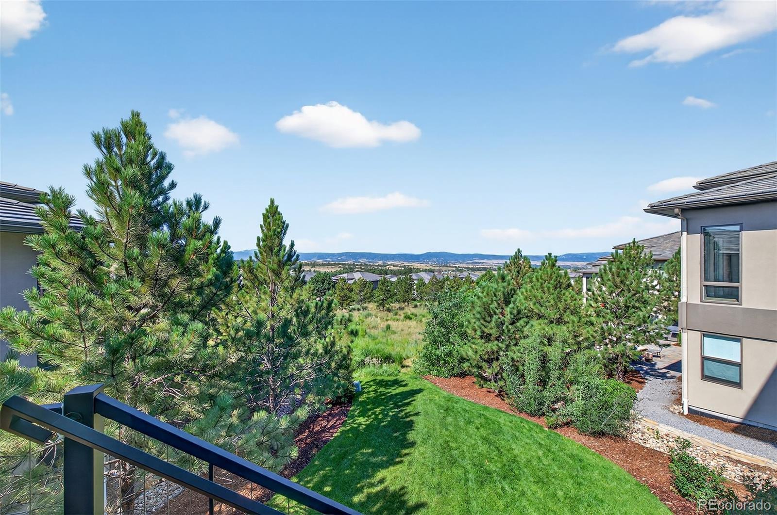 Mountain views from all levels of this beautiful Infinity built two-story home with walk-out basement in the Prato development. Open floorplan with towering ceilings and numerous windows highlighting the western views. The great room offers a full-length sliding glass wall that opens to the west facing deck providing perfect indoor/outdoor living. Kitchen has a stainless steel Thermador and JennAir appliance suite. Butler pantry off the kitchen makes a convenient drop zone in addition to the walk-in pantry and mudroom. Covered deck off the kitchen features a tongue-in-groove ceiling, gas fireplace with stone surround, motorized sunshades and a mounted TV making this a perfect place to unwind and watch the sunset over the mountains. Main floor has an ensuite bedroom and office. Upstairs offers the perfect layout with secondary bedrooms on the opposite wing of the primary suite. Second-level opens to the lower level with a cozy loft between the bedroom wings. The loft has mountain views and features custom built-ins for a second office or library. Secondary bedrooms upstairs have ensuite baths. Primary suite has mountain views and a roomy 5-piece bath with dual vanities, walk-in closets, linen closet, large rectangular soaking tub, and a walk-in shower with glass door. Dedicated laundry on second and basement levels. Lower-level wet bar with abundant cabinet space, quartz countertops and bar seating. Lutron lighting system allows full control of lighting throughout the home. Motorized shades in most rooms. Snow and ice-melt system installed on the extra wide, HEATED DRIVEWAY means no more snow shoveling! 3-car attached and heated garage with epoxy floor coating include extensive storage, work bench and hanging systems. This home is truly one of a kind! If you are looking for a low maintenance, turn-key home with mountain views in the Village Castle Pines – look no further!